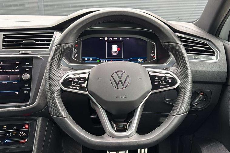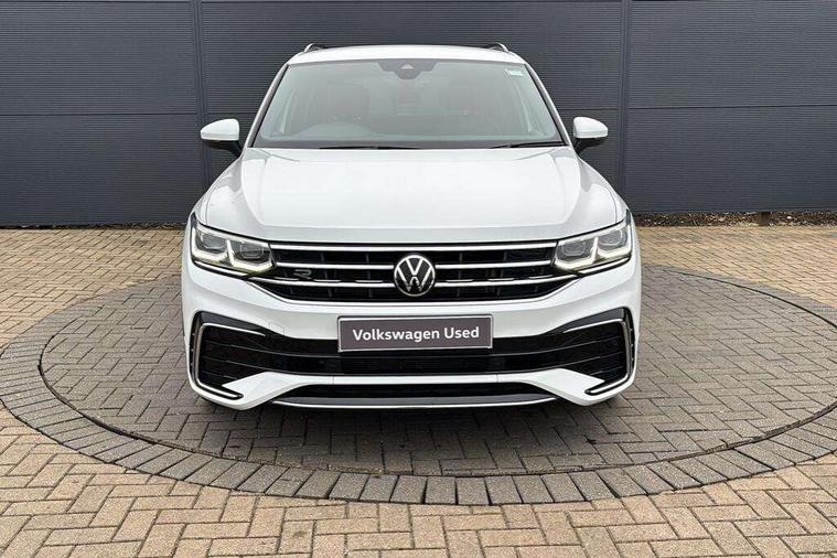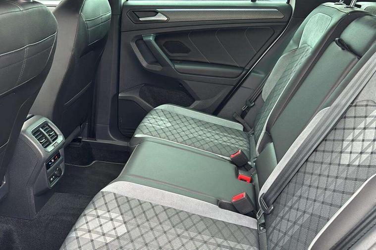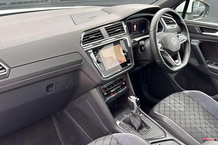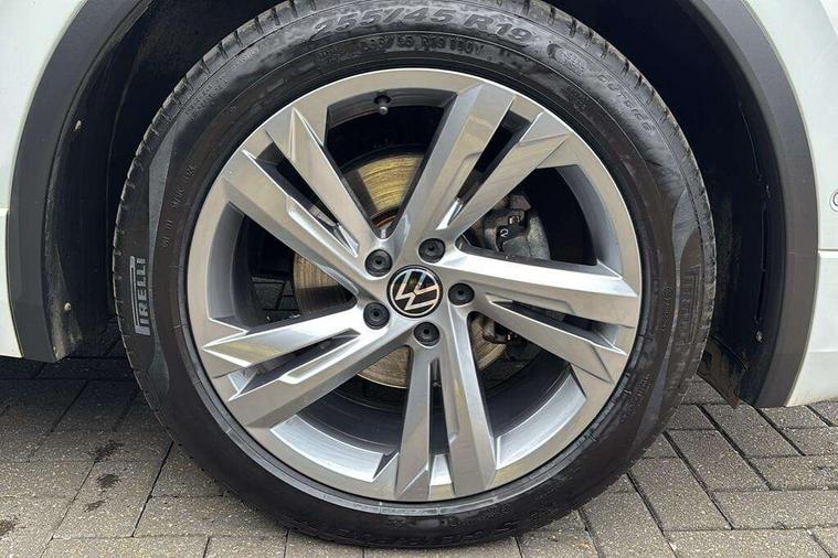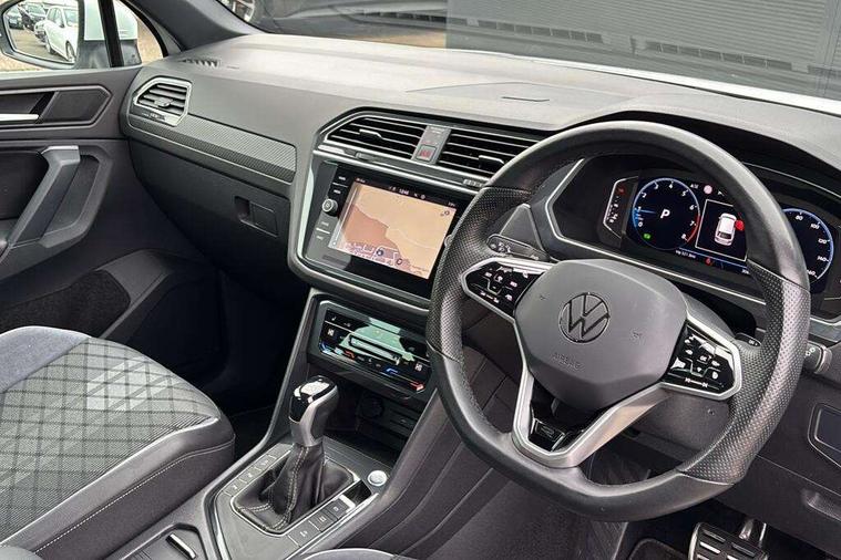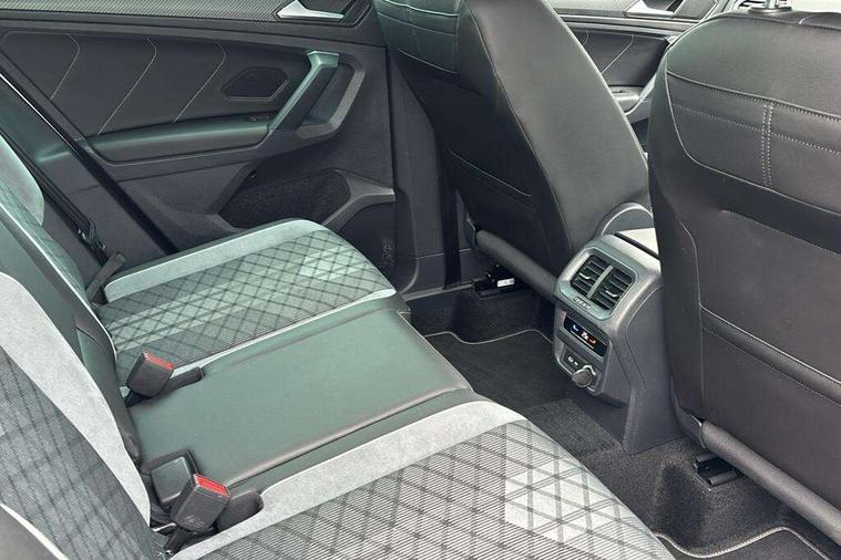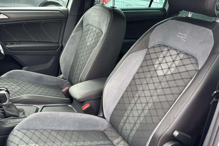 Adaptive cruise control ACC stop and go including speed limiter, App-Connect incl. App-Connect Wireless for Apple CarPlay and Android Auto, Bluetooth phone integration system, Comfort drive travel assist, Digital cockpit pro, Driver alert system, Driver profile selection, Dynamic road sign display, eCall emergency call system, Electromechanical speed sensitive power steering, Emergency assist, Front and rear parking distance sensors, Instrument cluster mph speedometer Great Britain, Lane keeping system Lane Assist, Lights on warning, Multifunction front facing camera, Outside temperature display, Premium multifunction display with multi colour display, Preparation for subsequent activation Navigation feature Discover Media includes Streaming and Internet, Remote control boot opening, Rev counter, Service interval indicator, Speed limit display, Start/stop system with regenerative braking, Tailgate/trunk lid unlocking from outside, Trip computer, Warning sound and light for doors and tailgate open, Battery regeneration during braking, Sports suspension, 8 Speakers, Digital radio reception DAB+, Diversity antenna for FM reception, Radio, Auto dimming interior rear view mirror, Automatic headlight control system, Body colored bumpers in R-Line style, Body colored exterior mirror housings, Body colour door handles, Chrome moldings on the side windows, Coming/leaving home lighting function, Dynamic headlight range control, Front and rear electric windows, Heated rear window, High level 3rd brake light, Laminated safety glass windshield, heat and sound insulating, LED headlamps with LED separate daytime running light and dynamic cornering light, LED rear combination lamps, LED rear number plate lights, License plate carrier in front and rear, Poor weather light and cornering light, Power adjustable, folding and heated door mirrors with surround lighting, front passenger exterior mirror lowering function, Privacy glass for rear side windows and rear window, R Line body kit, R Line side sills, Rain sensor, Rear exhaust tailpipe, Rear fog lamp, Rear side wing doors, Rear spoiler in R style, Rear windscreen washer and wiper with interval delay, Side and rear windows in heat insulating glass, Trailer Stability Programme, Unique R Line badging, Windscreen wipers/ intermittent wipe + 4 position delay, 12V outlet in center console rear and in luggage compartment, 12V outlet in front and tray, 2 LED front reading lights, 2 LED rear reading lights, 3 bench rear seats in 2nd row, 3 rear headrests, Air Care Climatronic 3 zone automatic climate control with enhanced air filter and controls in the rear, Art Velours greyson sports cloth upholstery, Backrest release for left front seat, Black headlining, Brushed stainless steel pedals and footrest, Carpet mats in front and rear with decorative stitching in Gray, Climate control unit rear with touch function, Door and side trim panel in foam film, insert in leatherette, Driver + front passenger lumbar support, Front footwell illumination, Front scuff plates in aluminum with R-Line logo, Front seats head restraints (x-adjustment), Height adjustable front seats, Height/reach adjust steering wheel, Isofix Preparation 2 Rear child seats, Leather gear knob, Rear bench seat asymetrically split folding, longitudinally movable and folding with load-through hatch and center armrest, Remote unlocking for rear seat backrest, Single front passenger seat, Sun visors with illuminated vanity mirrors, Top front comfort seats, Winter pack - Tiguan, 3 point seat belt for centre rear seats, 3 point seat belts with seat belt pretensioners for the outer rear seats, Curtain airbags for front and rear passengers, Driver/Front Passenger airbags, Drivers knee airbag, Electronic parking brake with auto hold, Electronic Stability Control with driver steering recommendation, ABS, ASR, EDL, EDTC and trailer stabilization, Front assist with autonomous emergency braking (for Adaptive Cruise Control ACC up to 130 mph), Front disc brakes, Front passenger airbag deactivation, Front side airbags, Height adjustable front 3 point seatbelts + pretensioners, Manual child proof rear door locks, Pedestrian monitoring system, Proactive passenger protection system in combination with front assist, Rear disc brakes, Two tone horn, Tyre pressure loss indicator, Warning sound and light for front seat belts if unfastened, Warning triangle, Anti theft alarm system with interior monitoring, backup horn and towing protection, Anti theft wheel bolts, Electronic engine immobiliser, Keyless locking and starting system keyless access with safelock, Chrome elements on the mirror switch power window switches and door pulls, Decorative inserts Carbon Gray for dashboard and front door trim panels, Interior door handle in matte chrome, 19" Valencia alloy wheels with AirStop tyres, Tool kit, Tyre mobility kit Includes 12V compressor and tyre sealant,