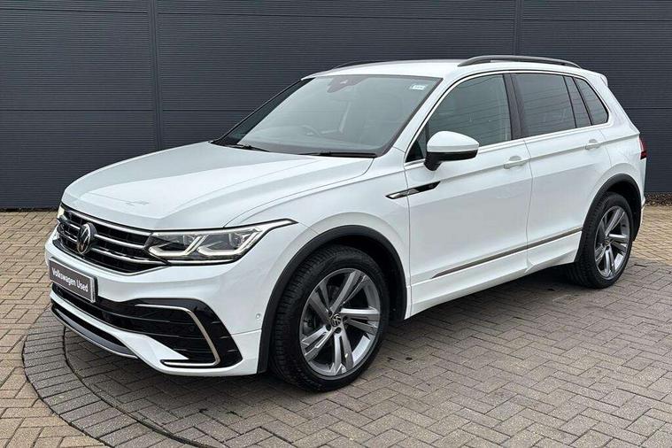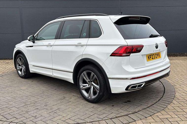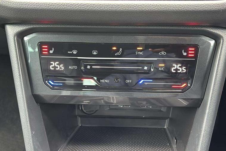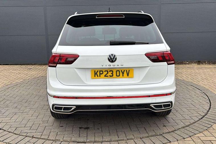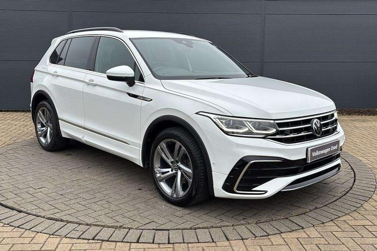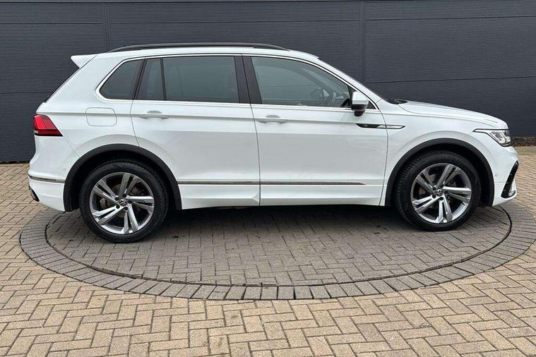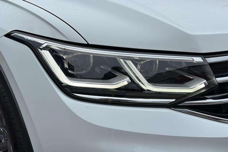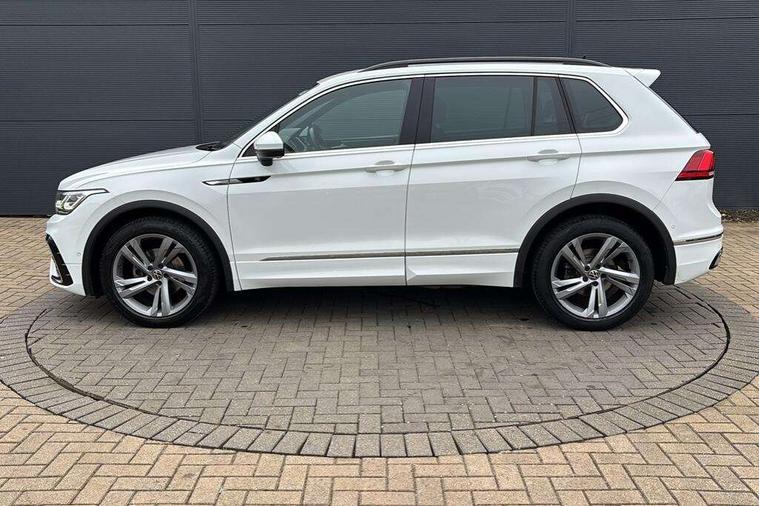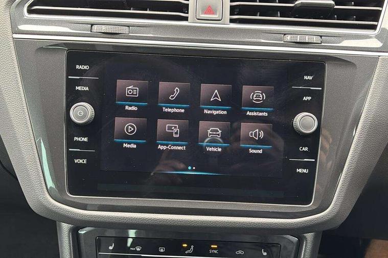 Adaptive cruise control ACC stop and go including speed limiter, App-Connect incl. App-Connect Wireless for Apple CarPlay and Android Auto, Bluetooth phone integration system, Comfort drive travel assist, Digital cockpit pro, Driver alert system, Driver profile selection, Dynamic road sign display, eCall emergency call system, Electromechanical speed sensitive power steering, Emergency assist, Front and rear parking distance sensors, Instrument cluster mph speedometer Great Britain, Lane keeping system Lane Assist, Lights on warning, Multifunction front facing camera, Outside temperature display, Premium multifunction display with multi colour display, Preparation for subsequent activation Navigation feature Discover Media includes Streaming and Internet, Remote control boot opening, Rev counter, Service interval indicator, Speed limit display, Start/stop system with regenerative braking, Tailgate/trunk lid unlocking from outside, Trip computer, Warning sound and light for doors and tailgate open, Battery regeneration during braking, Sports suspension, 8 Speakers, Digital radio reception DAB+, Diversity antenna for FM reception, Radio, Auto dimming interior rear view mirror, Automatic headlight control system, Body colored bumpers in R-Line style, Body colored exterior mirror housings, Body colour door handles, Chrome moldings on the side windows, Coming/leaving home lighting function, Dynamic headlight range control, Front and rear electric windows, Heated rear window, High level 3rd brake light, Laminated safety glass windshield, heat and sound insulating, LED headlamps with LED separate daytime running light and dynamic cornering light, LED rear combination lamps, LED rear number plate lights, License plate carrier in front and rear, Poor weather light and cornering light, Power adjustable, folding and heated door mirrors with surround lighting, front passenger exterior mirror lowering function, Privacy glass for rear side windows and rear window, R Line body kit, R Line side sills, Rain sensor, Rear exhaust tailpipe, Rear fog lamp, Rear side wing doors, Rear spoiler in R style, Rear windscreen washer and wiper with interval delay, Side and rear windows in heat insulating glass, Trailer Stability Programme, Unique R Line badging, Windscreen wipers/ intermittent wipe + 4 position delay, 12V outlet in center console rear and in luggage compartment, 12V outlet in front and tray, 2 LED front reading lights, 2 LED rear reading lights, 3 bench rear seats in 2nd row, 3 rear headrests, Air Care Climatronic 3 zone automatic climate control with enhanced air filter and controls in the rear, Art Velours greyson sports cloth upholstery, Backrest release for left front seat, Black headlining, Brushed stainless steel pedals and footrest, Carpet mats in front and rear with decorative stitching in Gray, Climate control unit rear with touch function, Door and side trim panel in foam film, insert in leatherette, Driver + front passenger lumbar support, Front footwell illumination, Front scuff plates in aluminum with R-Line logo, Front seats head restraints (x-adjustment), Height adjustable front seats, Height/reach adjust steering wheel, Isofix Preparation 2 Rear child seats, Leather gear knob, Rear bench seat asymetrically split folding, longitudinally movable and folding with load-through hatch and center armrest, Remote unlocking for rear seat backrest, Single front passenger seat, Sun visors with illuminated vanity mirrors, Top front comfort seats, Winter pack - Tiguan, 3 point seat belt for centre rear seats, 3 point seat belts with seat belt pretensioners for the outer rear seats, Curtain airbags for front and rear passengers, Driver/Front Passenger airbags, Drivers knee airbag, Electronic parking brake with auto hold, Electronic Stability Control with driver steering recommendation, ABS, ASR, EDL, EDTC and trailer stabilization, Front assist with autonomous emergency braking (for Adaptive Cruise Control ACC up to 130 mph), Front disc brakes, Front passenger airbag deactivation, Front side airbags, Height adjustable front 3 point seatbelts + pretensioners, Manual child proof rear door locks, Pedestrian monitoring system, Proactive passenger protection system in combination with front assist, Rear disc brakes, Two tone horn, Tyre pressure loss indicator, Warning sound and light for front seat belts if unfastened, Warning triangle, Anti theft alarm system with interior monitoring, backup horn and towing protection, Anti theft wheel bolts, Electronic engine immobiliser, Keyless locking and starting system keyless access with safelock, Chrome elements on the mirror switch power window switches and door pulls, Decorative inserts Carbon Gray for dashboard and front door trim panels, Interior door handle in matte chrome, 19" Valencia alloy wheels with AirStop tyres, Tool kit, Tyre mobility kit Includes 12V compressor and tyre sealant,