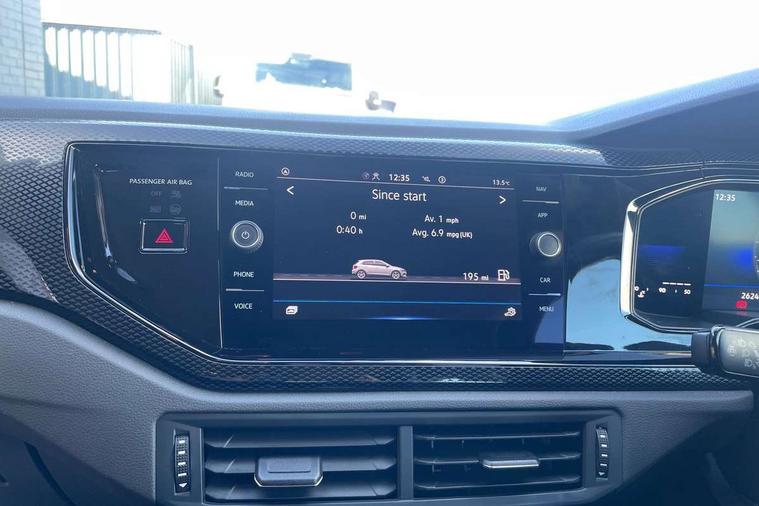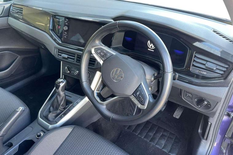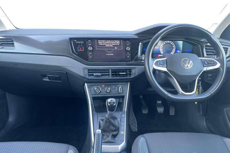 Adaptive cruise control without follow-to-stop and speed limiter, Bluetooth mobile phone interface, Driver alert system, Emergency call service, Front assist system, Power assisted speed sensitive steering, Preparation for We connect and We connect plus, Speedo and rev counter, electronic odometer, trip, service interval display and fuel gauge, Standard rear axle, Travel Assist - Lane keeping system and traffic jam assist, Travel assist including emergency assist, Trip computer, Warning signal and warning light for front and rear seatbelts not fastened, Washer fluid level indicator, Wireless app connect, Front wheel drive, Rear shock absorpion, Start-stop system with battery regeneration (recuperation - energy recovery during braking), DAB Digital radio, Diversity antenna for FM reception, Front and rear 6 speakers, Automatic dimming interior rear view mirror, Body colour bumpers, Body colour door handles, Body colour door mirrors, Electric front windows, Heat insulating darkened glass in side and rear windows, Heat insulating glass windscreen, Power folding adjustable/heated exterior mirrors and front passenger exterior mirror lowering function, Rain sensor, Rear electric windows, Rear fog light, Rear side wing doors, Rear windscreen washer and wiper with interval delay, Third brake light, 12V power socket in centre console, 2 front and 2 rear reading lights, 2 USB-C ports in the front, 2 USB-C charging sockets on the center console in the rear, 3 rear head restraints, 60/40 split folding rear seat and rear seat bench not split, Ceramique headliner, Chrome plated radiator grille inserts, air vent surrounds and light switch surrounds, Door and side trim panel, Driver and front passenger seat height adjustment, Driver/passenger sunvisors with illuminated vanity mirrors, Front centre armrest, Front seat backrest storage pockets, Front standard seats, Handbrake lever handle in leather, Hartley/Thomas cloth upholstery, Isofix child seat preparation easy-fit (for two outer rear seats, and front passenger seat) compatible with I-size, Leather trimmed gear knob, Luggage compartment cover, Luggage compartment floor, Luggage compartment lighting, Multifunction steering wheel, Single front passenger seat, Standard pedal cluster, Light and vision pack - Polo, 3 point height adj front seatbelts + pretensioners, 3x3 point rear seatbelts, ABS, Driver and front passenger airbag with front passenger airbag deactivation, Drivers and front passengers safety optimised head restraints, ESC (Electronic stability control) + EDL (Electronic Differntial lock) and ASR (Traction control), Extended and predictive pedestrian/ cyclist protection, Front curtain and side airbags with center airbag, Front disc brakes, Hill hold control, Manual child lock in rear doors, Rear drum brakes, Single tone horn, Tyre pressure loss indicator, Alarm with interior protection, Anti-theft alarm system with interior monitoring, backup horn, and towing protection, Anti-theft wheel bolts, Electronic engine immobiliser, Lava stone black gloss/matt decorative inserts in dash and front door panels, Low rolling resistance tyres,