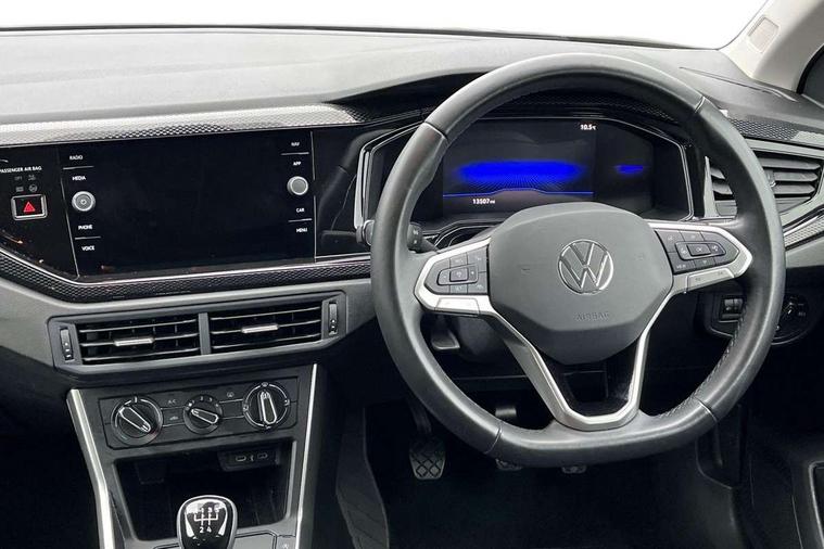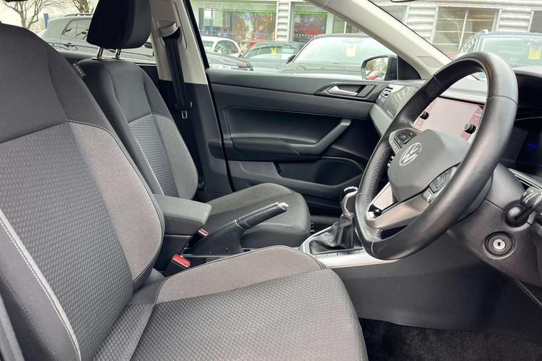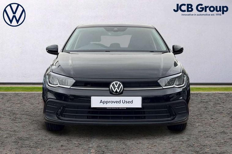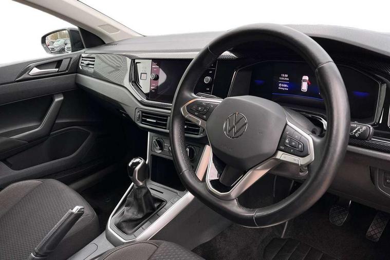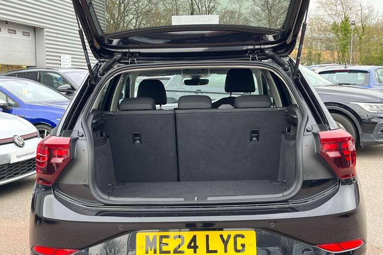 Adaptive cruise control without follow-to-stop and speed limiter, Advanced driver attention and drowsiness monitor, Bluetooth mobile phone interface, Dynamic road sign display, Emergency call service, Mobile phone preparation with inductive charging function, Multifunction front facing camera for distance control, Park distance control, Power assisted speed sensitive steering, Preparation for navigation system with media and internet package, Preparation for We connect and We connect plus, Rear view camera, Speedo and rev counter, electronic odometer, trip, service interval display and exterior temperature gauge, Standard rear axle, Travel Assist - Lane keeping system and traffic jam assist, Travel assist including emergency assist, Trip computer, Warning signal and warning light for front and rear seatbelts not fastened, Washer fluid level indicator, Wireless app connect, Front wheel drive, Rear shock absorpion, Start-stop system with battery regeneration (recuperation - energy recovery during braking), DAB Digital radio, Diversity antenna for FM reception, Front and rear 6 speakers, Automatic dimming interior rear view mirror, Automatic headlight control with LED separate daytime running lights with coming/leaving home function, Body colour bumpers with chrome inserts, Body colour door handles, Body colour door mirrors, Electric front windows, Engine badge deletion, Headlight range adjustment, Heat insulating and laminated safety glass windshield, Heat insulating darkened glass in side and rear windows, LED Headlights, LED rear combination lamps, Power folding adjustable/heated exterior mirrors and front passenger exterior mirror lowering function, Rain sensor, Rear electric windows, Rear fog light, Rear side wing doors, Rear tinted glass from B-pillar backwards approx 65% tinted, Rear windscreen washer and wiper with interval delay, Removable/lockable towbar, Third brake light, 12V power socket in centre console, 2 front and 2 rear reading lights with switch off delay and dimmer, 2 USB-C ports in the front, 2 USB-C charging sockets on the center console in the rear, 3 rear head restraints, 60/40 split folding rear seat and rear seat bench not split, Ceramique roof lining, Chrome plated radiator grille inserts, air vent surrounds and light switch surrounds, Door and side trim panel, Driver and front passenger seat height adjustment, Driver/passenger sunvisors with illuminated vanity mirrors, Front centre armrest, Front seat backrest storage pockets, Front standard seats, Handbrake lever handle in leather, Hartley/Thomas cloth upholstery, Headliner in recycled material, Isofix child seat preparation easy-fit (for two outer rear seats, and front passenger seat) compatible with I-size, Leather trimmed gear knob, Luggage compartment cover, Luggage compartment lighting, Removable luggage compartment floor, Single front passenger seat, Standard climatic zones, Standard pedal cluster, Three spoke leather wrapped multifunction steering wheel, Light and vision pack - Polo, 3 point height adj front seatbelts + pretensioners, 3 point seat belt for centre rear seat, 3 point seatbelts, outer rear with ECE lable, ABS, Driver and front passenger airbag with front passenger airbag deactivation, Drivers and front passengers safety optimised head restraints, ESC (Electronic stability control) + EDL (Electronic Differntial lock) and ASR (Traction control), Extended and predictive pedestrian/ cyclist protection, Front assist with autonomous emergency braking (for Adaptive Cruise Control ACC up to 130 mph), Front curtain and side airbags with center airbag, Front disc brakes, Hill hold control, Manual child lock in rear doors, Rear drum brakes, Single tone horn, Tyre pressure loss indicator, Alarm with interior protection, Anti-theft alarm system with interior monitoring, backup horn, and towing protection, Anti-theft wheel bolts, Electronic engine immobiliser, Lava stone black gloss/matt decorative inserts in dash and front door panels, 16" Torsby alloy wheels, Low rolling resistance tyres,