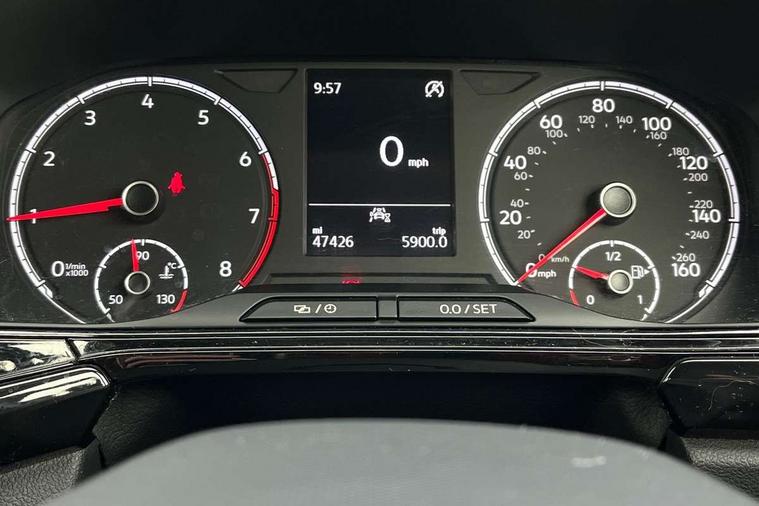 'Lights On' Reminder warning buzzer, Adaptive cruise control including front assist, forward collision warning, autonomous emergency braking, speed limiter, Bluetooth telephone and audio connection for compatible devices, Car information display, Driver alert system, eCall emergency call system, Lane assist, Multifunction computer with visual gear change recommendation for fuel consumption, Power assisted speed sensitive steering, Speedo, rev counter, electronic odometer, trip, service interval display, exterior temperature and fuel gauge, Stop/start system, Warning sound and light for doors and tailgate open, Warning sound and light for front seatbelts unfastened, We Connect Go Dongle, Wireless Car net app connect with Apple CarPlay, combined functionality of Apple CarPlay/Android Auto and MirrorLink, Battery regeneration during braking, Misfuel prevention device, 2x USB connection with USB charging sockets and in rear centre console, DAB Digital radio receiver, Diversity antenna for FM reception, Multi device interface (MDI) with USB connection, Music playback - MP3, WMA and AAC files, Premium USB cable for Apple or Android smartphone compatibility, Simultaneous pairing of 2 compatible mobile devices, Title and cover art display, Automatic dimming interior rear view mirror, Automatic hazard lights activation under emergency braking, Black roof rails, Body colour door handles, Body coloured bumpers, Dusk sensor + automatic driving lights, Front and rear electric windows, Front fog lights with static cornering function, Galvanised body, Heated rear window, High level 3rd brake light, Lower door sills and door pillars in black, Manual coming/automatic leaving home lighting function, Radiator grille with high gloss surface and chrome strip, Rain sensor, Rear lights incorporating LED technology, Rear window aerial, Rear windscreen washer and wiper with interval delay, Reflectors in all doors, Tailgate with integrated roof spoiler, Windscreen wipers/ intermittent wipe + 4 position delay, 12V Accessory socket in centre console, 3 rear head restraints and 3 rear three point seat belts with ECE label, 60/40 split folding rear seat backrest, Drawer under drivers seat, Driver and front passenger sunvisor with vanity mirror, Driver's sunvisor with ticket holder, Dust and pollen filter, Front and rear reading lights X 2, Front centre armrest with storage compartment, Front seat back storage pockets, Glovebox, Heating and fresh air system with 4 stage blower, Height/reach adjust steering wheel, Instrument lighting white adjustable panel illumination, Interior light with delay, Isofix child seat preparation for 2 rear child seats, Luggage compartment cover, Luggage compartment lighting, Manual front seats with height adjustment, Moveable and foldable Rear bench seat, Storage compartment in drivers and front passengers door, Three spoke multi-function leather trimmed steering wheel and gearknob, Variable boot floor, Anti-lock Braking System (ABS) with Hydraulic Brake Assist (HBA), Automatic post collision braking system, Driver and front passenger safety-optimised head restraints, Drivers and Front Passengers airbags with front passengers airbag deactivation switch, ESC with EDL, ASR, EDTC and trailer stabilisation function, Extended and proactive pedestrian protection, Front and rear curtain airbags, Front disc brakes and rear drum brakes, Front seat side impact airbags, Height adjustable 3 point automatic front seatbelts with pretensioners, Hill start assist, Pre crash preventive occupant protection, Rigid safety cell with front and rear crumple zones, Tyre pressure loss indicator, Volkswagen roadside assistance, Alarm with interior protection and deactivation via infotainment system, Child security locks in rear doors, Electronic engine immobiliser, Remote tailgate unlocking using key fob,