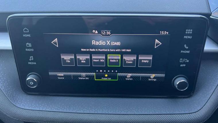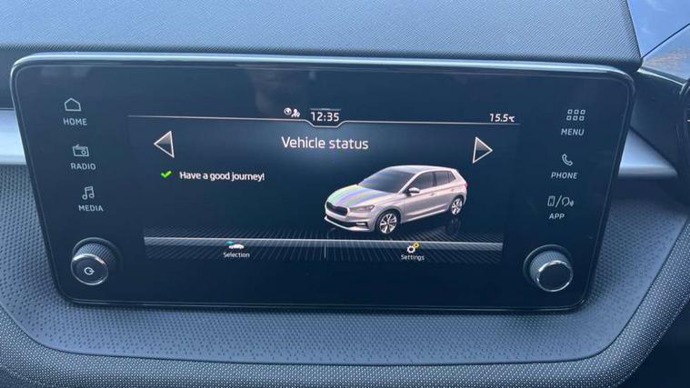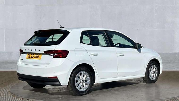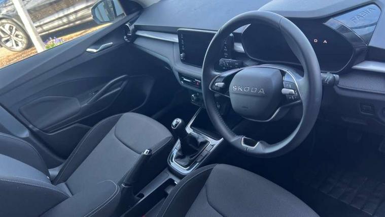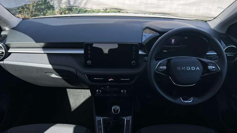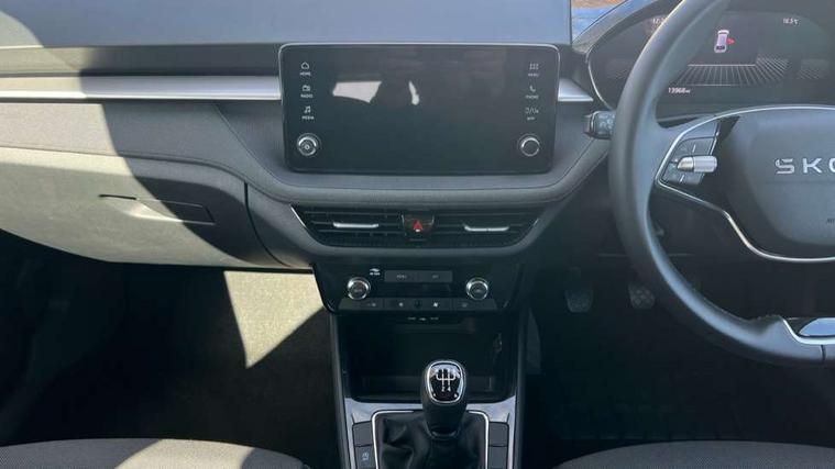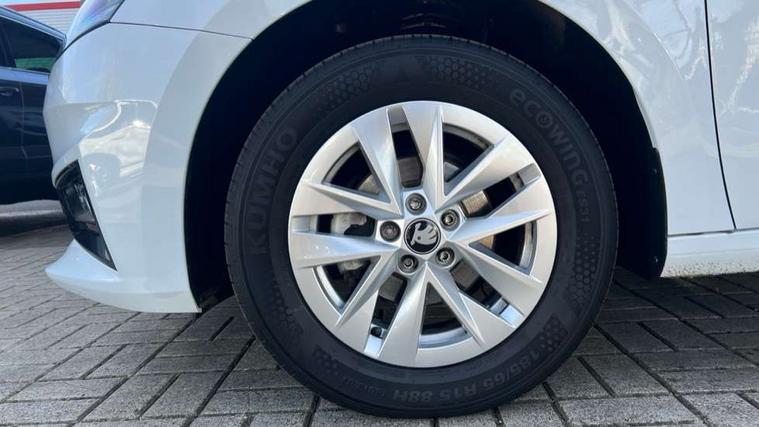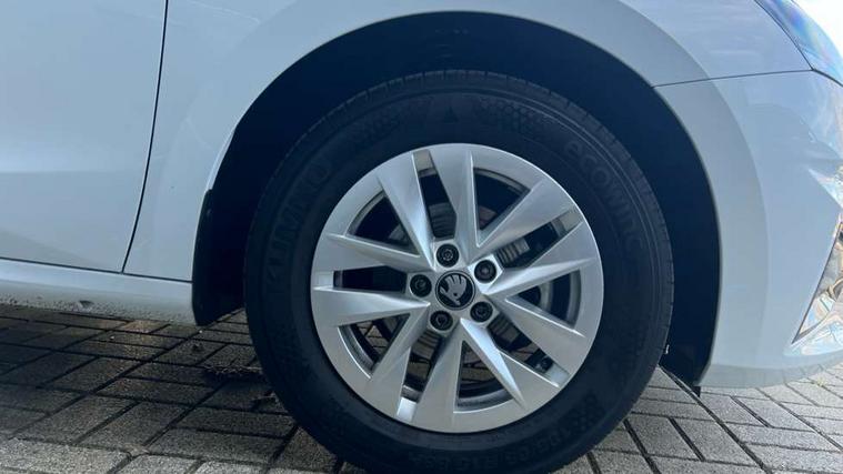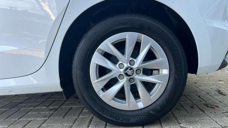 8" Digital instrument display, Advanced driver attention and drowsiness monitor, Bluetooth connection, Electromechanical power steering, Exterior temperature gauge, Service interval indicator, Traffic sign recognition, Wireless SmartLink for Apple CarPlay and Android Auto, 6 Speakers (4 in front and 2 in rear), 8.25" Skoda infotainment touchscreen display, Auxiliary socket for external MP3 player, DAB digital radio reception, Auto dimming rear view mirror, Body colour door mirrors, Body coloured bumpers, Door mirror integrated indicators, Front and rear electric windows, Front window wiper intermittent control, Headlight range control - Automatic, Ice scraper in fuel cap, LED 3rd brake light, LED daytime running lights with coming and leaving home feature, LED rear lights, Rear LED fog light, Rear side wing doors, Rear window wiper with washing nozzles, Roof mounted spoiler, SKODA tailgate lettering in chrome, Unique dark chrome design logo on alloy wheels, 2 reading lights in front and 2 reading lights in rear, 3 rear headrests, Backrest split and folding, Central console with removable cup holder and storage box, Chrome handbrake release button, Dual zone air conditioning with climatronic electronic control, Fabric upholstery, Front centre armrest, Gearshift knob/handle in leather, Grain satin black interior door handles, Hand brake lever handle in leather, Height adjustable front headrests, Height adjustable front seats, Height adjustable steering wheel, ISOFIX and TopTether anchorage points to the outer rear seats, ISOFIX and TopTether on the front passenger seat, Luggage compartment lighting, Manually adjustable lumbar support in front seats, Pollen filter, Rear seat bench unsplit, Single front passenger seat, Skoda lettering on steering wheel, Storm grey headlining, Sun visors with mirror and airbag label on passenger side, Textile floor mats, Ticket holder, Umbrella in drivers door, 3-point height adjustable front seats belts with pretensioner and force limiter, Automatic warning lights in case of crash, Driver and passengers airbag with switch off function, e-Call+, ESC including ABS, MSR, ASR, EDS, HBA and XDS, Front and rear seat belt warning, FRONT ASSIST (AEB City and AEB Inter Urban), Front side airbags, Head airbags, One tone horn, Pedestrian protection, Three rear 3-points safety seat belts with pretensioner and force limiter including stop function for outer rear seat belts, Tyre pressure monitoring system, Anti-theft alarm system including immobiliser, interior monitoring, backup horn, and towing protection, Central locking with radio remote control, interior controls, SAFE function and 2 foldable keys, Black painted air vents, Grain satin black central console cover, Metallic grey upper decorative trim, Satin black door and side trim panel in front, Textile Kota grey lower decorative inserts, Anti-theft wheel bolts protection, Super-low rolling resistance tyres,
