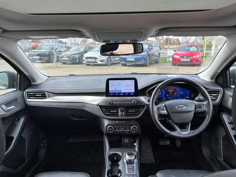 Aluminium brushed instrument panel, Bluetooth system, Digital clock, Easy fuel capless refuelling system, Eco mode, Ford pass connect, Ford SYNC 3 nav system with DAB radio, 8" colour touch screen, voice control, app link, Apple car play/Android auto and 4.2" TFT coloured cluster, Head up Display, Intelligent speed assist, PAS, Rear wide view camera, Rotary gear shift dial, Selectable drive modes with slippery and trail mode, Trip computer, Vignale wrapped instrument panel, Diesel particulate filter, Raised ride height (30mm higher than standard), 6 speakers, Aux input, B&O Audio system with 360 degree sound, 10 speakers, 675 watts of total amplifier power and digital sound processor, 'Quickclear' heated windscreen/heated washer jets, Active branded scuff plates, Active front and rear bumper with unique upper and lower grille, Auto dimming rear view mirror, Auto headlamps (on/off), Automatic rain sensing wipers, Black painted roof and mirror caps, Body colour power folding door mirrors with puddle lights, Body coloured bumpers, Body coloured door handles, Electrically operated and heated door mirrors with side indicators, Electrically operated front and rear windows with one touch opening and closing, Front variable intermittent wipers with electric wash, Heated rear window, LED daytime running lamp, LED front fog lamps with cornering function, Openable panorama roof, Rear privacy glass, Tailgate wash/wipe, Twin exhaust tailpipes, Unique door and instrument panel inserts, Unique skid plates and side rocker mouldings, 6 way power adjustable driver seat, 60/40 split back and cushion rear seats with 2 height adjustable headrests, Ambient LED multi colour interior lighting, Centre console with armrest, Driver's seat manual height adjust, Dual zone electronic air temperature control, Front and rear floor mats with blue stitching, Front passenger seat manual height and lumbar adjust, Full leather seats, Gear lever gaiter ring with blue stitching, Heated front seats, Heated steering wheel, Height adjustable front headrests, Isofix child seat preparation, Leather steering wheel, Leather upholstery, Paddle shift controls, Reach + rake adjustable steering column, Rear centre headrest, Soft console knee pads with blue stitching, ABS+Electronic Brake force Distribution, Auto hold function, Driver airbag, Electronic parking brake, Electronic stability control, Front and rear seatbelt reminder, Front inertia reel height adjustable seatbelts with pre-tensioners, Front passenger airbag, Front side airbags, Hill start assist, Passenger airbag deactivate switch, Post collision braking, Pre collision assist with autonomous emergency braking and pedestrian/cyclist detection, Side curtain airbags, Three rear inertia reel lap/diagonal seatbelts, Tyre pressure monitoring system, Keyless entry, MyKey system, Remote central locking & engine immobiliser, Thatcham category 1 alarm, 18" 5x2 spoke absolute black machined painted alloy wheels, Mini steel spare wheel,
