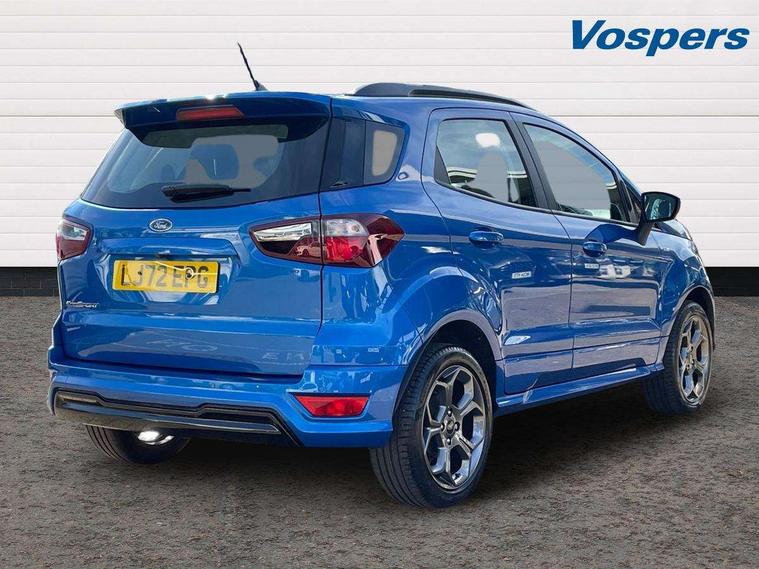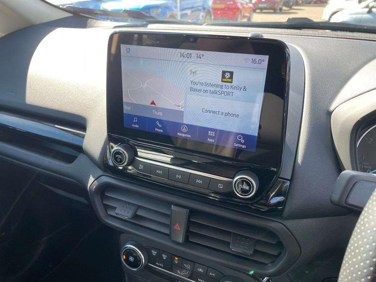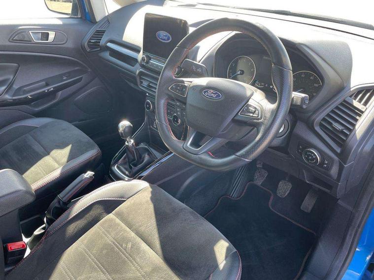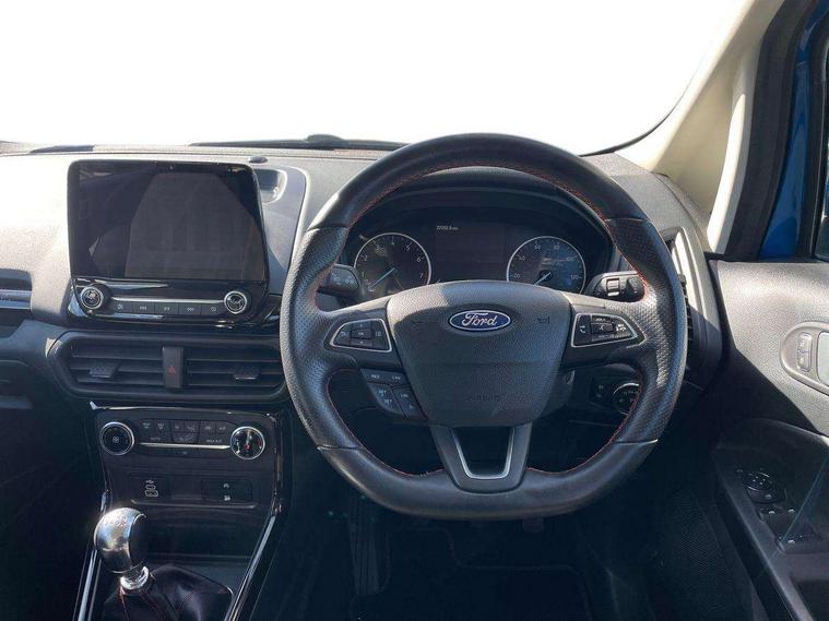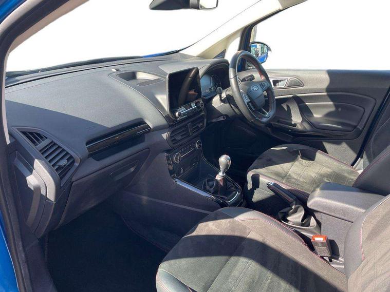Cruise control, e-Call (emergency call), Easy fuel capless refuelling system, Ford SYNC 3 nav system with DAB radio, 8" screen, emergency assistance, Apple car play/Android auto, 2x USB, 6 speakers, Ford pass connect, Intelligent speed limiter, PAS, Rear parking sensors, Rear view camera, Traffic sign recognition, Trip computer, Sports suspension, Steering wheel mounted audio controls, Auto dimming rear view mirror, Automatic front wipers, Automatic headlights, Black roof rails, Body colour door handles, Body coloured bumpers, Chrome lower window surround, Electrically adjustable and heated door mirrors, Front fog lights, Front grille bars and surround in black, Headlight levelling control, Large rear roof spoiler, LED day running lights, LED third brake light, Power front and rear windows, Puddle lights, Quick-clear heated windscreen, Rear side wing doors, Rear wiper, ST Line body styling kit - Black headlamp bezel, front and rear sport bumpers, body colour lower door claddings, 12V socket in front and rear, 3 seat bench in 2nd row, 60/40 split rear seats, Ambient lighting, Centre console with sliding front armrest, Cooled glovebox, Courtesy lights with map reading light, Driver seat height/lumbar adjust, Driver's side glovebox, Driver/passenger sunvisors and lidded vanity mirrors, EATC - Electronic Auto Temperature control, Folding grab handles, Front head restraints, Front seat back map pockets, Illuminated glovebox, Illuminated luggage compartment, Isofix system on outer rear seats, Luggage compartment carpet, Neosuede/Partial sensico leather upholstery, Overhead console with sunglasses holder, Rake adjustable rear seats, Reach + rake adjustable steering column, Rear headrests, Sensico trimmed steering wheel, handbrake and gearshift gaiter with red stitching, Single front passenger seat, ST-Line Front floor mats with red stitching, Stainless steel sports pedals, Storage drawers under front seats, Tie down hooks, Variable boot floor, 3x3 point rear seatbelts, ABS, Autonomous emergency braking, Child locks on rear doors, Curtain airbags, Driver airbag, Drivers knee airbag, Electronic Stability Programme with hill launch assist, Front passenger airbag deactivation, Front side airbags, Passenger airbag, Pre collision assist system with AEB, Seatbelt reminder for driver and front passenger, Traction control, Tyre pressure monitoring system, Immobiliser, MyKey system, Remote central locking, Thatcham 1 volume sensing alarm, Low rolling resistance tyres, Tyre inflation kit,