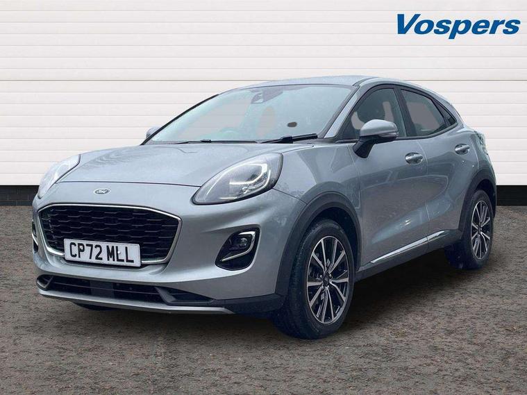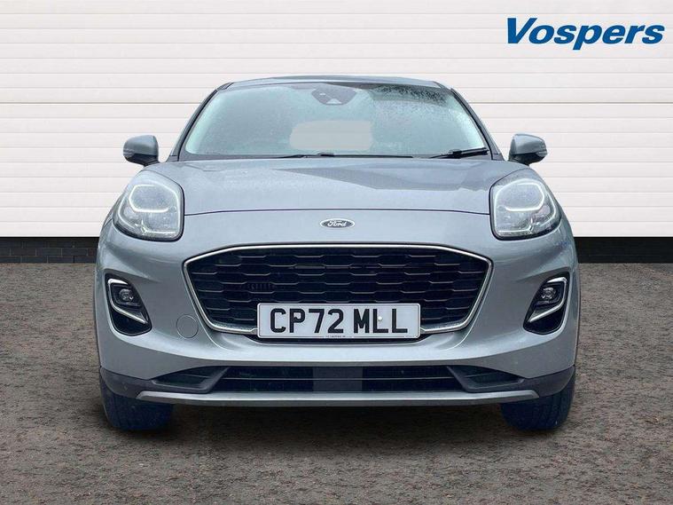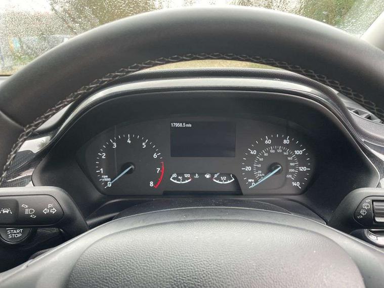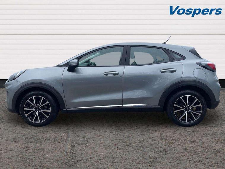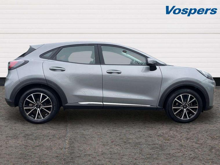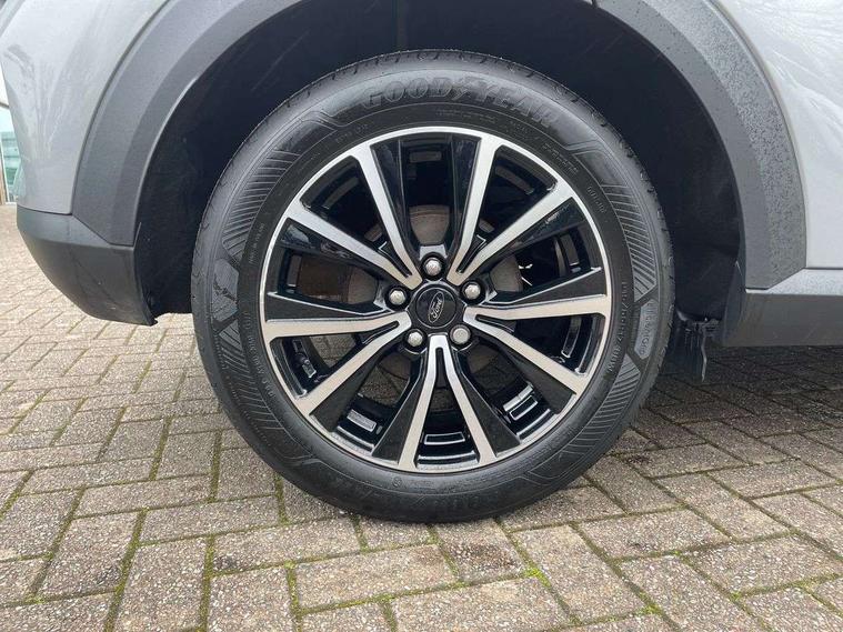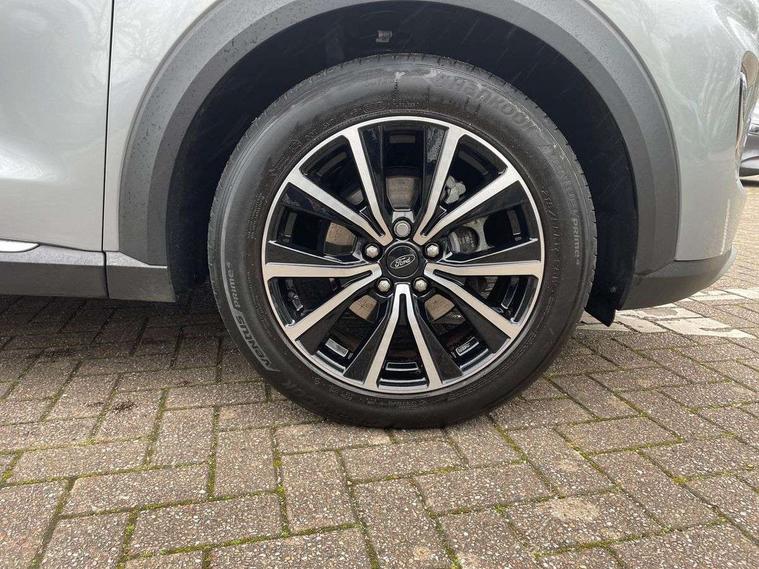 Driver impairment monitor, Emergency call service, Ford easy fuel, Lane keeping aid with lane departure warning, Power assist steering, Power start button, Rear parking sensor, Selectable drive modes(Normal, Eco, Sport, Slippery and Trail), Speed sign recognition, Standard suspension, Automatic headlights with auto high beam, Automatic rain sensing wipers, Body colour rear spoiler, LED rear lamps, Power foldable heated door mirrors with puddle lamps, Projector headlamps with LED day time running lights and front fog lamps, Quickclear heated windscreen, Rear side wing doors, Rear wiper, Third brake light, 3 seat bench in 2nd row, Centre console with armrest and stowage, Electronic automatic temperature control (EATC), Ford megabox extended bootspace, Front and rear head restraints, Front floor mats, Manual 2 way passenger seat adjustment, Manual 4 way driver seat adjust with lumbar adjustment, Sensico leather steering wheel/gear knob/handbrake, Single front passenger seat, Titanium cloth upholstery, Ford SYNC 3 navigation pack - Puma, 3 rear seatbelts, Child safety lock, Electronic stability control (ESC) and hill start assist, Pedestrian/cyclist detection & post-collision braking, Pre collision assist system, Tyre pressure monitoring system (TPMS), Thatcham alarm, 17" 10 spoke absolute black machined finish alloy wheel,