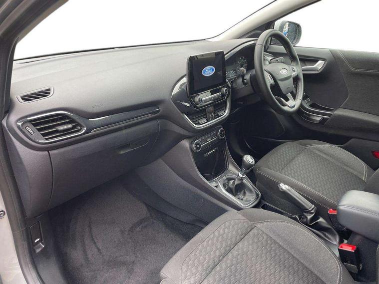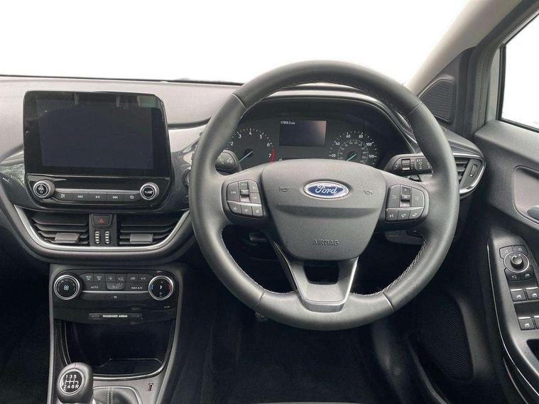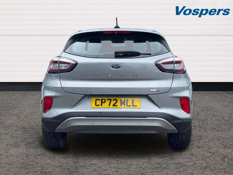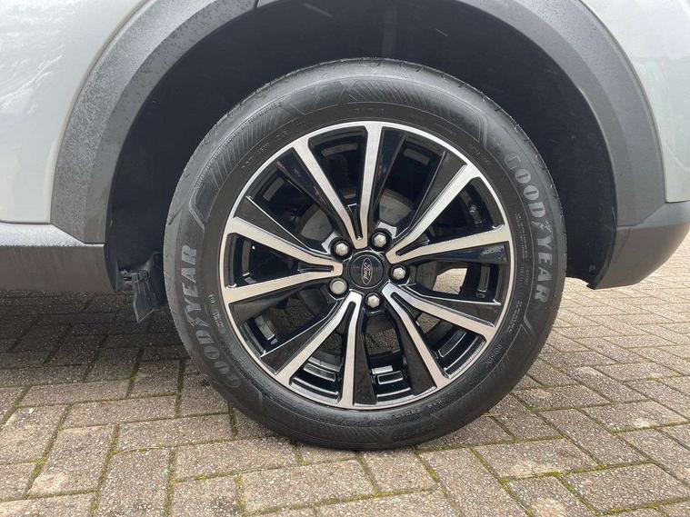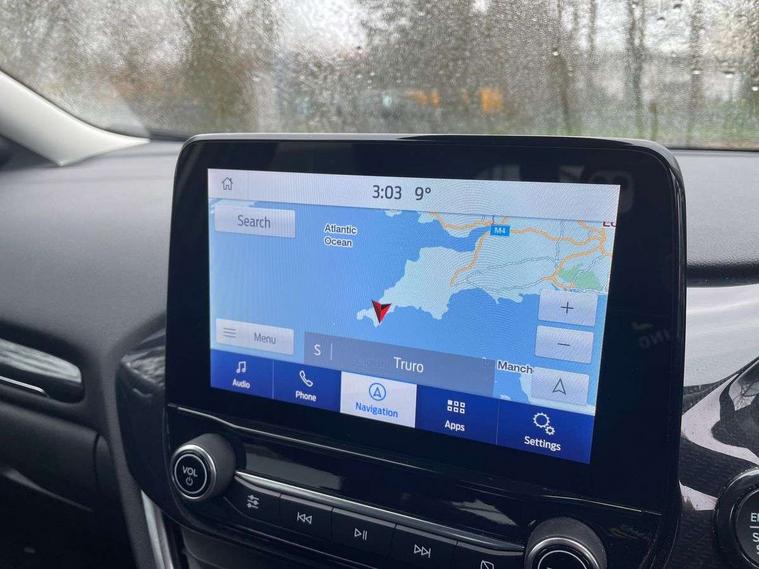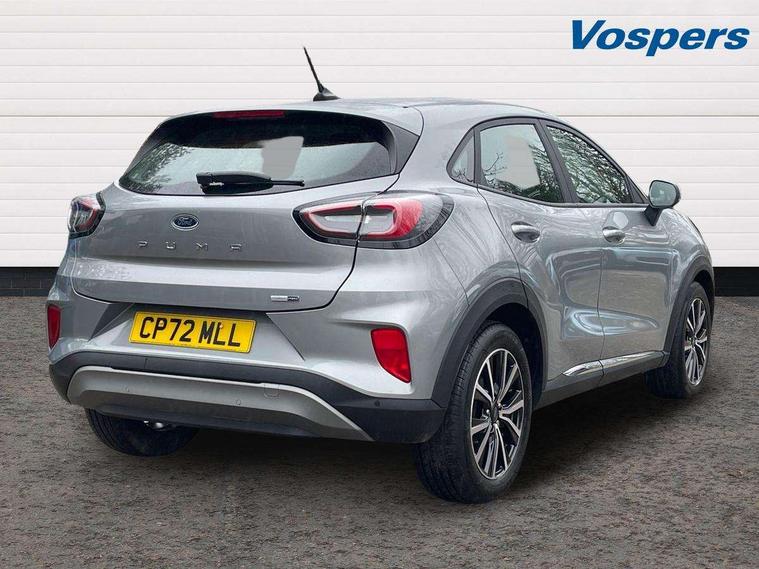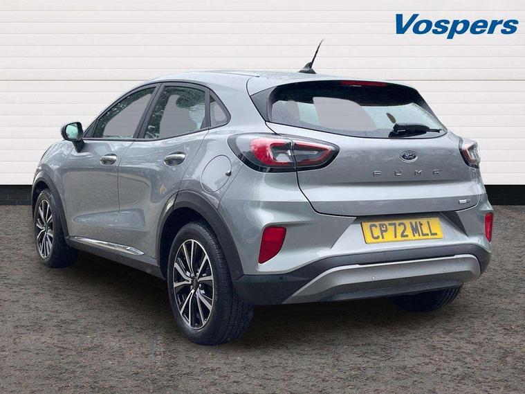 Driver impairment monitor, Emergency call service, Ford easy fuel, Lane keeping aid with lane departure warning, Power assist steering, Power start button, Rear parking sensor, Selectable drive modes(Normal, Eco, Sport, Slippery and Trail), Speed sign recognition, Standard suspension, Automatic headlights with auto high beam, Automatic rain sensing wipers, Body colour rear spoiler, LED rear lamps, Power foldable heated door mirrors with puddle lamps, Projector headlamps with LED day time running lights and front fog lamps, Quickclear heated windscreen, Rear side wing doors, Rear wiper, Third brake light, 3 seat bench in 2nd row, Centre console with armrest and stowage, Electronic automatic temperature control (EATC), Ford megabox extended bootspace, Front and rear head restraints, Front floor mats, Manual 2 way passenger seat adjustment, Manual 4 way driver seat adjust with lumbar adjustment, Sensico leather steering wheel/gear knob/handbrake, Single front passenger seat, Titanium cloth upholstery, Ford SYNC 3 navigation pack - Puma, 3 rear seatbelts, Child safety lock, Electronic stability control (ESC) and hill start assist, Pedestrian/cyclist detection & post-collision braking, Pre collision assist system, Tyre pressure monitoring system (TPMS), Thatcham alarm, 17" 10 spoke absolute black machined finish alloy wheel,