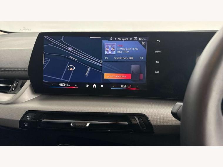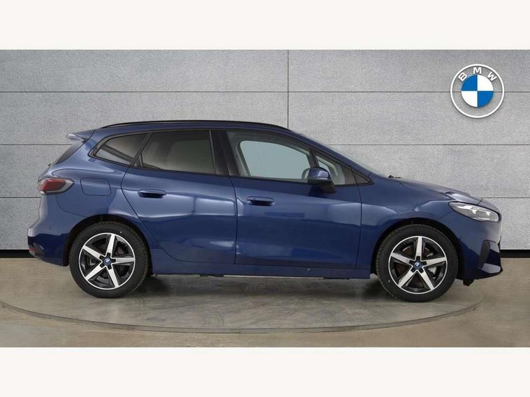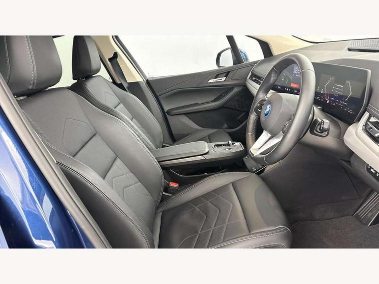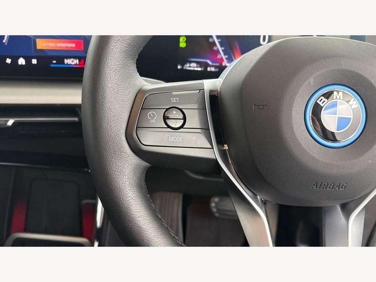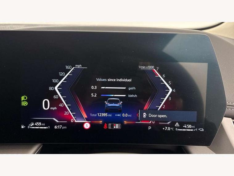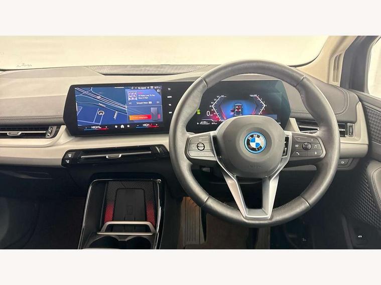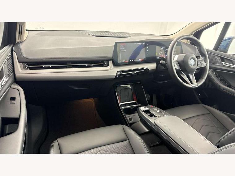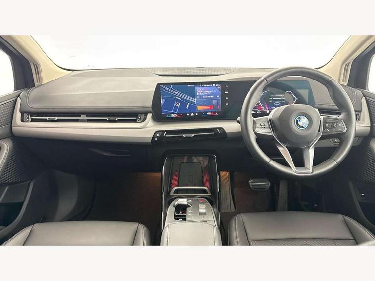 Active Guard, Attentiveness assist, Automatic powered tailgate, Automatic start/stop function, BMW Online services, BMW Operating system 9 with BMW Maps, real-time traffic information, in-car experiences, remote services and smartphone integration, BMW Teleservices, Brake pad wear indicator in front and rear, Condition based service, ConnectedDrive Services, Drive off assistant, Flat air vents on instrument panel in high gloss black, adjustable slats with elements in pearl chrome, iDrive controller, Instrument cluster with speedometer with miles per hour read out, tachometer and fuel gauge, Language version English, On board computer - average speed+fuel consumption, service interval, clock/date, odometer/trip meter, outside temperature display and ice warning, Parking assistant with active park distance control, reversing assistant, lateral parking aid and rear view camera, Servotronic variable electric power steering (EPS), Widescreen display, 11kW AC charging, Drive performance control with ECO PRO comfort + sport mode, eDrive exterior sound, Gear selector switch with toggle operation, Mode 3 public charging cable, Performance Control, Petrol Particulate Filter, Standard suspension, Steptronic transmission with double clutch, 1x USB Type C ports in rear centre console for charging, 2x USB Type C ports in front centre console for charging and data transfer, DAB Digital radio, Personal eSim, Welcome sound upon opening of the front driver or passenger door, Air inlet middle part on front apron in lines specific design with trim strip in satinised aluminium, Aluminium satinated roof rails, Automatic headlights, BMW emblem, engine compartment lid and tailgate, BMW Individual aluminium satinated exterior line, BMW radiator grille with grille struts, end face black high-gloss, radiator grille frame chrome high-gloss, Body colour roof mouldings, Body colour sill covers, Body coloured door mirror caps, Contoured rear roof spoiler in vehicle colour with side aeroblades in black high-gloss, Courtesy lights in exterior mirror with BMW logo projection, Dynamic brake lights, Electric adjustable heated door mirrors, Electric windows - front and rear, with open/close fingertip control, anti-trap facility and comfort closing, Folding door handles integrated flush with surface, Front and rear windscreen wipers with heated front washer nozzles, Front bumper cover with air inlet trims for air curtains in matt black, Front bumper design elements in satinised aluminium, Front door exit lights, Front entry sills with aluminium inserts + BMW inscription, Front oramental grille with radiator grille bars in satinised aluminium, Heated rear window, Hidden exhaust pipe, Home light, LED Daytime running lights and parking lights with turn indicators, LED number plate light, LED rear lights, LED third brake light in rear spoiler, Manual headlight range control, Model inscription on right tailgate, Rain sensor, Rear bumper cover with two L-shaped trims in Pearl chrome, Rear bumper trim strip in satinised aluminium, Rear side wing doors, Shark fin antenna, Trailer stabilisation logic, Visible VIN plate, Welcome lighting, Window washer nozzle for rear view camera, 12V socket in right side trim panel, 2 bag hooks in luggage compartment, 2 front reading lights, 2 open cup holders in front centre console, 2x 12V power socket in luggage compartment and front centre console, 3 seat bench in 2nd row, 40:20:40 split folding rear seat backrests, Additional under floor storage in luggage compartment, Ambient lighting front and rear, Automatic two zone climate control air conditioning, Bottle trays in all doors, Child seat ISOFIX attachment for two outer rear seats and front passenger seat with anchorage points, Embellishers on steering wheel spokes in pearl chrome, Footrest and pedals in black plastic, Four grab handles integrated in roof lining, Front and rear door pockets, Front and rear footwell lighting, Front and rear side armrest integrated into door trim, Front and rear velour floor mats in anthracite, Front centre console storage compartment, Front head restraints, Glovebox with light, Heated front seats, Height adjustable 3 rear head restraints, Illuminated wireless charging tray, Interior door handle recess light on all doors, Luggage compartment lighting on right side, Map pockets, Mechanical rear seats with fore/aft adjustment, Middle centre console storage compartment, Multi-function controls for steering wheel, One piece parcel shelf opens together with tailgate and removable, Rear cloth hooks, Single front passenger seat, Steering wheel column manual adjustment, Storage compartment lighting in centre console and storage tray in centre stack, Storage compartment net in left side trim panel, Storage compartment with folding cover under centre console armrest cushion, Sunvisors with illuminated vanity mirrors, Three spoke sport leather steering wheel, Tilt adjustment incl. cargo function of 2nd row of seats, 3 point seatbelts on all seats, front pyrotechnic belt tensioners, stopper and belt force limiters, rear coded belt buckles, Acoustic protection for pedestrians, Airbag - Front driver and passenger, front and rear head, front side, curtain head protection, manual deactivation of front passenger airbag possible, Anti lock braking system (ABS) with brake assist, Automatic hold function, BMW emergency call, Brake drying, Braking readiness, Child proof locking system in rear door, Cornering brake control, Crash Sensor - activates hazard/interior lighting + unlocks doors, DSC - Dynamic Stability Control, Dynamic brake control, Dynamic Traction Control - DTC, Electromechanical parking brake, Energy recovery system, Front disc brakes, Integrated braking system, PC iBrake PostCrash approach control warning with light braking function, Rear disc brakes, Tyre pressure monitoring system, Warning triangle and first aid kit, Anti theft alarm system, Closing system with central locking, Drive away door locking, Engine immobi