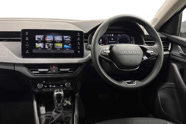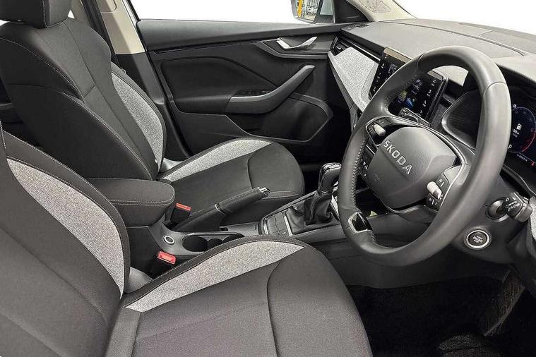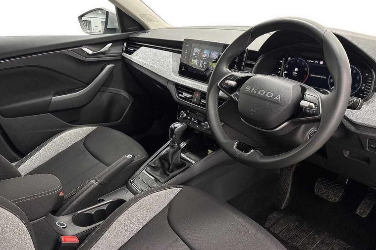 Advanced driver attention and drowsiness monitor, Bluetooth, e-Call (emergency call), Front assist system, PAS, Rear parking sensors, Rear view camera, Speed limiter, Tailgate, Traffic sign recognition, Virtual Cockpit - 10.25" digital display, Voice control system, Wireless smartlink, 4 USB C ports, 8 Speakers, 9.2" Skoda navigation display, DAB radio, Auto dimming rear view mirror, Automatic headlamp activation with Coming home and Leaving home feature, Automatic high/low beam, Body colour bumpers, Body colour door mirrors and handles, Chrome moulding around grille, Front and rear electric windows, Full LED headlights, Heated rear window, LED 3rd brake light, LED brake lights, LED daytime running lights, LED front turning lights, LED high beam, LED low beam, LED taillights, Rear LED fog light, Rear side wing doors, Rear wiper, Tinted windows, Unique dark chrome design logo on alloy wheels, 12V socket in luggage compartment, 3 seat bench in 2nd row, Black / Grey armrest stitching, Black hotstamping, Cargo elements, Chrome inner door handles, Door inserts in satin black, Driver and passenger sun visors with vanity mirror, Dual zone climate control, Front and rear roof lights, Front centre armrest, Front head restraints, Glasses storage in roof liner, Height adjustable driver seat, Height adjustable passenger seat, Ice scraper, Illuminated glove compartment, Inner circulation control with pollen filter, ISOFIX for front passenger seat, Isofix preparation for back seats, Leather gearknob and handbrake lever, Loft cloth upholstery, Luggage net under rear parcel shelf, Manual lumbar support for front seats, Net package and top tether hooks in boot space, Pearl grey ceiling, Pocket on the back of both front seats, incl. mobile phone pockets, Single front passenger seat, Skoda lettering on steering wheel, Textile floor mats, Third rear headrest, Ticket holder, Top tether for front passenger seat, Umbrella in driver's door, 3x3 point rear seatbelts, ABS, Child locks, Curtain airbags and front side airbags, Disc brakes, Driver and front passenger airbags, ESP, Hill hold control, Manual leather parking brake, One tone horn, Passenger airbag switch off function, Seatbelt reminder for driver and front passenger, Tyre pressure monitoring system, Anti theft alarm system with interior monitoring, backup horn and towing protection, Anti-theft wheel bolts, Remote central locking with 2 remote folding keys, SAFE function for remote central locking, Decord pad, door inserts Kota uni,