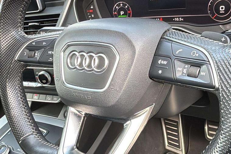 Audi connect, Audi drive select, Audi smartphone interface, Driver information centre with colour display in instrument panel, Electric power steering, Power tailgate, Remote electric boot opening/closing, SD card based MMI navigation, Service interval indicator, Voice control system, Diesel particulate filter, 2 USB ports, Audi sound system, Auxiliary input socket, CD player, DAB Digital radio, MMI radio plus with 7" colour MMI screen and MMI controller, Acoustic windscreen, Aluminium roof rails, Aluminium sill plates, Auto dimming rear view mirror, Black high gloss front air inlet in matt aluminium effect, Body colour bumpers, Body colour door mirrors, Body colour rear diffuser insert, Chrome exhaust tailpipe, Electric headlight adjustment, Electrically adjustable and heated door mirrors, Front and rear electric windows, Front fog lights, Headlight range control, Headlight washers, Honeycomb side air inlet in titan black, Light and rain sensor for auto activation of lights and windscreen wipers, Loading sill protector in stainless steel, Privacy glass with front acoustic glazing, Rear diffuser strip in matt aluminium silver, Rear spoiler, Rear wiper, S Line side skirts, Selenite silver underbody guard, Twilight grey matt radiator grille with matt aluminium horizontal chrome struts, 3 rear headrests, 3 zone climate control, 4 way electric lumbar support for driver and front passenger, 40:20:40 split folding rear bench seat, Black cloth headlining, Front centre armrest with 12v socket, Front sports seats, Front/rear floor mats, Height adjustable driver's seat, Height adjustable front head restraints, Illuminated door sills, Isofix front passenger and rear seat preparation, Jack and tool kit, Load compartment cover, Luggage compartment carpet, Matt selenite silver door inserts, Perforated leather gearknob, Reach + rake adjustable steering column, Removable luggage compartment floor, Removable net partition, Roller blind loadspace cover, Stainless steel pedals, Sunvisors with vanity mirrors, Non Smokers pack, 3 point seatbelts on all seats, ABS, Curtain airbags, Driver and passenger airbags, Driver and passenger side airbags, Electromechanical parking brake, ESC with ASR, ESP, First aid kit, Front passenger airbag deactivation, Hill descent control, Seat belt force limiter, Seatbelt warning lamp, Traction control, Tyre pressure monitor, Warning triangle, Keyless Go access/ignition system, Locking wheel bolts, Remote central locking, Thatcham category 1 alarm + immobiliser, Contrast stitching,