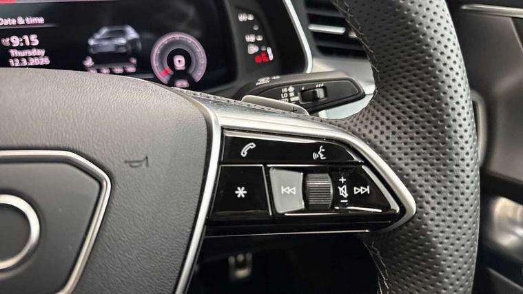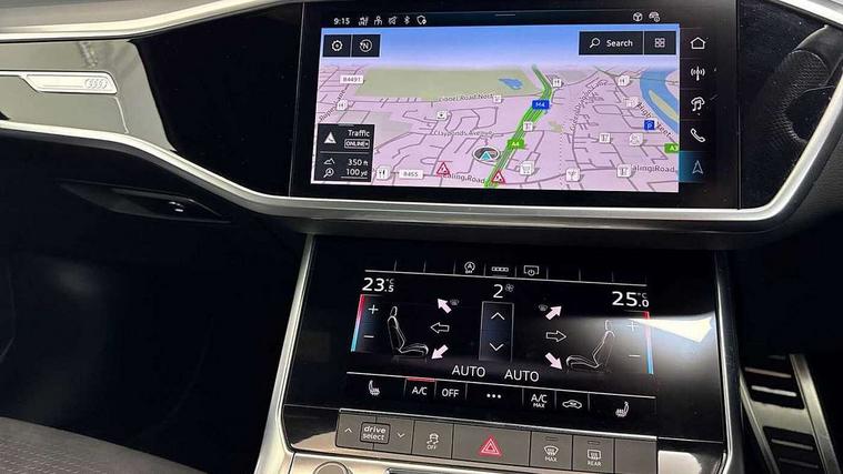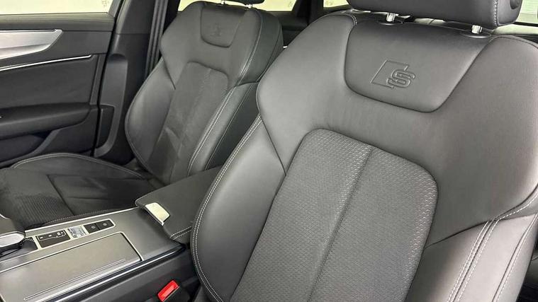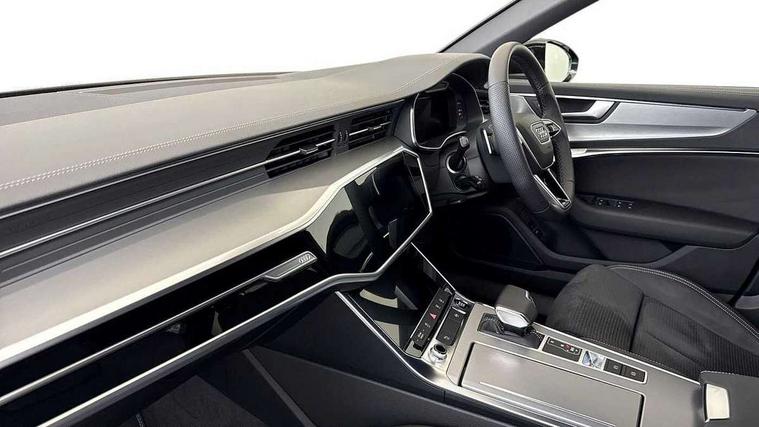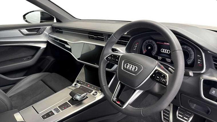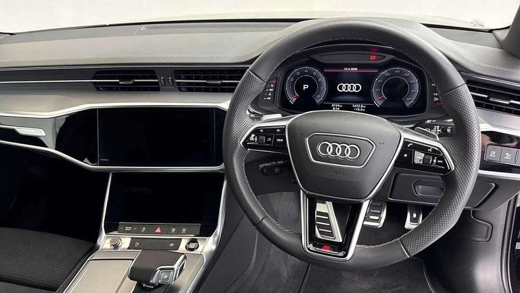 Audi connect safety and service (e-call), Audi connect with Amazon Alexa Integration, Audi drive select, Audi parking system plus - acoustic and visual park assist system for front and rear, Audi virtual cockpit, Automatic start/stop system with coasting functionality, Bluetooth interface, Camera based traffic sign recognition, Electric boot lid release, Lane departure warning system, MMI navigation plus with 10.1" and 8.6" touch screens, Progressive steering, Rear view camera, Service interval indicator, Smartphone interface includes wireless Apple carplay/Android Auto, Voice control system, Sports suspension, Audi front music interface, Audi sound system, Auxiliary input socket, DAB Digital radio, USB connection, Body coloured door mirrors, Electric front/rear windows, Electrically adjustable heated and folding + automatically dimming exterior mirrors with memory function, Frameless auto dimming interior rear view mirror, Front intermittent wipers, Heat insulating darkened glass in side and rear windows, Heat insulating glass in windshield, LED rear lights with dynamic indicators, LED signature front daytime running light, LED third brake light, Matrix LED headlights, Matt black rear diffuser with diffuser strip and tailpipes in chrome, Matt black side air intake grille with inlay in matt aluminium, Privacy glass, Radiator grille in anthracite black matt, single frame in chrome and horizontal struts in matt aluminium silver, Rain and light sensors, Rear boot, Rear side wing doors, 2 zone deluxe electronic climate control, 3 spoke high multi-function perforated leather steering wheel with contrast stitching and shift paddles, 40/20/40 split folding 3 rear seat bench in 3 parts with rear centre armrest, Audi phone box light, Black cloth headlining, Electrically adjustable front seats including seat height, fore/aft position, backrest angle and 4-way lumbar with memory for driver's seat, Front and rear floor mats, Front centre armrest, Front head restraints, Heated front seats, Height/reach adjust steering wheel, Illuminated door sill trims with S logo, Illuminated sun visors with vanity mirrors, Leather gear knob, Rear headrests, Single front passenger seat, Stainless steel pedals and foot rest, Tool kit and car jack, LED Interior Ambient Lighting Pack - A6, Non smoking pack - A6, S line exterior style pack - A6, 3 point seatbelts on all seats, Airbags - Front side, front and rear including head, Audi pre-sense front, EBD - Electronic brakeforce distribution, Electromechanical parking brake, Electronic Stability Control (ESC) including ABS, ASR and EDL, Extended pedestrian protection measures, ISOFIX child seat mounting for front passenger seat and ISOFIX child seat mounting with Top Tether for outer rear seats, Manual child proof rear door locks, Seatbelt monitoring, Tyre pressure warning light, Warning triangle and first aid kit, Anti theft alarm with tow away protection, Anti-theft wheel bolts and wheel loosening detection, Immobiliser, Keyless Go, Remote central locking, Matt brushed aluminium inlays,