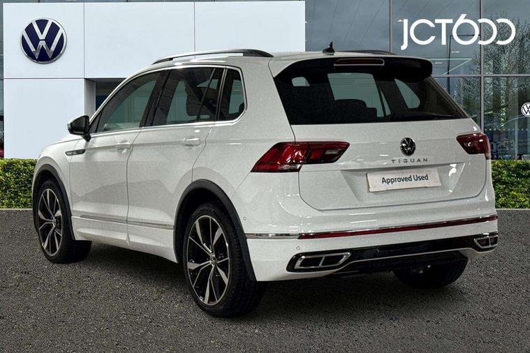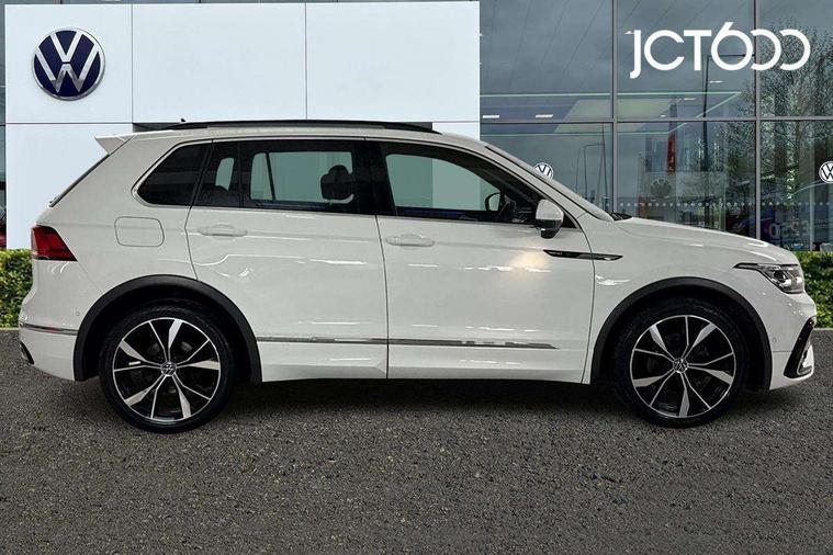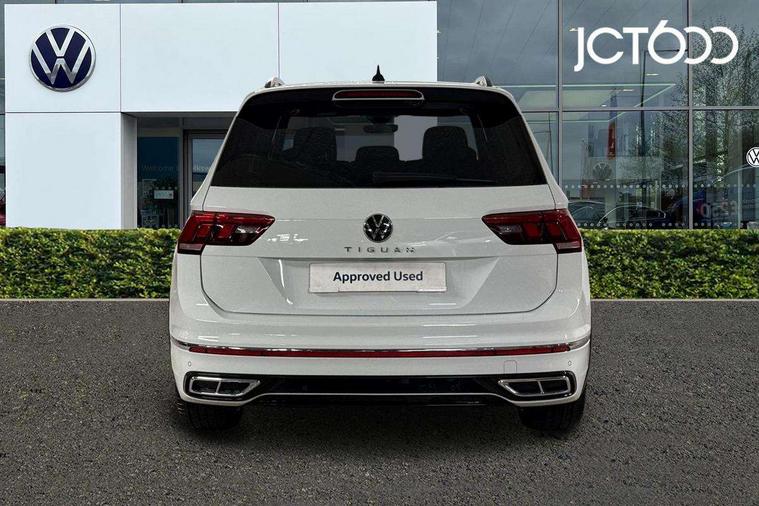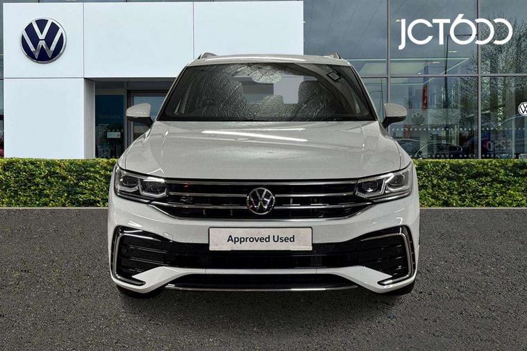 Adaptive cruise control ACC stop and go including speed limiter, App-Connect incl. App-Connect Wireless for Apple CarPlay and Android Auto, Bluetooth phone integration system, Distance control assist, Driver alert system, Driver profile selection, Dynamic road sign display, eCall emergency call system, Electromechanical speed sensitive power steering, Engine start/stop button, Lane keeping system Lane Assist, Lights on warning, Multifunction front facing camera, Outside temperature display, Premium multifunction display with multi colour display, Remote control boot opening, Rev counter, Revision / skills operating concept travel assistant, Service interval indicator, Speed limit display, Start/stop system with regenerative braking, Trip computer, Warning sound and light for doors and tailgate open, Battery regeneration during braking, Diesel particulate filter, Misfuel prevention device for diesel engine, Selective Catalytic Reduction, XDS electronic differential lock for improved traction and handling, 4 X 20 watt output, 8 Speakers, Diversity antenna for FM reception, Radio, SD card slot, Simultaneous pairing of 2 compatible mobile devices, SMS functionality - read, compose and send SMS messages using touch-screen display, Title and cover art display, USB C ports, Auto dimming interior rear view mirror, Automatic headlight control system, Body colour door handles, Chrome moldings on the side windows, Coming/leaving home lighting function, Dynamic headlight range control, Front and rear electric windows, Heated rear window, High level 3rd brake light, Laminated safety glass windshield, heat and sound insulating, LED headlamps with LED separate daytime running light and dynamic cornering light, LED rear combination lamps, LED rear number plate lights, License plate carrier in front and rear, Poor weather light and cornering light, R Line body kit, R Line side sills, Rain sensor windscreen wipers, Rear exhaust tailpipe, Rear fog lamp, Rear side wing doors, Rear spoiler in R style, Rear windscreen washer and wiper with interval delay, Side and rear windows in heat insulating glass, Trailer Stability Programme, Unique R Line badging, Windscreen wipers/ intermittent wipe + 4 position delay, 12V outlet in center console rear and in luggage compartment, 12V outlet in front and tray, 2 cup holders in front, 2 LED front reading lights, 2 LED rear reading lights, 3 bench rear seats in 2nd row, 3 rear headrests, 4 load lashing points, 40:20:40 split folding rear seats, Air Care Climatronic 3 zone automatic climate control with enhanced air filter and controls in the rear, Backrest release for left front seat, Black headlining, Brushed stainless steel pedals and footrest, Carpet mats in front and rear with decorative stitching in Gray, Climate control unit rear with touch function, Door and side trim panel in foam film, insert in leatherette, Front centre armrest, Front footwell illumination, Front seats head restraints (x-adjustment), Height adjustable front seats, Height/reach adjust steering wheel, Instrument lighting white adjustable panel illumination, Interior light with delay, Isofix Preparation 2 Rear child seats, Leather gear knob, Lockable cooled glovebox, Luggage compartment lighting, Luggage net, Rear bench seat asymetrically split folding, longitudinally movable and folding with load-through hatch and center armrest, Remote unlocking for rear seat backrest, Removable luggage cover, Removable rear headrests, Safety optimised front head restraints, Single front passenger seat, Sliding/reclining rear seats, Standard rear seat release, Storage compartment in driver's door, Storage compartment in passenger's door, Storage compartment in rear doors, Storage compartments in luggage area left and right, Storage tray on dashboard, Sun visors with illuminated vanity mirrors, Top front comfort seats, Variable boot floor, height adjustable and removable, Driver assistance pack plus - Tiguan DSG, 3 point seat belt for centre rear seats, 3 point seat belts with seat belt pretensioners for the outer rear seats, Active bonnet, Curtain airbags for front and rear passengers, Driver/Front Passenger airbags, Drivers knee airbag, Electronic parking brake with auto hold, Electronic Stability Control with driver steering recommendation, ABS, ASR, EDL, EDTC and trailer stabilization, Front assist with autonomous emergency braking (for Adaptive Cruise Control ACC up to 130 mph), Front disc brakes, Front passenger airbag deactivation, Front side airbags, Height adjustable front 3 point seatbelts + pretensioners, Hill hold control, Manual child proof rear door locks, Pedestrian monitoring system, Power assisted brakes, Proactive passenger protection system in combination with front assist, Rear disc brakes, Rigid safety cell with front and rear crumple zones, Two tone horn, Warning sound and light for front seat belts if unfastened, Anti theft alarm system with interior monitoring, backup horn and towing protection, Anti theft wheel bolts, Electronic engine immobiliser, Tool kit,