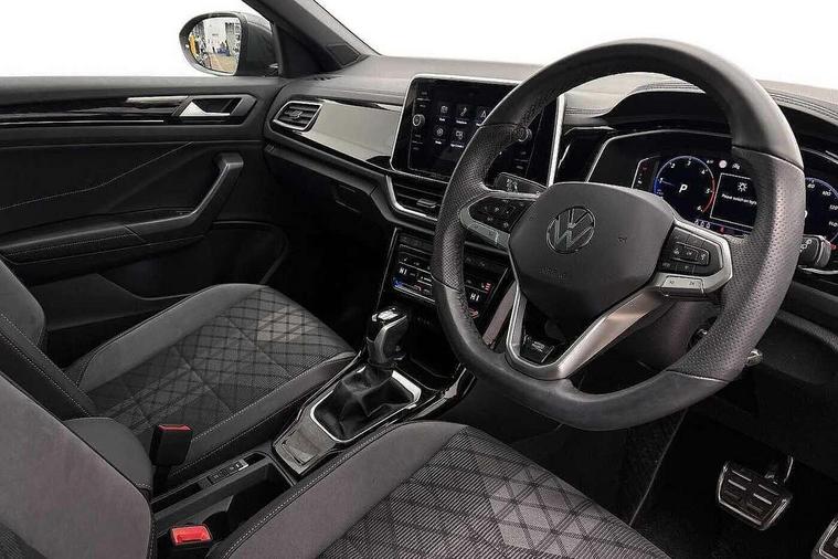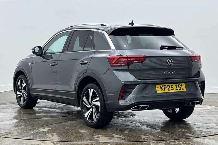 10.25" Digital cockpit pro, Advanced driver attention and drowsiness monitor, Dynamic road sign display, Emergency call service, Lane keeping system Lane Assist, Mobile phone interface, Modified key software - reduce switch off time for key status change to Long no motion, Online services, Park assist including front and rear parking sensors, Service interval indicator, Tailgate/trunk lid release from outside, Think blue trainer driver tips and journey analysis, Warning sound and light for front seatbelts unfastened, Wireless app connect, Battery regeneration during braking, Start/stop function with battery regeneration, DAB Digital radio, Diversity antenna for FM reception, Front and rear 6 speakers, Music playback - MP3, WMA and AAC files, Premium USB cable in choice of either Apple or Android smartphone compatibility, SD card slot, Simultaneous pairing of 2 compatible mobile devices, Title and cover art display, We Connect and We Connect Plus functionality, Auto dimming interior rear view mirror, Automatic hazard lights activation under emergency braking, Automatic headlight control with LED separate daytime running lights with coming/leaving home function, Body coloured exterior mirror housings and door handles, Electrically adjustable and heated door mirrors, Extended roof spoiler, Exterior mirrors aspherical on driver side, convex on front passenger side, External USB type C socket and charging sockets, Front windscreen wiper with intermittent wipe and 4 position delay, Heated rear window, LED 3rd brake light, LED rear combination lamps, LED rear number plate lights, Power windows with comfort operation and circuit breaker, Privacy glass for rear side windows and rear window, R-Line design body coloured bumpers, Rain sensor, Rear exhaust tailpipe, Rear fog light on one side and reversing lights on both sides, Rear side wing doors, Rear wash/wipe with intermittent wipe setting, Remote electrically foldable door mirrors, puddle lights and reverse activated passenger's door mirror, 12V power socket in centre console, 3 rear head restraints, 3 seat bench in 2nd row, 4 load lashing points in luggage compartment, Air care climatronic air conditoning system with active combination filter and 2-zone temperature control, Black roof lining, Chrome plated decorative trims, Chrome plated radiator grille inserts, air vent surrounds and light switch surrounds, Door and side trim panel with leatherette insert, Front + rear carpet mats, Front centre armrest, Front cupholders x 2, Front footwell illumination, Front reading light, Front scuff plates with R Line logo, Front seat back storage pockets, Glove compartment door with light, Instrument lighting, white adjustable panel illumination, Interior ambient lighting and surround lighting, Interior light delay, Isofix child seat preparation, Leather gearshift handle, Load-through provision with cup holder when folded down ('Unsplit rear seat bench, split folding backrest, with centre armrest), Luggage compartment lighting, Single front passenger seat, Stainless steel pedals, Storage compartment in left and right luggage area, Storage compartment in rear doors, Storage compartments in driver and front passenger doors, Sunvisors with illuminated vanity mirrors, Variable boot floor, height adjustable and removable, Driver assistance pack without proactive passenger protection - T-Roc, 3 point height adj front seatbelts + pretensioners, 3 point seatbelts in outer rear with ECE label, ABS, Child locks on rear doors, City emergency braking and pedestrian monitoring, Driver and front passenger airbag with front passenger airbag deactivation, Driver and front passenger safety-optimised head restraints, Drivers seatbelt reminder, Electronic parking brake, Electronic Stability Control (ESC) inc EDL (Electronic Differential Lock) and ASR (Traction Control), Front and rear passengers curtain airbag system including front side airbags, Hill start assist, Predictive pedestrian protection, Rear disc brakes, Two tone horn, Tyre pressure loss indicator, Volkswagen roadside assistance, Piano black decorative inserts in dashboard and front door trim panels, Trims for alloy wheels,