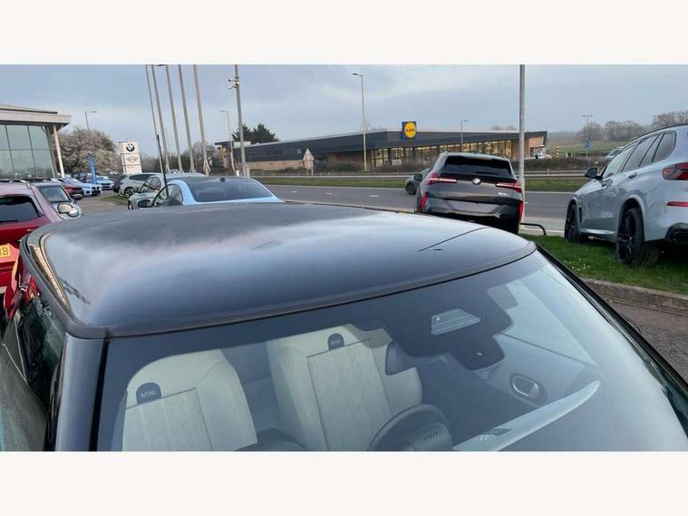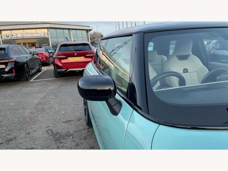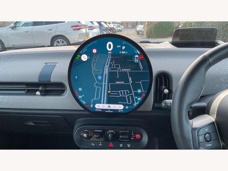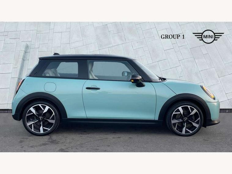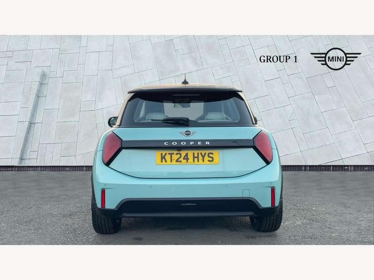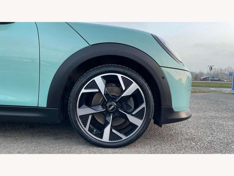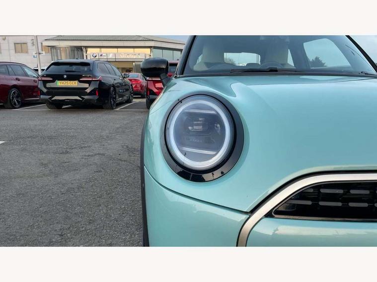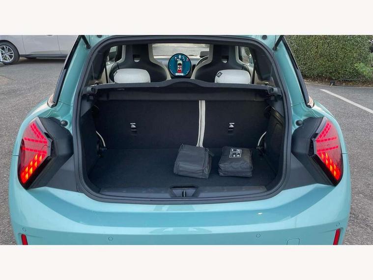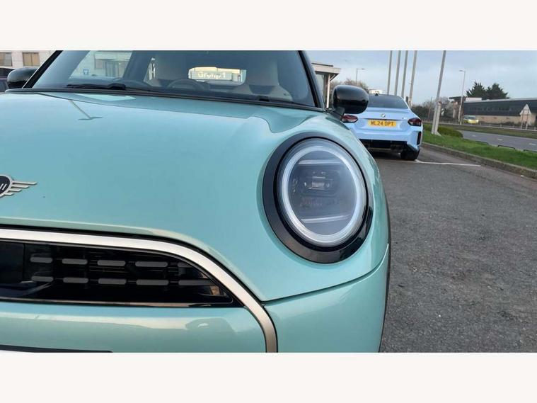 Central toggle bar, Circular OLED Screen, Compatible mobile phone bluetooth with audio streaming, Cruise control, Digital instrument cluster, Electro-mechanical speed dependant steering assistance, Emergency call service, MINI Experience Modes, Mini navigation system, On board computer, Service interval indicator, 7 speed steptronic transmission with double clutch, DAB Digital radio, Personal eSim, Auto headlights, Electric adjustable heated door mirrors, Electric front windows, Heated rear window, Heated windscreen washer jets, LED daytime running lights, LED Headlights, LED indicator lights, LED rear lights, Logos in Vibrant Silver, Rain sensor window wipers, Rear fog lights, Rear window wiper, Vibrant silver grille surround, 2 seat bench in second row, 2 zone automatic air conditioning, 60/40 rear seat bench, Ambient lighting, Cupholders, Dark headliner, Floor mats, Front and rear head restraints, Front compact armrest, Heated steering wheel, Height adjustable passenger seat, Lidded storage box in grey knit, Luggage compartment lighting, Single front passenger seat, Sport Vescin Steering Wheel, Sunvisors with vanity mirrors, Vescin synthetic leather upholstery, Driving assistant pack - Cooper Hatchback, Park assistant pack - Cooper Hatchback, 3 point seatbelts on all four seats, 6 Airbags - front, side, head and seat belt tensioners, Acoustic pedestrian protection, Anti-lock braking system (ABS), DSC - Dynamic Stability Control, Electronic parking brake, Front and rear disc brakes, Front ISOFIX (iSize), Front passenger airbag deactivation, Traction control, Tyre pressure monitoring system, Alarm, Immobiliser, Remote central locking, Blue decorative dash strap, Light Beige/Grey dash knit, Tyre repair kit,