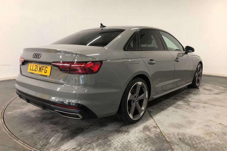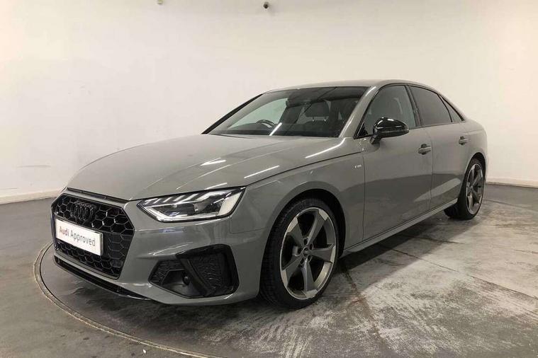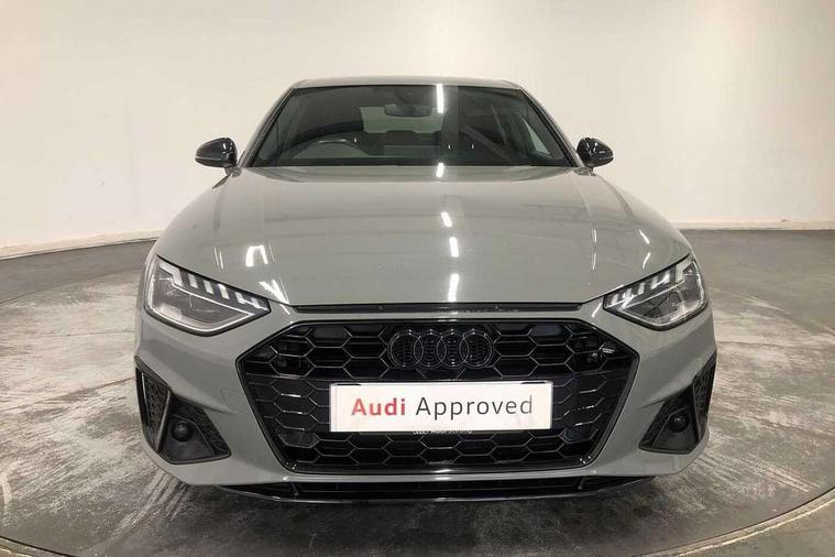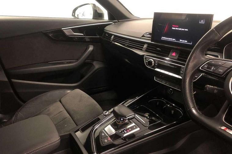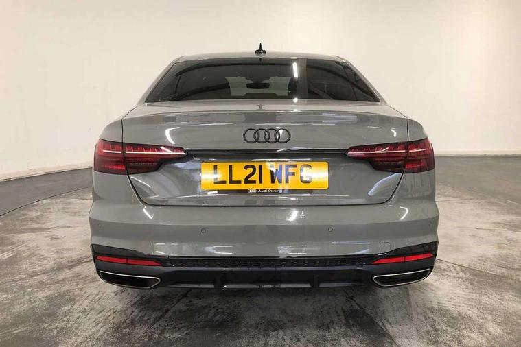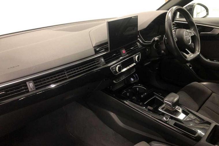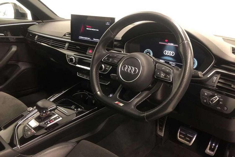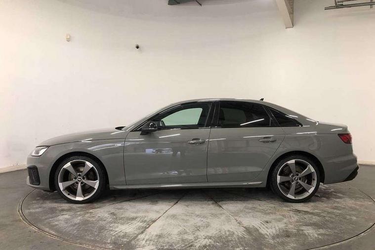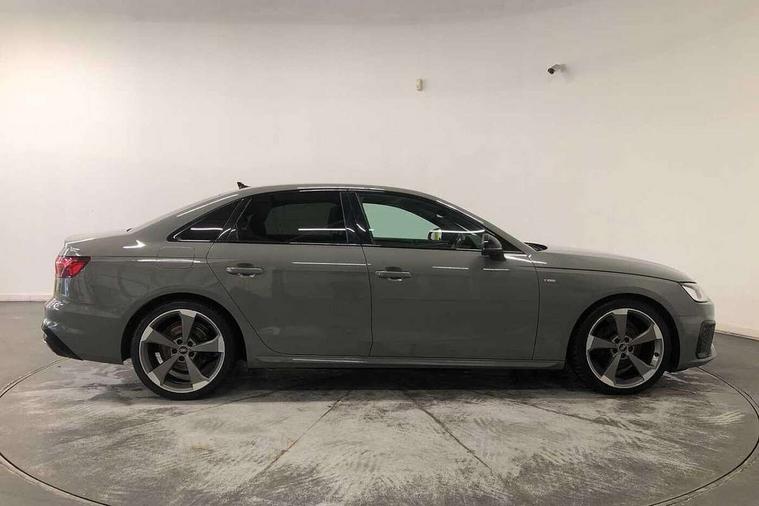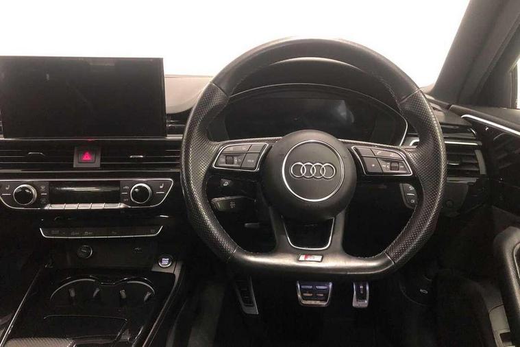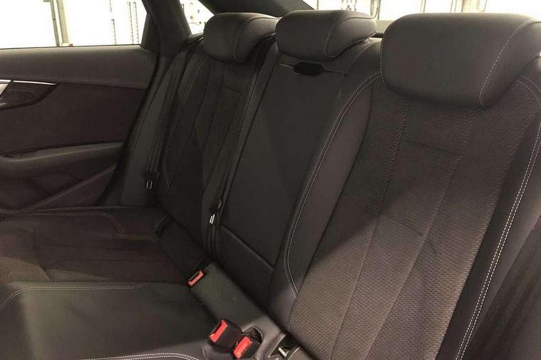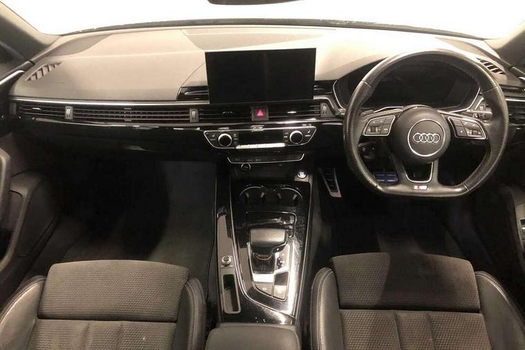 Audi connect safety and service (e-call), Audi drive select, Audi parking system plus with front and rear sensors, Audi smartphone interface, Audi virtual cockpit, Automatic start-stop system with coasting functionality and efficiency programme, Bluetooth interface, Electric boot lid release, Electromechanical power steering, MMI Navigation plus with MMI touch includes 10.1" high resolution colour MMI display, 3D map, Rear view camera, Voice control system, Sports suspension lowered by 23mm, 2 USB charging ports, 8 passive loudspeakers, DAB digital radio reception, Auto dimming rear view mirror, Body colour door handles, Body colour front spoiler lip, Body colour side sill trim, Electrically folding auto dimming/adjustable/heated door mirrors with LED side indicators and kerb view function for passenger side, Grained matt black side air inlets with matt aluminium silver inlay, High beam assistant, LED headlights with LED rear lights + dynamic rear indicators + headlight adjustment and high beam, turning light + LED daytime running lights, Matt aluminium silver tailpipe trim, Rain and light sensors, S Line badges on the front wings, S line front and rear bumpers with side skirts, S Line rear diffuser in matt titanium black with trim strip in matt aluminium silver, Windscreen with acoustic glazing, 4 way electric lumbar support for driver and front passenger, 40/20/40 split folding 3 rear seat bench in 3 parts with rear centre armrest, Black cloth headlining, Black perforated leather gearknob, Contrast stitching on seats, steering wheel and gear lever gaiter, Deluxe 3 zone electronic climate control, Door sill trims with aluminium inlay, Front and rear head restraints, Front centre armrest, Heated front seats, Illuminated door sill trims with S logo, ISOFIX child seat mounting and top tether, Manual seat adjustment, Stainless steel pedals and foot rest, Tool kit, LED Interior light pack - A4/S4, Titanium black styling pack - A4 Saloon, 3 rear seatbelts, 6 airbags - Driver, front passenger, curtain and side windows, Electronic Stabilisation Control (ESC) including ABS, ASR and EDL, Hill hold assist, Multi collision brake assist, Pop-up bonnet for pedestrian protection, Pre sense city, Seatbelt monitoring, Warning triangle and first aid kit, Anti theft alarm, Anti theft wheel bolts, Keyless Go, Piano black finish inlay, 19" 5 arm rotor design alloy wheels titanium matt look, Tyre repair kit,