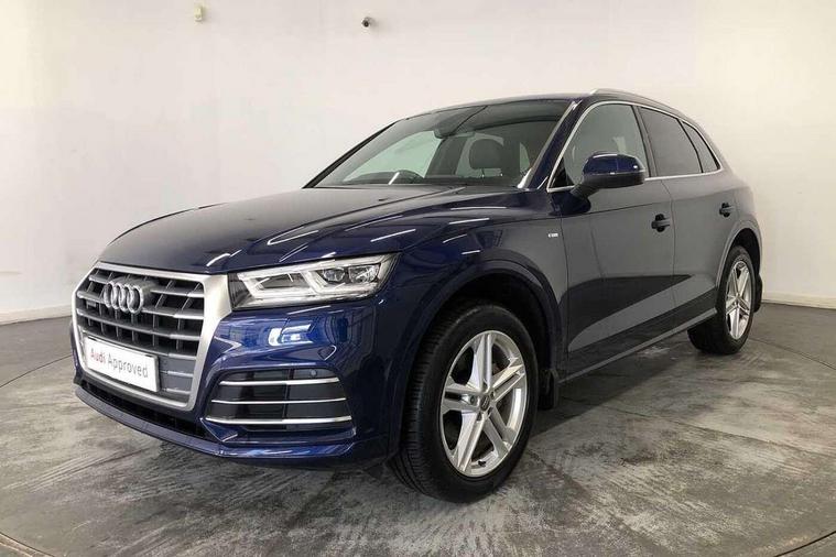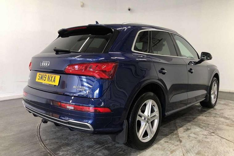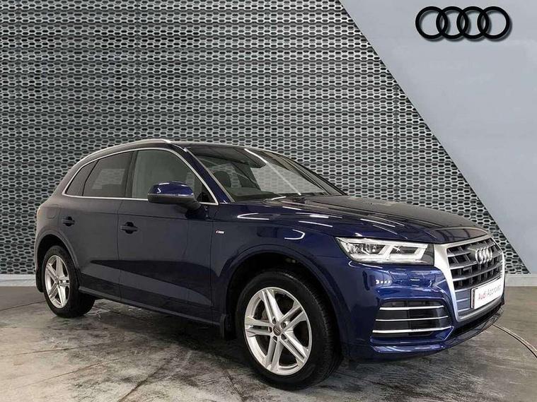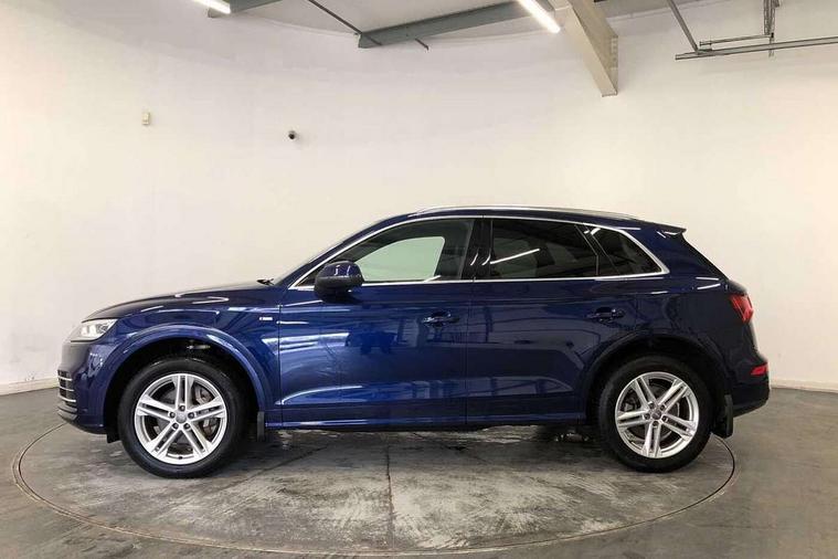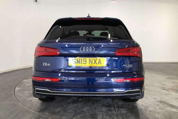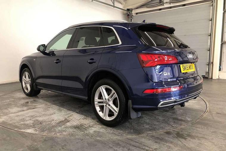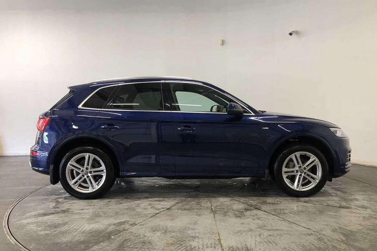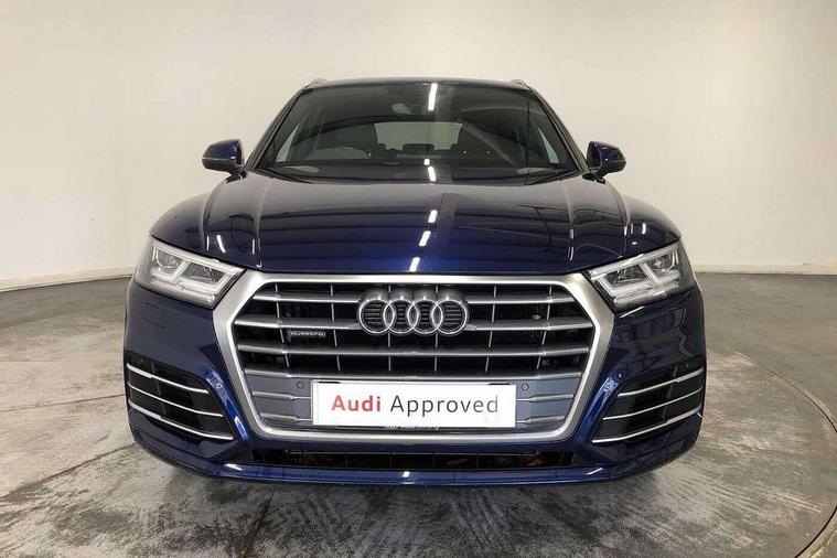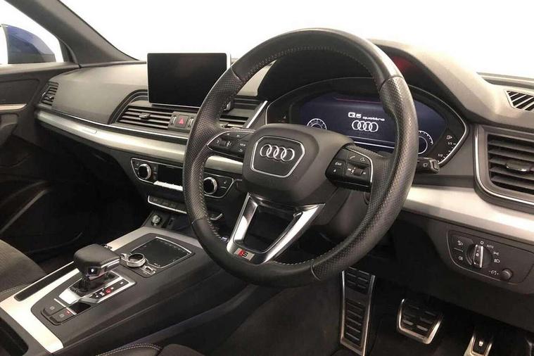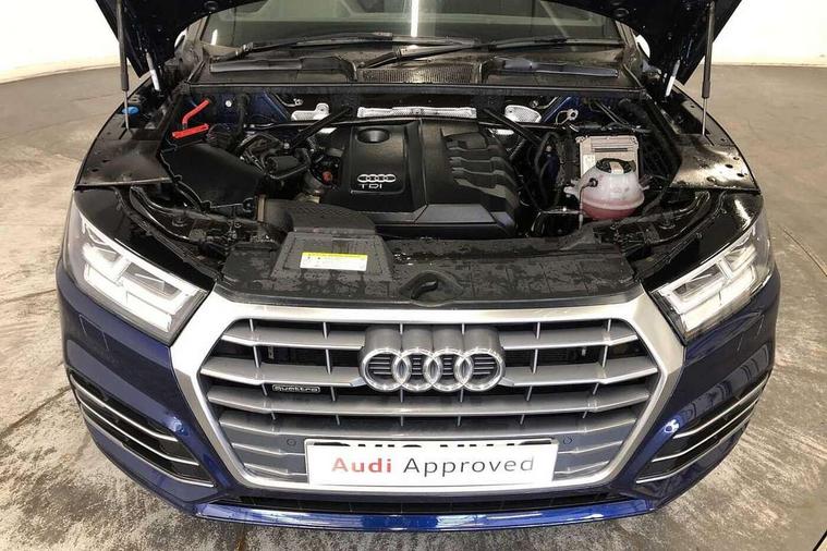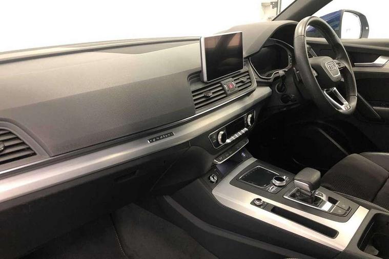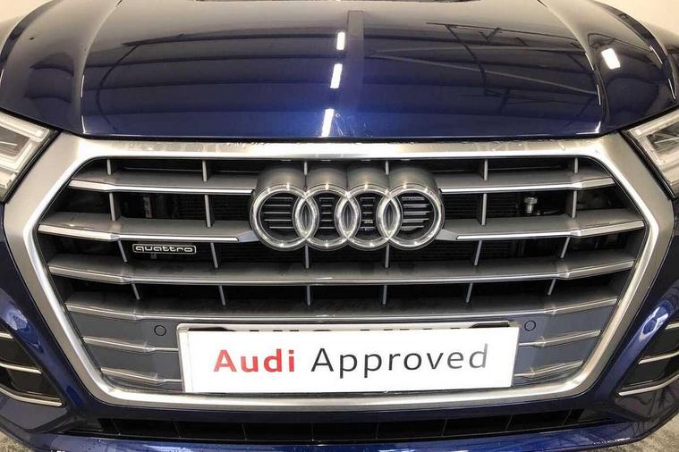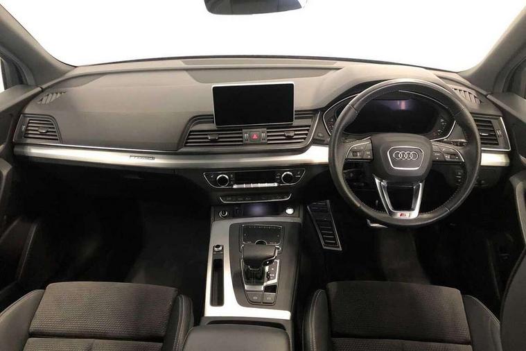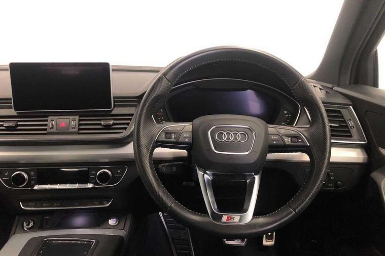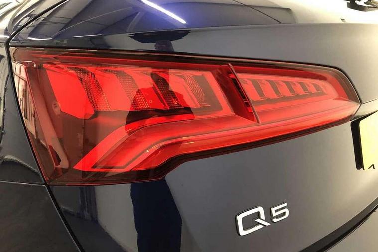 7" Colour driver information system, Audi drive select, Audi parking system plus with front and rear sensors, Audi smartphone interface, Electro - mechanical power assisted steering, MMI Navigation, Mobile telephone preparation - bluetooth interface, Power tailgate, Service interval indicator, Voice control system, Diesel particulate filter, 2x SD card slot, CD player, DAB Digital radio, MMI radio plus with 7" colour MMI screen and MMI controller, Acoustic windscreen, Air inlets in matt titanium black with blades in matt aluminium silver, Aluminium roof rails, Auto dimming rear view mirror, Automatic headlight levelling, Body colour bumpers, Body colour door mirrors, Body colour rear diffuser with matt aluminium silver surrounds, Body colour S Line side skirts, Body colour underbody protection, Chrome exhaust tailpipe, Front and rear electric windows, High beam assistant, Light and rain sensor for auto activation of lights and windscreen wipers, Loading sill protector in stainless steel, Privacy glass with front acoustic glazing, Rear wiper, S Line badges on the front wings, S Line front and rear bumpers/side air inlets and diffuser, S Line rear spoiler, Twilight grey matt radiator grille with matt aluminium horizontal chrome struts, 2 x USB charging port with aux input socket, 3 rear headrests, 3 zone climate control, 40:20:40 split folding rear seat with rear centre armrest, Black cloth headlining, Contrast stitching on seats, steering wheel and gear lever gaiter, Front centre armrest, Front sport seats with S embossed logo, Front/rear floor mats, Height adjustable front head restraints, Illuminated door sill trims with S logo, ISOFIX child seat mounting and top tether, Luggage compartment carpet, Perforated leather gearknob, Removable luggage compartment floor, Stainless steel pedals, Sunvisors with vanity mirrors, Tool kit, Trunk roller cover, High gloss pack - Q5, Non Smokers pack, 3 point seatbelts on all seats, 6 airbags - Driver, front passenger, curtain and side airbags, Electromechanical parking brake, Electronic stabilisation control including ABS, ASR and EDL, Front passenger airbag deactivation, Hill descent control, Hill hold assist, Multi collision brake assist, Pop-up bonnet for pedestrian protection, Pre sense city, Seat belt force limiter, Seatbelt monitoring, Tyre pressure warning, Warning triangle and first aid kit, Anti theft alarm, Anti-theft wheel bolts, Keyless Go access/ignition system, Remote central locking,