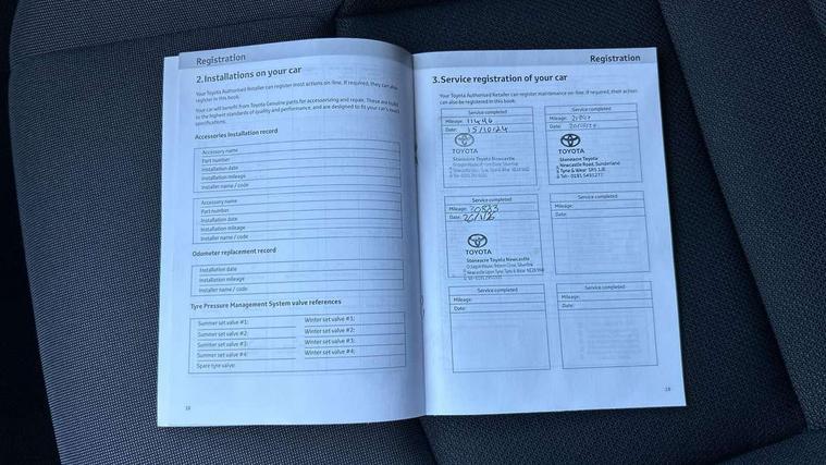 12.3" Digital Combimeter, 12.3" multimedia display screen, 4 rear parking sensors, Acceleration suppression at low speed, Adjustable speed limiter, Blind spot monitor, Bluetooth connectivity, Built-in and cloud navigation, Colour multi information display, Digital speedometer, Digital tachometer, eCall emergency call system, Electric power steering, Emergency driving stop system, Emergency steering assist, Front parking sensors with auto braking, Hybrid system indicator, I/P center cluster X, Instrument finish panel, Intelligent adaptive cruise control, Intelligent parking sensors (objects and vehicle), Lane Departure Alert (LDA) switch on steering wheel, Lane departure alert with steering control, Lane trace assist, Memory on speed limiter, MyT connected services, Power tailgate, Pre collision system with intersection detection, Proactive driving assist (PDA), Push button tailgate release, Rear cross traffic alert, Remote boot door release in cabin, Reversing camera, Reversing camera display in audio screen, Road sign assist - RSA, Safe exit assist, Smart entry and push button start, Smart voice assist, Start and stop, Static guide lines on reversing camera, Toyota Smart Connect multimedia system with wireless Smartphone integration incl Apple CarPlay, Voice recognition, Wireless phone charger, Electric accelerator pedal, Front and rear stabilizers, Vehicle Stability Control (VSC), 6 speakers, Aux-in connector, DAB Radio (Digital Audio Broadcasting), Front USB Type-C connector, Rear USB Type-C connector, Road events, USB connector integrated with radio and CD player, Anti-jam protection on power windows, Auto dimming rear view mirror, Auto high beam, Auto up and down function on all power windows, Auto wipers, Automatic headlights, Automatic headlights cut-off, Automatic rear flashing hazard lights, Automatically retractable door mirrors, B - Pillar in Black, Black centre air vent, Black painted insert on boot door, Black side air vents, Black wheel arch mouldings, Body colour door handles, Body coloured front bumper, Body coloured rear spoiler, Body coloured roof, Clear headlights design, Door scuff plates, Electric heated door mirrors, Emergency brake-light signal (EBS), exhaust tail pipe and diffuser, Flush front and rear door handles, Follow me home headlights, Front and rear power windows, Fuel caution label, Gloss black door belt moulding, Grained front side grille, Grained lower front grille, Grained rear bumper extension, Gunmetal surround on lower front grille, Headlight cut off reminder, LED daytime running lights, LED fog lights, LED High mounted stop light, LED rear brake lights, LED rear combination lights, LED reverse light, Manual headlight levelling, Noise reduction layer on windscreen, Power adjustable door mirrors, Pre wiring for towing hook, Privacy glass, Puddle lights, Rain sensor, Rear bumper with gunmetal insert, Rear fog lamps, Rear side wing doors, Rear tailgate, Rear window defogger, Rear window wiper, Reflective LED headlights, RHD aiming, Satin chrome centre air vent surrounds, Satin chrome insert on centre air vents, Satin chrome insert on side air vents, Satin chrome side air vent surrounds, Silver large centre cap surrounds, Standard Front Side Grille, Standard roof, Turning signal integrated in door mirrors (LED), UV-filter on driver and passenger windows, UV-filter on rear windows, Variable front intermittent wipers, Wing liner front with sil rear without sil, 12v power outlet - front, 2 rear coat hooks, 3 bench rear seats in 2nd row, 3 rear headrests, 3 spoke synthetic leather steering wheel, 60/40 split folding 2nd row rear seats, Adjustable rear headrests, Ambient lighting on front doors, Assist grips front and centre pillar, Audio and telephone switches on steering wheel, Boot light, Clean air filter, Cloth upholstery with grey stitching, Cover front console box, Dark grey interior door handles, Door Edge Protection Film, Driver and front passenger personal light, Driver and front passenger Whiplash Injury Lessening seats, Dual zone automatic air conditioning, Fabric door trim, Floor mats - border/stitching, Front console box, Front cupholders, Front door pockets, Front headrests, Front room light, Front sports seats, Glovebox with internal light, Hard tonneau cover, Heated driver and front passenger seats, Hooks for luggage holding net, Hybrid key cover, Illuminated entry system, ISOFIX child restraint system, LED Overhead Console light, Light on driver sun visor, Light on passenger sun visor, Luggage floor board with protection mat, Manual telescopic steering wheel, Manual tilt steering wheel, Manually height adjustable driver seat, Manually height adjustable front passenger seat, Manually reclining driver seat, Manually reclining front passenger seat, Manually sliding driver seat, Manually sliding front passenger seat, Mat Fitment, Microphone on front personal light, Mirror on driver sun visor, Mirror on passenger sun visor, Multimedia switches on steering wheel, Pollen air filter with deodorising odour eliminator, Power adjustable lumbar support on driver seat, Rear door cup holder, Rear door pockets, Rear passenger personal lights, Remote air conditioning, Single compartment glovebox, Single front passenger seat, Slow opening on lower glovebox, Synthetic leather gear shift knob, Voice recognition switch on steering wheel, 3x3 point rear seat belts, ABS+EBD+Brake assist, Driver and passenger side airbag, Driver knee airbag, Electronic parking brake, Front and rear seatbelt reminder, Front passenger airbag on/off switch, Front to front oncoming car and motorbike daytime detection, Hill start assist control (HAC), Pre collision system with pedestrian, cyclist and motorbike day detection, Pre-tensioners and force limiters, Rear door child safety locks, Rear seat reminder alert, Supplemental Restraint System (SRS) 8 airbags: Driver & passenger's airbags, dual side curtain airbags, side impact airbags, front centre airbag, Toyota safety sense with ove