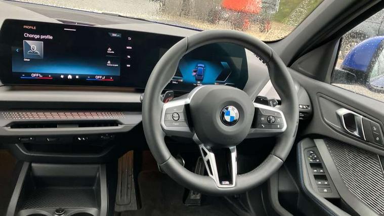 Active guard plus, Attentiveness assist, Bluetooth / WiFi interface for wireless connection of mobile terminal devices and audio streaming, BMW ConnectedDrive online services, BMW Live cockpit plus, BMW Teleservices, Check Control warning system for monitoring of lights and door/luggage compartment open warning, Eco pro mode, Electric power steering with Servotronic steering optimised at all speed ranges, Evasion assistant, Flat airvents in instrument panel with adjustable slats, Front and rear parking sensors, Front axle single joint with specific axle kinematics to minimise drive influences on steering + provide increased rigidity agile driving behaviour, Gearshift time display in manual mode, Integrated owners handbook, Left turn warning with brake function, My modes (Personal / Efficient / Sport), Oil sensor for level and grade, On board computer, Optimum shift indicator, Park assist including reversing assistant, lateral parking aid and reversing assist camera, Personal e-SIM, Personal Profile, Pull away assistant, Rigidly mounted rear subframe - Multi link construction with separate spring / damper configuration and excellent driving characteristics, Speed limit Info including no-overtaking indicator, Speed limiter, 49 litre fuel tank, Aluminium lightweight construction, Anti roll bar front and rear, Balancer shaft, Double VANOS twin scroll turbocharging system, Drive Performance Control, Electronic differential lock, Electronic selector lever, High precision injection, M Adaptive suspension, Petrol Particulate Filter, Steptronic transmission with double clutch, Twin tube gas filled shock absorbers with degressive characteristic curve, VALVETRONIC engine management, DAB Digital radio, Auto dimming rear view mirror, Automatic windscreen wipers and automatic headlight, Body colour door handles, Body colour roof trims, Chrome 'M' logo side designation, Chrome exhaust twin tailpipes round 90mm in left, Chrome kidney grille frame with Satin Aluminium struts, Direction indicator side lights in exterior mirrors, Electrically adjustable exterior mirror with mirror adjustment switch on drivers armrest and aspheric on driver side, convex on passenger side, Exterior M sport design elements, Fading support, Folding side mirrors with auto dimming/folding wing mirrors with auto dimming, Follow me home headlights, Front and rear bumper system with replaceable deformation elements, Front and rear electric windows with open and close fingertip control, anti trap facility and comfort closing, Front bumper panel with M specific design in vehicle colour with inserts in black high gloss, Front door sill finishers in black plastic with M designation in metallic look, Green tinted heat protection glazing, Heated rear window, High gloss black exterior mirrors, High gloss shadowline window frame, Recess cover mirror frames and B/C pillar embelisher trim, High level third brake light, Integrated front windscreen with washer jets, LED daytime running lights, LED eyebrow turn indicators, LED front fog lights, LED Headlights, Lightweight engineering, Matt black air guide grilles, Matt black wheel arch trim, Model badge on tailgate right, Nearside reverse light in rear light cluster, Preparation for high beam assistant, Rain sensor, Rear bumper panel with M-specific design in vehicle colour with inserts in black high gloss, Rear fog lights, Rear side wing doors, Rear window wiper, Shark fin antenna, Side sill covers with M specific design in body colour, Trailer stabilisation logic, Visible VIN plate, Welcome lighting, 12V power socket in front centre console with blanking plug, 3 rear seat head restraints, 3 seat bench in 2nd row, 3 spoke sports leather steering wheel with black leather and stitching, pearl chrome decorative finish, specific M Badge, Anthracite front and rear floor mats, Anthracite headlining, Black boot net with lashing eyes, Cargo function on 2nd seat row, Child seat ISOFIX attachment for two outer rear seats and front passenger seat with anchorage points, Conditioned based service, Driver and front passenger backrest net on rear, Driver and front passenger seat heating, Driver side folding compartment in instrument panel, Folding rear clothes hook, Footrest and pedals in black plastic, Four grab handles integrated in roof lining, Front and rear door pockets with bottle holders, Front and rear side armrest integrated into door trim, Front armrest with storage compartment, Gearshift paddles on steering wheel, Glove compartment, Height adjustable front head restraints, Luggage compartment for bag hooks on left and right, foldable luggage compartment liner and four lashing eyelets, Manual adjust steering wheel, Multi-function controls for steering wheel, Rear seat backrest with manual 60:40 split folding with 3 top tether clips integrated on rear of seat panels, Single front passenger seat, Storage compartment in centre console, Storage compartment in luggage compartment, Stowage of the parcel shelf in luggage compartment trim, Sun visors with vanity mirrors and insert tab, Two front centre console cupholders, Type C two USB ports in rear centre console, Upper retaining strap integrated into backrest rear panels, Connected pack professional - 1 Series, Interior lights pack - 1 Series, M Sport exterior styling aerodynamics pack - 1 Series, 2 tone horn, 3 point seatbelts on all seats, front pyrotechnic belt tensioners, stopper and belt force limiters, rear coded belt buckles, Airbags - Front driver/passenger, front and rear curtain head protection, front side, manual deactivation of front passenger airbag, Anti lock braking system (ABS) with brake assist, BMW emergency call, Brake drying, Braking readiness, Child proof locking system in rear door, Comfort modes, Cornering brake control, Crash sensor activating of airbags, Unlocking doors, hazard warning lights, interior light, safety battery terminal, Driver and front passenger seat belt security check, Dynamic stability control + (DSC+), Dynamic
