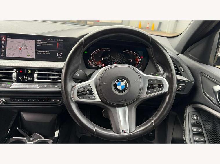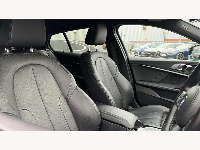 Active guard plus, Attentiveness assist, Bluetooth / WiFi interface for wireless connection of mobile terminal devices and audio streaming, BMW ConnectedDrive online services, BMW Teleservices, Check Control warning system for monitoring of lights and door/luggage compartment open warning, Cruise control with brake assist, Eco pro mode, Front axle single joint with specific axle kinematics to minimise drive influences on steering + provide increased rigidity agile driving behaviour, Integrated owners handbook, Lane departure warning system, Oil sensor for level and grade, On board computer, Optimum shift indicator, Personal Profile, Pull away assistant, Rigidly mounted rear subframe - Multi link construction with separate spring / damper configuration and excellent driving characteristics, Speed limit Info including no-overtaking indicator, Speed limiter, Aluminium lightweight construction, Anti roll bar front and rear, Balancer shaft, Double VANOS twin scroll turbocharging system, Drive Performance Control, Electronic differential lock, High precision injection, M sport suspension, Petrol Particulate Filter, Twin tube gas filled shock absorbers with degressive characteristic curve, VALVETRONIC engine management, DAB Digital radio, Auto dimming rear view mirror, Automatic headlight beam throw control, Automatic windscreen wipers and automatic headlight, Body colour door handles, Body colour mirror caps, Body colour roof trims, Chrome 'M' logo side designation, Chrome exhaust twin tailpipes round 90mm in left, Chrome kidney grille frame with Satin Aluminium struts, Direction indicator side lights in exterior mirrors, Fading support, Folding side mirrors with auto dimming/folding wing mirrors with auto dimming, Follow me home headlights, Front and rear bumper system with replaceable deformation elements, Front and rear electric windows with open and close fingertip control, anti trap facility and comfort closing, Front door sill finishers in black plastic with M designation in metallic look, Green tinted heat protection glazing, Heated, electrically adjustable exterior mirror aspheric on driver side, convex on passenger side, High gloss shadowline window frame, Recess cover mirror frames and B/C pillar embelisher trim, High level third brake light, Integrated front windscreen with washer jets, LED daytime running lights, LED eyebrow turn indicators, LED front fog lights, Lightweight engineering, Matt black air guide grilles, Matt black wheel arch trim, Model designation on electric bootlid, Nearside reverse light in rear light cluster, Preparation for high beam assistant, Rear fog lights, Rear side wing doors, Rear window wiper, Shark fin antenna, Trailer stabilisation logic, Visible VIN plate, Welcome lighting, 12V power socket in front centre console with blanking plug, 3 rear seat head restraints, 3 seat bench in 2nd row, 3 spoke sports leather steering wheel with black leather and stitching, pearl chrome decorative finish, specific M Badge, Ambient interior lighting, Anthracite headlining, Black boot net with lashing eyes, Cargo function on 2nd seat row, Child seat ISOFIX attachment for two outer rear seats and front passenger seat with anchorage points, Conditioned based service, Driver and front passenger seat heating, Folding rear clothes hook, Four grab handles integrated in roof lining, Front and rear door pockets with bottle holders, Front and rear side armrest integrated into door trim, Front armrest, Front sports seats, Glove compartment, Height adjustable front head restraints, Luggage compartment for bag hooks on left and right, foldable luggage compartment liner and four lashing eyelets, Manual adjust steering wheel, Multi-function controls for steering wheel, Single front passenger seat, Storage compartment in centre console, Sun visors with vanity mirrors and insert tab, Two front centre console cupholders, Two zone automatic air conditioning, Velour floor mats, Additional interior lighting pack - 1 Series, BMW live cockpit professional pack- 1 Series, Connected pack professional - 1 Series, Interior lights pack - 1 Series, M Sport exterior styling aerodynamics pack - 1 Series, 2 tone horn, 3 point seatbelts on all seats, front pyrotechnic belt tensioners, stopper and belt force limiters, rear coded belt buckles, Airbags - Front driver/passenger, front and rear curtain head protection, front side, manual deactivation of front passenger airbag, Anti lock braking system (ABS) with brake assist, BMW emergency call, Brake drying, Braking readiness, Child proof locking system in rear door, City braking function, Comfort modes, Cornering brake control, Crash sensor activating central locking release, hazard warning lights, fuel cut off, interior lighting + activation of safety battery terminal clamp, Driver and front passenger seat belt security check, Dynamic stability control + (DSC+), Dynamic Traction Control - DTC, Electrically operated hand brake including automatic hold function, Front and rear disc brakes, Seatbelt warning, Side impact protection, Tyre pressure monitoring system, Warning triangle and first aid kit, Central locking switch for all doors, fuel filler cap and luggage compartment, Deadlocking function system to all doors, Drive away locking system on all doors and luggage compartment with de-activated in iDrive settings, Locking wheel bolts, Remote control with integrated key with High-gloss Black inlay and M designation and 1 button for open/ close lock, window, open luggage compartment, Start/stop button illuminated in centre console with keyless engine start and auto start stop deactivation button, Thatcham Cat.1 alarm and immobiliser, Wheel slip limitation close to the actuator (ARB), Contrast stitching on instrument panel, Electrically powered 12V compressor, Reduced rolling resistance tyres,