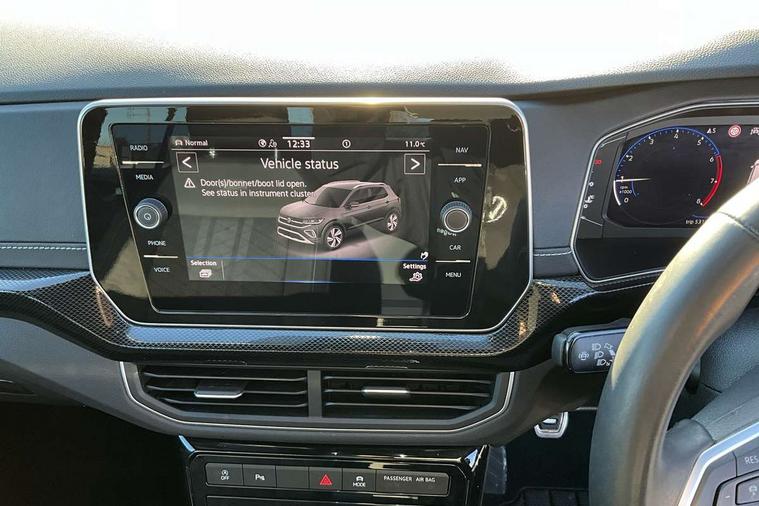 'Lights On' Reminder warning buzzer, 10.25" Digital cockpit pro, Advanced driver attention and drowsiness monitor, Blind spot monitoring, Car information display, Driver profile selection including ECO function, Dynamic road sign display, E-Sim card for online connectivity, eCall emergency call system, Front and rear parking sensors, Front assist, forward collision warning, autonomous emergency braking and speed limiter, Low washer fluid warning light, Multifunction computer with visual gear change recommendation for fuel consumption, Multifunction front facing camera for distance control, Operating permit alteration, Power assisted steering, Predictive adaptive cruise control, Preparation for navigation system with media and internet package, Preparation for We connect and We connect plus, Semi-automated driving assistance, travel assist including lane keeping system Lane Assist and emergency assisst, Speedo, rev counter, electronic odometer, trip, service interval display, exterior temperature and fuel gauge, Warning sound and light for doors and tailgate open, Warning sound and light for front seatbelts unfastened, Wireless Car net app connect with Apple CarPlay, combined functionality of Apple CarPlay/Android Auto and MirrorLink, Wireless charging, Misfuel prevention device, Start-stop system with battery regeneration (recuperation - energy recovery during braking), 2 USB C ports in front, 2 USB charging sockets on the centre console in the rear charging capacity upto 45W, Diversity antenna for FM reception, Music playback - MP3, WMA and AAC files, Radio, Automatic dimming interior rear view mirror, Automatic hazard lights activation under emergency braking, Automatic headlight control with LED separate daytime running light and coming home and leaving home feature, Body colour door handles, Body colour door mirrors, Body coloured bumpers, Dynamic headlight range control with self adjusting whilst driving, Electric folding door mirror, adjustable, heated with front passenger exterior mirror lowering function, Exterior mirrors convex on the left and aspherical on the right, Front and rear electric windows, Front door sill protectors with R-Line logo, Galvanised body, Heat insulating and laminated safety glass windshield, Heat insulating darkened glass in side and rear windows, High Beam Assist, automatic sensing for switching between dipped and main beam, LED rear combination lights, LED third brake light, Lower door sills and door pillars in black, Privacy glass for rear side windows and rear window, Rain sensor, Rear fog light on one side, reversing light on both sides, Rear side wing doors, Rear window aerial, Rear window wiper with intermittent control, Reflectors in all doors, Scuff plates, Tailgate with integrated roof spoiler, 12V Accessory socket in centre console, 2 Front and rear reading lights incorporating LED technology, 3 rear head restraints, 3 seat bench in 2nd row, 60/40 split folding rear seat backrest, Air care climatronic 2 zone air conditioning system, Ambient lighting, Brushed stainless steel pedals, Chrome plated radiator grille inserts, air vent surrounds and light switch surrounds, Cloth upholstery, Comfort front sport seats, Door and side trim panel, Drawer under drivers seat, Driver and front passenger sunvisor with vanity mirror, Dust and pollen filter, Front + rear carpet mats, Front centre armrest with storage compartment, Front footwell illumination, Front seat back storage pockets, Glove compartment door with light, Heated front seats, Heating and fresh air system with 4 stage blower, Height/reach adjust steering wheel, Instrument lighting white adjustable panel illumination, Interior light with switch off delay and dimmer, Isofix anchors for child seats on outer rear seats and front passenger seats, Leather gearshift handle, Leather wrapped multifunction steering wheel, Luggage compartment floor, Luggage compartment lighting, Manual front seats with height adjustment, Padded dashboard, Removable luggage compartment cover, Single front passenger seat, Storage compartment in drivers and front passengers door, Titanium black roof lining, Unsplit sliding rear seat bench, 3 point outer rear seat belts with ECE label, 3 Point seatbelt for centre rear seat, Anti-lock Braking System (ABS) with Hydraulic Brake Assist (HBA), Automatic post collision braking system, Disc brakes in front, Disc brakes in rear, Driver and front passenger safety-optimised head restraints, Drivers and Front Passengers airbags with front passengers airbag deactivation switch, ESC with EDL and ASR (traction control), Extended and predictive pedestrian/cyclist protection, Front and rear passenger curtain airbag system including front side airbags, Height adjustable front 3 point seatbelts + pretensioners, Hill start assist, Pre crash preventive occupant protection, Proactive passenger protection system in combination with front assist, Rear door child safety locks, Rigid safety cell with front and rear crumple zones, Single tone horn, Tyre pressure loss indicator, Volkswagen roadside assistance, Alarm with interior protection, Anti theft alarm system, Electronic engine immobiliser, Remote tailgate unlocking using key fob, Titanium Black Decorative inserts - R Line, Low rolling resistance tyres,