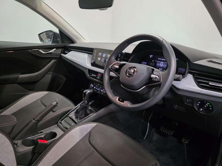 8" Digital display, Advanced driver attention and drowsiness monitor, Bluetooth, e-Call (emergency call), Front assist system, PAS, Rear parking sensors, Speed limiter, Tailgate, Traffic sign recognition, Wireless smartlink, 4 USB C ports, 8 Speakers, 8.25" Skoda infotainment display, DAB radio, Auto dimming rear view mirror, Automatic headlamp activation with Coming home and Leaving home feature, Automatic high/low beam, Body colour bumpers, Body colour door mirrors and handles, Chrome moulding around grille, Front and rear electric windows, Full LED headlights, Heated rear window, LED 3rd brake light, LED brake lights, LED daytime running lights, LED front turning lights, LED high beam, LED low beam, LED taillights, Rear LED fog light, Rear side wing doors, Rear wiper, Tinted windows, 12V socket in luggage compartment, 3 seat bench in 2nd row, Black / Grey armrest stitching, Black hotstamping, Cargo elements, Chrome inner door handles, Door inserts in satin black, Driver and passenger sun visors with vanity mirror, Dual zone climate control, Front and rear roof lights, Front centre armrest, Front head restraints, Glasses storage in roof liner, Height adjustable driver seat, Height adjustable passenger seat, Ice scraper, Illuminated glove compartment, Inner circulation control with pollen filter, ISOFIX for front passenger seat, Isofix preparation for back seats, Leather gearknob and handbrake lever, Loft cloth upholstery, Luggage net under rear parcel shelf, Manual lumbar support for front seats, Net package and top tether hooks in boot space, Pearl grey ceiling, Pocket on the back of both front seats, incl. mobile phone pockets, Single front passenger seat, Textile floor mats, Third rear headrest, Ticket holder, Top tether for front passenger seat, Umbrella in driver's door, 3x3 point rear seatbelts, ABS, Child locks, Curtain airbags and front side airbags, Disc brakes, Driver and front passenger airbags, ESP, Hill hold control, Manual leather parking brake, One tone horn, Passenger airbag switch off function, Seatbelt reminder for driver and front passenger, Tyre pressure monitoring system, Anti theft alarm system with interior monitoring, backup horn and towing protection, Anti-theft wheel bolts, Remote central locking with 2 remote folding keys, SAFE function for remote central locking, Decord pad, door inserts Kota uni,