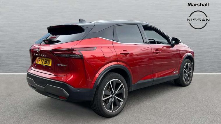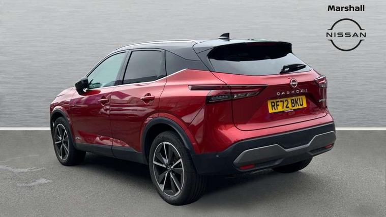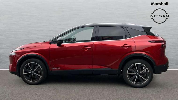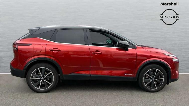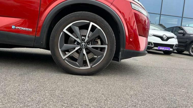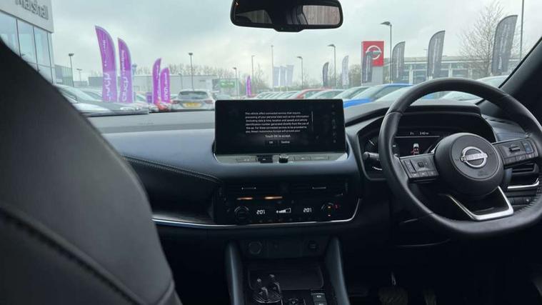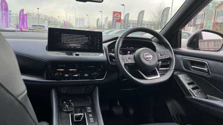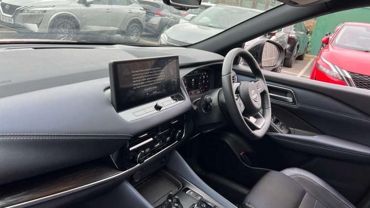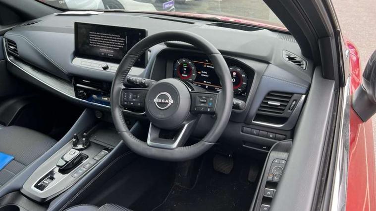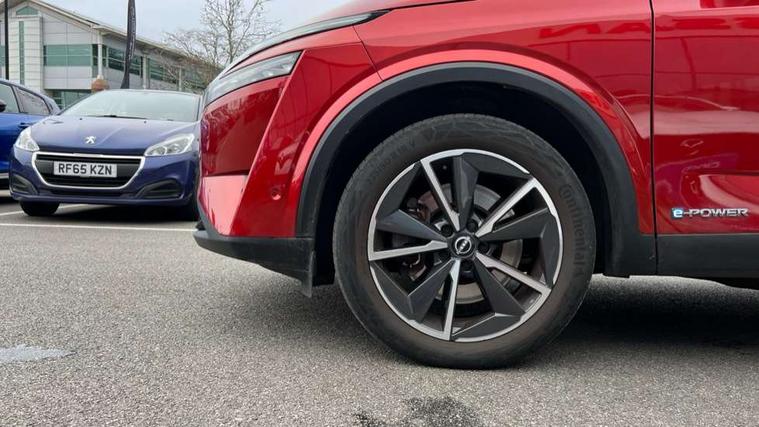 Advanced windscreen head up display, Android auto/Apple CarPlay (Wired), Blind spot warning, Drive modes (sport, normal, eco), Electric speed sensitive power steering, Emergency and breakdown call, Front and rear parking sensors, Full Digital 12.3" TFT Digital Combimeter, Google maps services - search, weather, 3D maps and Google street view, Hands free power tailgate, Idle stop/start system, Intelligent around view monitor, Intelligent Cruise control (ICC), Intelligent driver alert system, Intelligent forward collision warning, Intelligent lane intervention, Lane departure prevention, Lane departure warning system, Lane keep assist, Moving object detection, Nissan connect 12.3 inch touchscreen infotainment system, Nissan connect navigation, ProPILOT with Navi-Link, Push button starter, Rear cross traffic alert, Rear view camera, Remote control services - door locks, lights, horn and car locator, Telematics - notifications and connectivity services, TomTom live traffic services, Traffic sign recognition with legal speed adjustment, Trip computer, Virtual personal assistant and firmware over the air capability, Wireless apple carplay, Wireless charging pad, 6 speakers, AM/FM audio system with DAB, Bluetooth audio streaming, Front USB connections (Type-A and Type-C), Rear USB charging only ports (Type-A and Type-C), Auto dimming rear view mirror, Auto rear wiper when reversing, Automatic hazard signal with emergency stop signal, Body colour mirror caps, Body coloured door handles, Bodyside mouldings, Chrome side window finisher, Door handle with button, e-POWER badging, Electric auto folding door mirrors, Electrically adjustable and heated door mirrors with LED turn indicator, Follow me home headlights, Front and rear LED turning signals, Headlights auto levelling system, Intelligent auto headlights, LED daytime running lights, LED headlights with adaptive driving beam, LED rear lights, One touch front and rear electric windows with remote opening and closing, Partially body coloured bumpers, Privacy glass, Rear bumper with graphite insert, Rear reversing light (bulb lighting), Rear roof spoiler, Rear side wing doors, Rear styling plate, Shark fin antenna, Splash free rain sensing wipers, Super UV and infrared cut glass, Thermaclear heated windscreen, Three blink turn signal, 12v power socket in dashboard and luggage, 2x Rear coat hooks, 3 bench rear seats in 2nd row, 3 rear headrests, 4 folding assist grip, 6 Luggage hooks - 4 on floor, 2 on side, 60/40 split folding rear seat bench, Ambient lighting around centre console, Ambient lighting in front doors, Centre console storage tray, Chrome interior door handles, Cloth/syntech leather monoform upholstery, Dark black/blueish PVC wrapping, Dark headlining, Driver and front passenger sunvisors with illuminated vanity mirrors, Driver seat back pocket, Dual zone automatic climate control with pollen filter, e-POWER shifter, Electrically adjustable driver seat, Electrically adjustable lumbar support for driver, Front and rear door storage, Front centre console and armrest, Front cupholders x 2, Front door with bottle holders, Glovebox with light, Hard trunk cover, Heated front seats, Heated steering wheel, Height adjustable driver's seat, Height adjustable front headrests, Height adjustable passenger seat, Leather steering wheel, Luggage board system, Luggage space lighting, Manual lumbar support on passenger seat, Manually adjustable passenger (slide recline + lifter), Multifunction steering wheel, Passenger seat back pocket, Rear armrest with 2 cupholders, Rear door bottle holders, Single front passenger seat, Soft PVC kneepad, Steering wheel switches, Tilt/telescopic adjustable steering wheel, Two rear isofix child seat anchorage points with top tether, Welcome light and doors with console tray ambient lighting, Glass roof pack with roof rails - Qashqai, 3x3 point rear seatbelt pretensioners + load limiters, ABS with EBD and brake assist, Active brake limited slip, Auto hold function, Child locks on rear doors, Curtain and front side, far side airbags, Driver and passenger airbags, Driver, passenger and 2nd row rear seat belt reminder, Electronic parking brake, Front seatbelt pretensioners + load limiters, Height adjustable front seatbelts, Hill start assist, Intelligent blind spot intervention, Intelligent front emergency braking with pedestrian, cyclist recognition and junction assist, Intelligent rear automatic braking, Tyre pressure monitoring system, Vehicle dynamic control, Capless fuel filler, Engine immobiliser, Intelligent Key, Remote central door locking with deadlocking, Thatcham Cat.1 alarm, Interior instrumental panel C finisher, 19" Diamond cut alloy wheels, Tyre puncture repair kit,