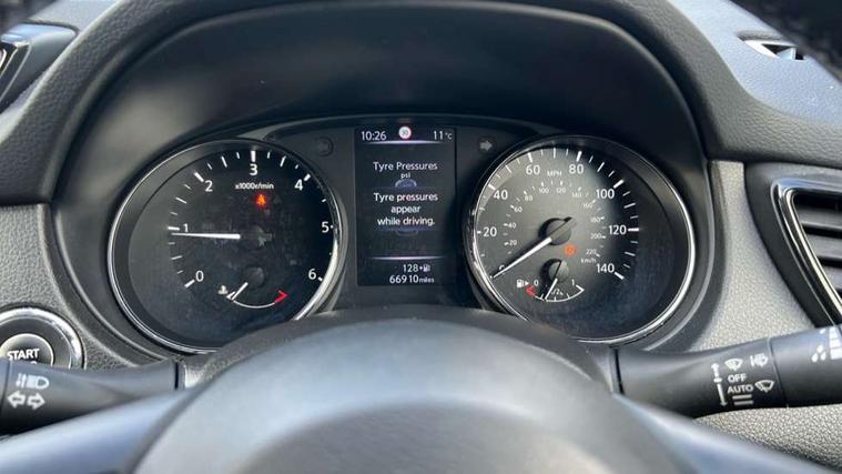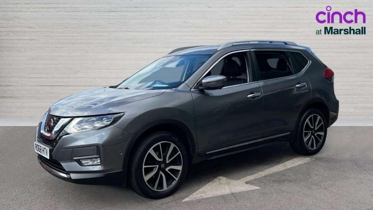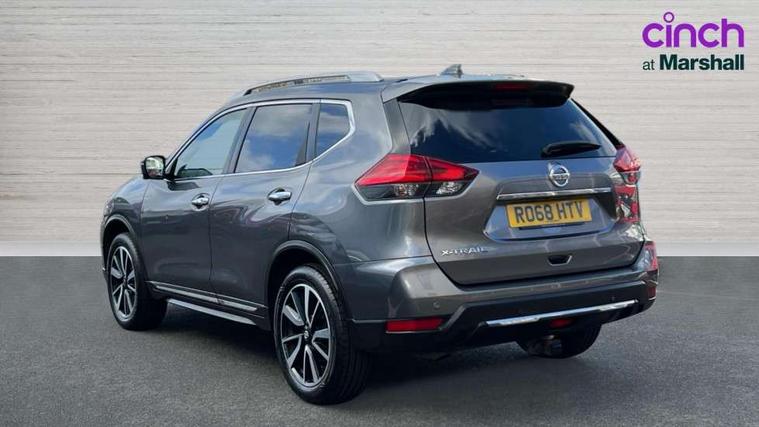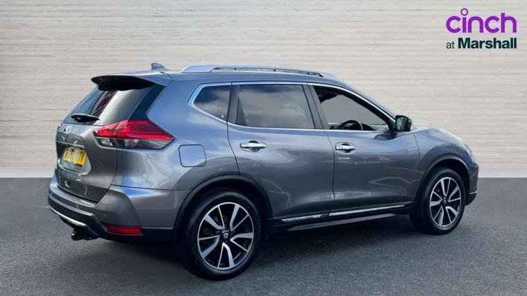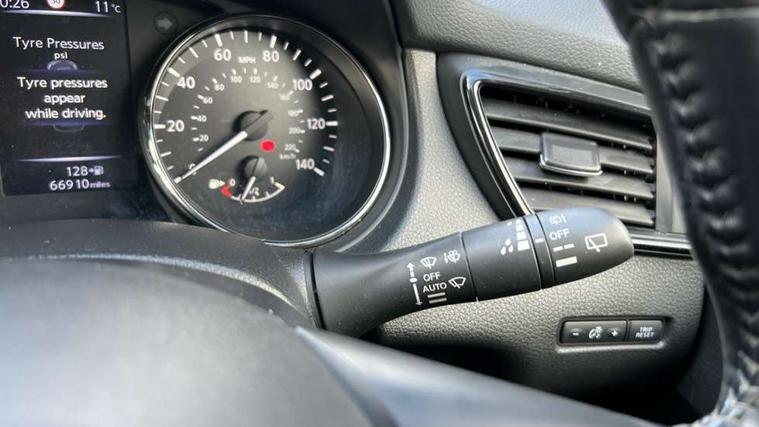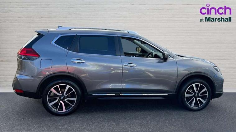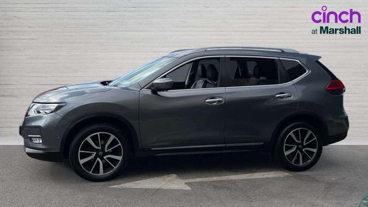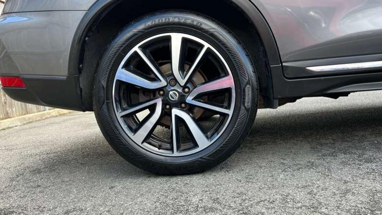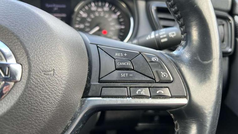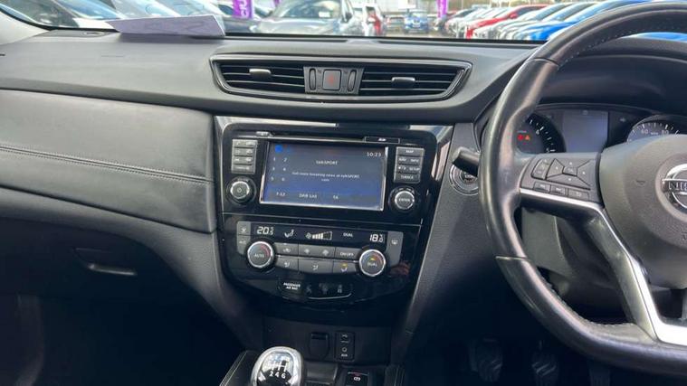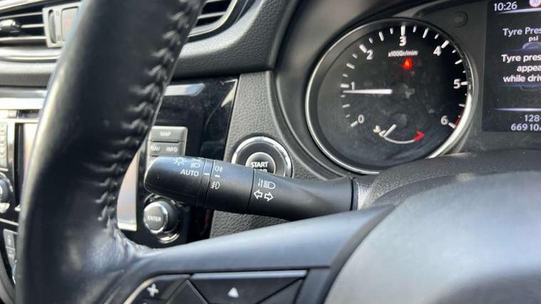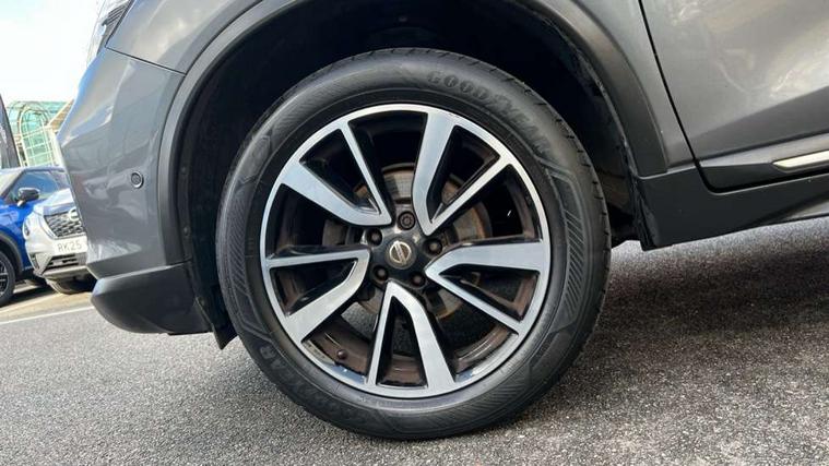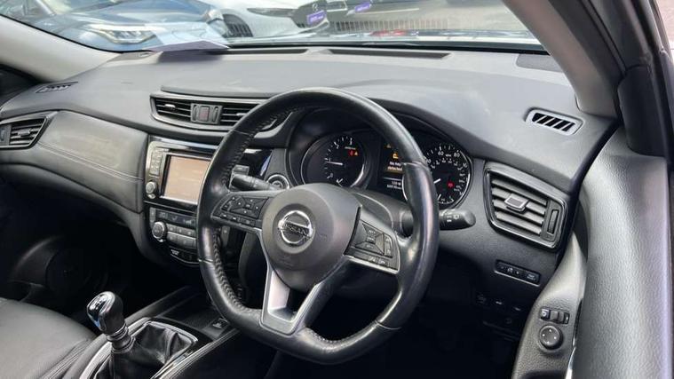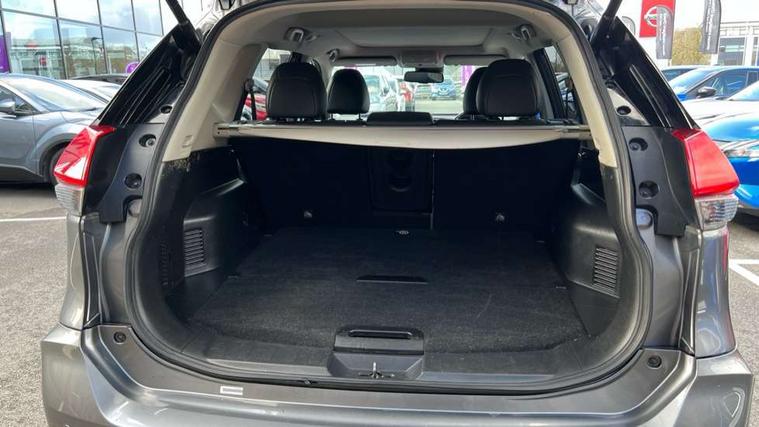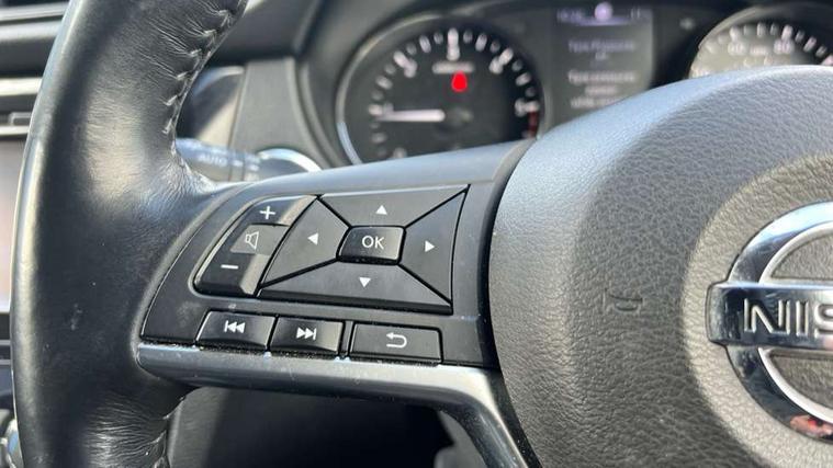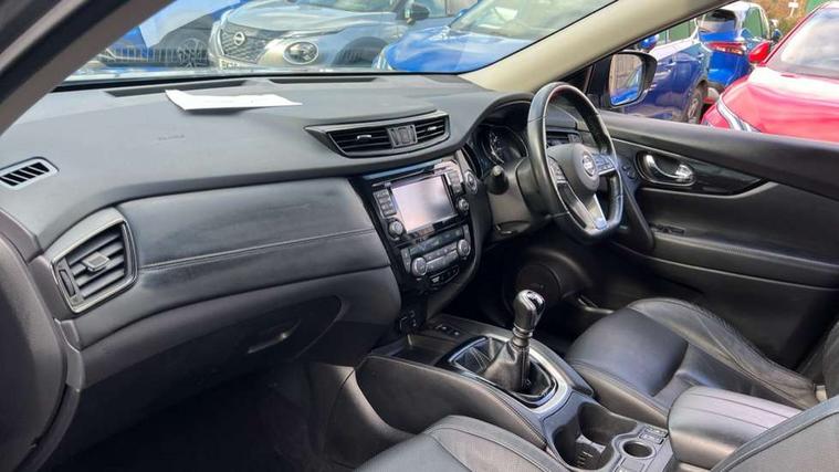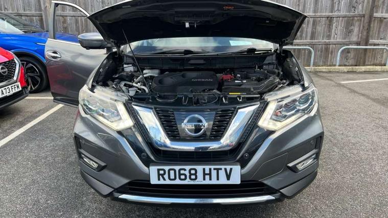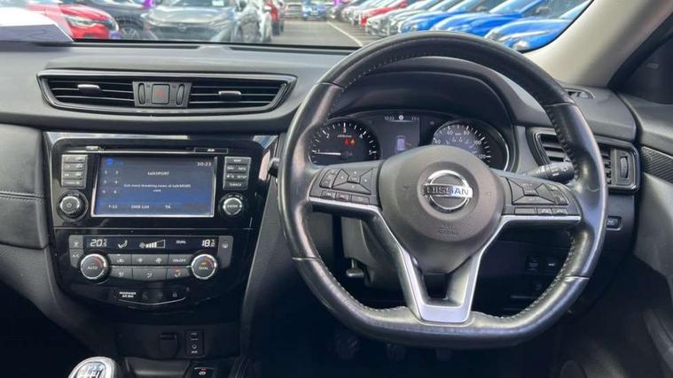 5" TFT driver information centre, Around View Monitor, Attention assist, Automatic tailgate opening, Blind spot monitoring, Bluetooth phone integration system, Cruise control + speed limiter, Engine start button, Front and rear parking sensors, Intelligent parking assist, Lane departure warning system, Moving object detection, Nissan connect sat nav system, PAS, Rear cross traffic alert, Traffic sign recognition, Trip computer, Audio remote control in steering wheel, Bose premium 8 speaker system, DAB Digital radio, Radio/CD, Smartphone apps, USB/aux input socket, Adaptive front lighting system, Auto dimming rear view mirror, Automatic headlights, Automatic rain sensing wipers, Black honeycomb front grille, Body colour door mirrors, Chrome door handles, Chrome side mouldings, Chrome window surround, Electric folding door mirrors, Electric heated door mirrors, Front and rear power windows, Front fog lights, High beam assist, LED daytime running lights, LED Headlights, Panoramic sunroof, Rear privacy glass, Satin silver roof rails, Shark fin roof aerial, 3 rear headrests, 60/40 split rear bench seat, Centre console storage box/armrest, Configurable luggage board system, Dual zone climate control, Electric adjustable front seats including height adjust, Front and rear door pockets with bottle holders, Front cupholders, Heated front seats, Heated rear seats, Heated steering wheel, Height adjustable front headrests, Individual rear reading lights, Isofix child seat attachment, Leather steering wheel and gear knob, Lumbar support, Pollen filter, Rake/reach adjustable steering wheel, Rear armrest, Synthetic leather instrumental panel inserts, Synthetic leather knee pad, 3 point seatbelts on all seats, ABS, Child locks on rear doors, Driver and passenger airbags, EBD + Brake Assist, Electronic parking brake, ESP + traction control, First aid kit, Front and rear curtain airbags, Hill hold assist, Intelligent emergency braking with pedestrian recognition, Seatbelt warning, Tyre pressure monitoring system, Warning triangle, Alarm, Immobiliser, Intelligent Key, Remote central locking, Full size spare wheel,