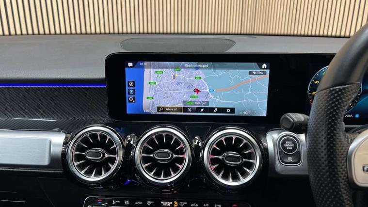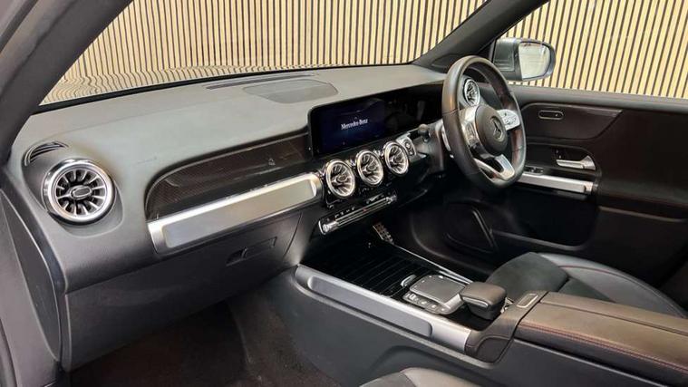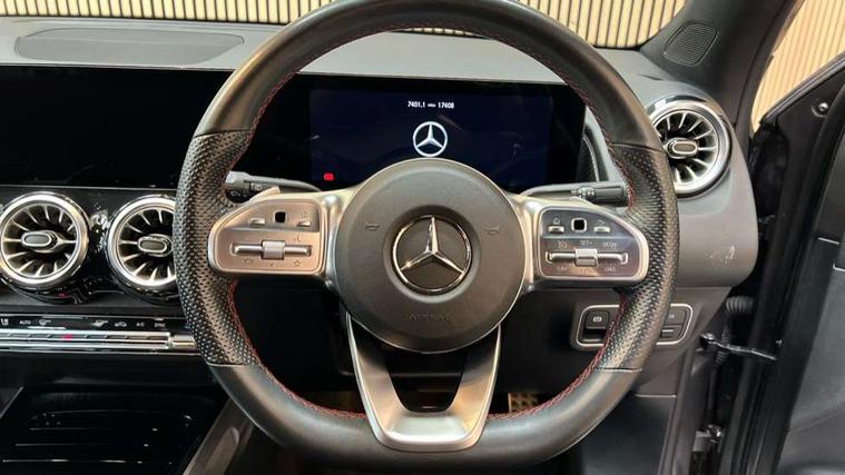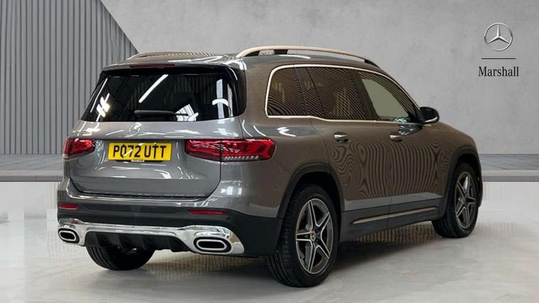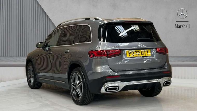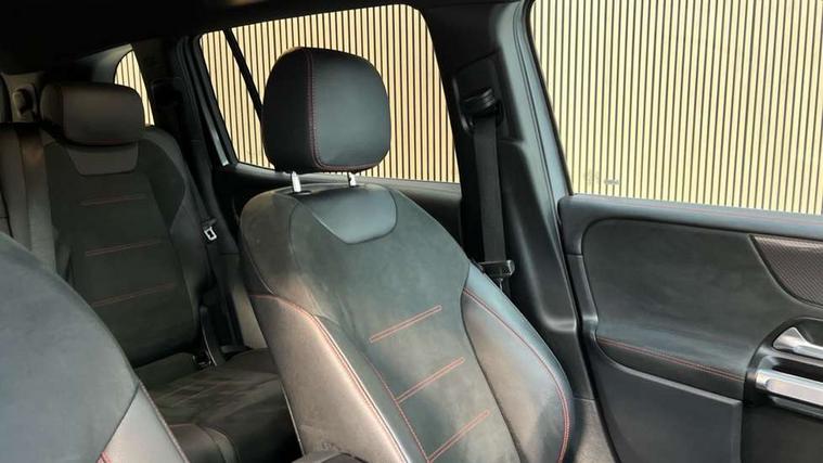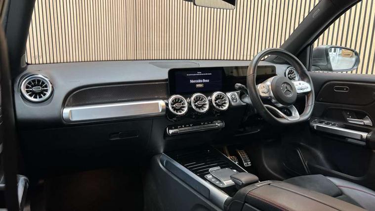 10.25" Digital instrument cluster display screen, 10.25" Digital media screen display, Active lane keeping assist, Attention assist - Monitors steering behaviour and long journey fatigue, Brake pad wear indicator warning light, Car wash mode, Cruise control with limiter, DYNAMIC SELECT with a choice of driving modes (ECO, Comfort, Sport and Individual), ECO start/stop function, Fluid level warning indicator for fuel, oil, coolant and washer fluid, Hard disk navigation, Hey Mercedes Voice activation, Lamp failure indicator, Mercedes me connect including emergency call system, accident recovery, breakdown and maintenance management, Mercedes me remote services, Outside temperature gauge, Owners manual and service booklet in English, Parameter steering system, Pre-installation of private car share, Preinstallation for parking damage notification, Radio aerial integrated into front and rear windshields, Service indicator (ASSYST), Smartphone integration with Apple CarPlay and Android auto, Speed limit assist, Trip computer in multifunction display with current consumption indicator, Comfort suspension, Rear axle multi-link, DAB digital radio tuner, MBUX multimedia system with DAB digital radio and touchpad including satellite navigation, Mercedes Benz sound system (225 W) with 10 speakers, 1 central speaker, speakers on doors, a tweeter on door, one sub woofer + boost amplifier, Pre installation for Mercedes Benz Link, USB (type C) port in front stowage compartment, USB (type C) ports (2) in stowage compartment, Adaptive brake lights, Aerial for GPS, AMG bodystyling door panels black grained with chrome plated inserts, AMG bodystyling front apron with chrome splitter, AMG bodystyling rear apron with diffuser optics and chrome trim element, AMG specific front and rear bumper including underride guard in high gloss chrome, Beltline strips and weather strip in chrome, Body coloured bumpers, Body coloured door handles with chrome insert for keyless entry, Body coloured door mirror caps, Electric adjustable and heated door mirrors with integrated LED side indicators, Exhaust system with dual flow exhaust pipes (non-functional), Front and rear electric windows, Headlamp assist automatic headlamp activation, Heated glass rear windscreen + timer control, High level LED third brake light, Interior mirror with black reading lamps and frameless, LED high performance headlamps with integrated LED daytime running lights, LED tail lamp, Polished aluminium roof rails, Privacy glass with dark tinting on rear side windows and rear window, Radiator grille with pins in chrome and single louvre with chrome insert, Rain sensor windscreen wipers, Rear fog lamp, Rear side wing doors, Rear wiper, Two visible tailpipe trim elements exhaust, 3 seat bench in 2nd row, 3 spoke multifunction sport steering wheel in nappa leather, Air conditioning - Two zone thermotronic luxury automatic climate control with display, AMG sports pedals with brushed stainless steel surfaces and black rubber studs, Artico man-made leather/Microfibre Dinamica upholstery with red contrast stitching, Automatic child seat recognition sensor, Black floor mats with AMG lettering, Black roof lining, Fore/aft adjustment rear seats, Freight packaging with tie-down hooks, Front centre armrest with stowage, Front door sills with illuminated changeable cover, Front passenger grab handle with brushed side silver chrome, Front sports seats with adjustable head restraints, Galvanished gear shift paddles on steering wheel, Heated front seats, Height/reach adjustable steering column, Interior lighting - 64 colour Ambient lighting, Luggage net on driver/front passenger seat backrest, Net in front passenger footwell, Rear armrest with two integral cup holders for drinks, Rear seat easy entry, Single front passenger seat, Stowage compartment in centre console, Stowage compartment with retractable cover, Third row of seats for two people on rear seat, Touchpad on center console, Twin front cup holders, Two outer rear seat isofix and top tether child seat fixing points, Interior lighting with light and sight pack - GLB, Keyless go pack - GLB, Mirror pack - GLB, Parking pack - GLB, Seat comfort package - GLB, 3 rear 3 point seatbelts, Active bonnet pedestrain safety measure which detects an impact and raises bonnet by 65mm, Active brake assist includes forward collision warning system with autonomous braking, Adaptive brake assist with hold function and hill start assist, Airbags - kneebag for driver, Anti-lock braking system (ABS) with brake assist, Childproof locks manually operated for rear doors and electrically operated for rear power windows, Crash responsive emergency lighting, Curve dynamic assist, Driver and front passenger head and sidebags, Driver and front passenger windowbags, Dual stage driver and front passenger airbags, Electronic parking brake, Electronic stability programme with acceleration skid control, Front and rear seatbelt reminder, Front brake callipers with Mercedes Benz lettering, Front passenger seat occupancy sensor, Tyre pressure monitoring system, Warning triangle and first aid kit, Interior monitoring system, Remote central locking and crash sensor with emergency opening function, Thatcham category 1 alarm system with immobiliser and interior protection, Urban guard vehicle protection - Anti theft alarm system, tow away protection with visual and acoustic warning and alarm siren, Vehicle key with decorative surround in chrome, Black air vents with chrome surround, Carbon structure trim, 19" AMG 5 twin spoke light alloy wheels painted in high gloss black with high sheen finish, Summer tyres, Tirefit tyre sealant kit,