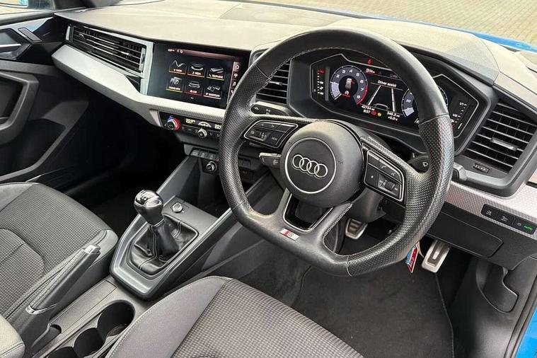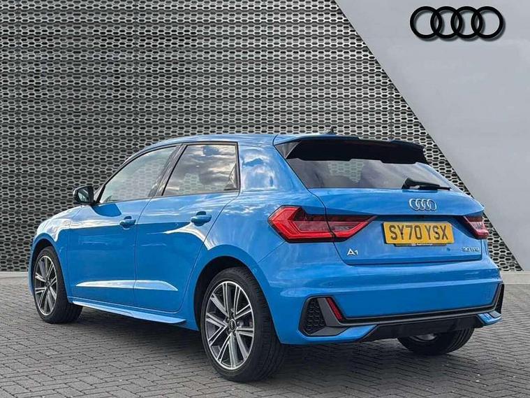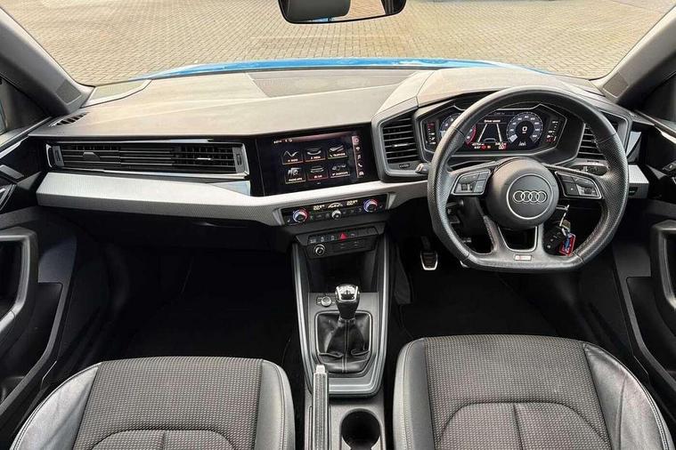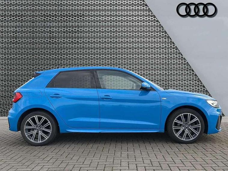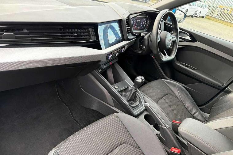 10.25" Digital instrument cluster display classis style instrument dials + speed, odometer, time, outside temperature, telephone menu + fuel level warning, Audi connect safety emergency and service including E-call, Audi drive select - power steering assistance + engine, Audi smartphone interface with connect compatible smartphone via USB directly MMI display + Nav, music, third party apps controlled via MMI controller, Automatic start/stop system, Bluetooth interface, Cruise control, Driver's information system, Electromechanical power steering, Lane departure warning system, Service interval indicator, Speed limiter, Voice control system, Washer fluid level indicator, Sports suspension, 1 x SDXC card reader, 2 x USB type C connection points, DAB Digital radio, MMI radio plus with 8.8" colour MMI display screen and MMI touch, Auto dimming rear view mirror, Body coloured door mirrors, Door sills with aluminium inlays and S Line logo, Electric front and rear windows, Electrically adjustable, heated, folding door mirrors with integrated LED side indicator, Front side air inlets in grained matt black and C frame in titanium black, Heat insulating glass windscreen and side windows, Heated rear windscreen, LED headlights with LED rear lights + dynamic rear indicators + headlight adjustment and high beam, turning light + LED daytime running lights, Radiator grille and rear diffuser in matt titanium black, Radiator protective grille frame in matt aluminium silver, Rain and light sensors, Rear fog lights, Rear wiper, S line badges on front wings, Side front spoiler lips in grained matt black, 12V socket in centre console with two cup holders, 3 rear seats with headrests, 40:60 Split folding rear seat or folded fully, Black cloth headlining, Driver and passenger seat with manual height adjust with forward and backwards adjustment, Front and rear black floor mats with contrast stitching in fine silver, Front head restraints, Height and reach adjustable steering wheel, ISOFIX child seat mounting for front passenger and outer rear seats including top tether attachment point of outer rear seats, Leather gear knob with aluminium trim, Luggage compartment light with front and rear reading lights, Manually adjustable lumbar support in front seats, Stainless steel pedals, LED interior lighting pack - A1, Luggage compartment pack - A1, S line exterior styling pack - A1 Sportback, 3x3 point rear seatbelts, Audi pre-sense front with pedestrain and cyclist recognition, Brake assist function, Driver and front passenger airbag with front side and head airbags, Electronic Stability Control including ABS, EBD, ASR and EDL, Front and rear seatbelt reminder, Front passenger airbag deactivation switch, Hill hold assist, Seatbelt height adjustment for front seats, Seatbelt monitoring, Tyre pressure warning light, Warning triangle and first aid kit, Anti theft alarm, Anti theft wheel bolts and loose wheel warning, Immobiliser, Remote central locking with 2 foldaway keys, Aluminium trim for control switches, air vents and digital instrument cluster, Silver grey inlays polygon structure in diamond paint finish, Structured grey accent areas including air vents, door handle recesses and centre console in quartz paint finish,