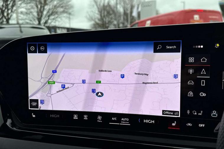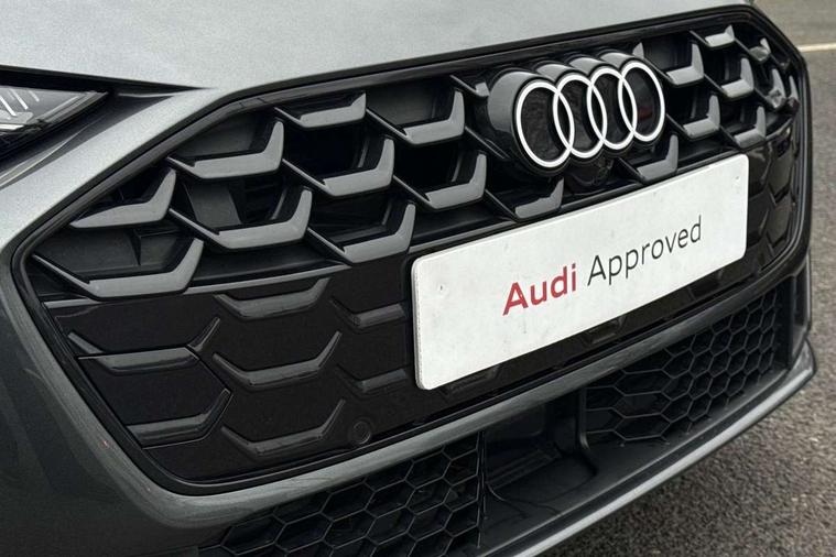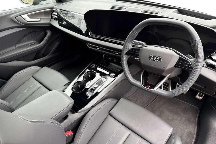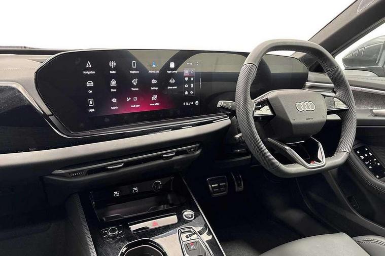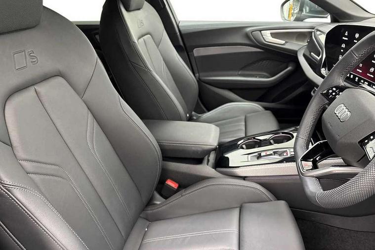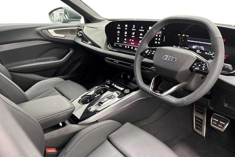 Adaptive cruise control, Advanced driver attention and fatigue montior, Audi application store, Audi assistant, Audi connect emergency call and service, Audi drive select, Audi smartphone interface, Audi virtual cockpit plus with 11.9" OLED colour display, Automatic start/stop system with coasting functionality, Camera based traffic sign recognition, Intersection assist, Lane departure warning, MMI navigation plus with high resolution 14.5" OLED touchscreen colour display, Park assist plus, Parking system plus with 360 display, Progressive steering with servotronic, Rear view camera, Swerve assist and turn assist, Traffic sign based speed limiter, Sports suspension lowered by 20mm, 2 USB-C ports in both the front and rear, Audi sound system impressive sound with 10 loudspeakers including centre speaker and subwoofer, 6-channel amplifier with a total output of 180 watts, DAB digital radio reception, Smartphone compartment with wireless charging, Aluminium roof rails, Aluminium window trims, Auto dimming rear view mirror, Body colour door mirrors, Door mirrors - electrically adjustable, heated, folding and auto dimming on both sides, Front and rear electric windows, Front door sill trims with aluminium inlays, illuminated with 'S' logo, High beam assist, LED headlights Plus incl. digital daytime running lights, turning light, all-weather light, motorway light, manouevring light and intersection light, LED rear lights pro incl. dynamic rear indicators and illuminated light strip with animated coming and leaving home function, LED third brake light, Privacy glass, Rear and side windows with heat insulating glass, Rear side wing doors, Rear wash/wipe, S Line badges on the front wings, S line bumpers, radiator grille and diffuser in phantom black and diffuser insert in matt anthracite, White rhombus logo projection light in exterior mirrors, Windscreen with acoustic glazing, 3 rear headrests, 3 seat rear bench, 3 spoke leather steering wheel with multi-function buttons with touch control, flattened on top and bottom, with S badging and contrast stitching, 3-zone automatic climate control, 40:20:40 split folding rear seat bench with centre armrest and cup holders, Comfort front centre armrest, Front and rear floor mats, Front seats with manual adjustment for position and 4-way electric lumbar support, Front sport seats with integrated headrest and S embossed logo, Headlining in black cloth, Heated front seats, i-Size child seat mounting on the front passenger side and outer rear seats, i-Size and top tether on the outer rear seats, Luggage compartment lid, electrically opening and closing, Manual steering column height and depth adjustment, Single front passenger seat, Stainless steel pedals and footrest, Steering wheel grips in perforated leather and shift paddles, Ambient lighting package plus - A5, 3x3 point rear seat belts, Driver airbag, Electric child safety locks, First aid kit with warning triangle and vests, Front emergency brake assist, Front passenger airbag, Front passenger airbag deactivation, Front side airbags with head airbag system and front interaction airbag, Hill hold assist, Seat belt monitoring with rear seat occupant reminder, Tyre pressure loss indicator, Anti theft alarm, Anti-theft wheel bolts, Keyless Go, Accent surfaces and control buttons in gloss black, Black dashboard with contrast stitching, Inlays in matt brushed aluminium with linear embossing, anthracite, Softwrap in leatherette with contrast stitching, Upper and lower interior elements in leatherette, Tyre repair kit,