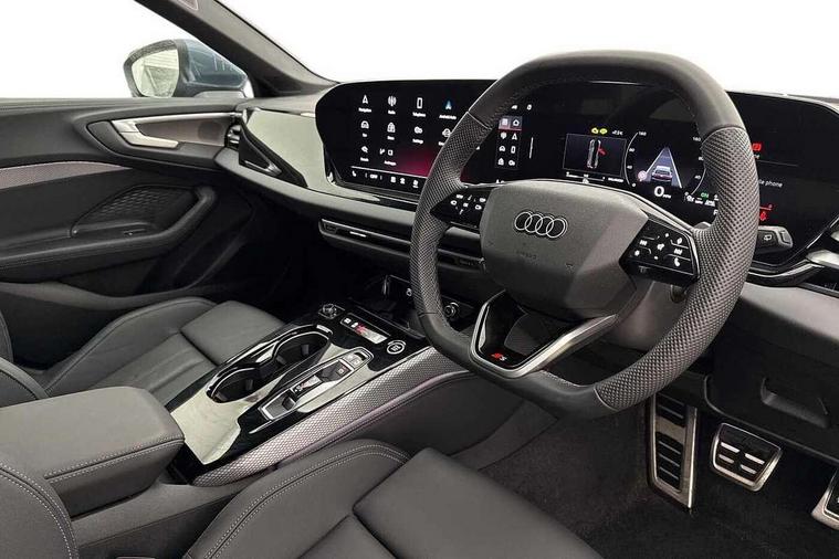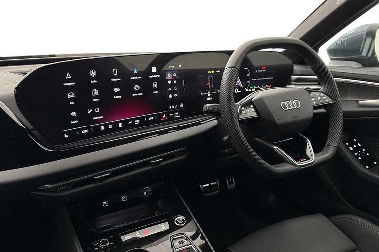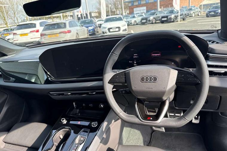 Adaptive cruise control, Advanced driver attention and fatigue montior, Audi application store, Audi assistant, Audi connect emergency call and service, Audi drive select, Audi smartphone interface, Audi virtual cockpit plus with 11.9" OLED colour display, Automatic start/stop system with coasting functionality, Camera based traffic sign recognition, Intersection assist, Lane departure warning, MMI navigation plus with high resolution 14.5" OLED touchscreen colour display, Park assist plus, Parking system plus with 360 display, Progressive steering with servotronic, Rear view camera, Swerve assist and turn assist, Traffic sign based speed limiter, Sports suspension lowered by 20mm, 2 USB-C ports in both the front and rear, Audi sound system impressive sound with 10 loudspeakers including centre speaker and subwoofer, 6-channel amplifier with a total output of 180 watts, DAB digital radio reception, Smartphone compartment with wireless charging, Aluminium roof rails, Aluminium window trims, Auto dimming rear view mirror, Body colour door mirrors, Door mirrors - electrically adjustable, heated, folding and auto dimming on both sides, Front and rear electric windows, Front door sill trims with aluminium inlays, illuminated with 'S' logo, High beam assist, LED headlights Plus incl. digital daytime running lights, turning light, all-weather light, motorway light, manouevring light and intersection light, LED rear lights pro incl. dynamic rear indicators and illuminated light strip with animated coming and leaving home function, LED third brake light, Privacy glass, Rear and side windows with heat insulating glass, Rear side wing doors, Rear wash/wipe, S Line badges on the front wings, S line bumpers, radiator grille and diffuser in phantom black and diffuser insert in matt anthracite, White rhombus logo projection light in exterior mirrors, Windscreen with acoustic glazing, 3 rear headrests, 3 seat rear bench, 3 spoke leather steering wheel with multi-function buttons with touch control, flattened on top and bottom, with S badging and contrast stitching, 3-zone automatic climate control, 40:20:40 split folding rear seat bench with centre armrest and cup holders, Comfort front centre armrest, Front and rear floor mats, Front seats with manual adjustment for position and 4-way electric lumbar support, Front sport seats with integrated headrest and S embossed logo, Headlining in black cloth, Heated front seats, i-Size child seat mounting on the front passenger side and outer rear seats, i-Size and top tether on the outer rear seats, Luggage compartment lid, electrically opening and closing, Manual steering column height and depth adjustment, Single front passenger seat, Stainless steel pedals and footrest, Steering wheel grips in perforated leather and shift paddles, Ambient lighting package plus - A5, 3x3 point rear seat belts, Driver airbag, Electric child safety locks, First aid kit with warning triangle and vests, Front emergency brake assist, Front passenger airbag, Front passenger airbag deactivation, Front side airbags with head airbag system and front interaction airbag, Hill hold assist, Seat belt monitoring with rear seat occupant reminder, Tyre pressure loss indicator, Anti theft alarm, Anti-theft wheel bolts, Keyless Go, Accent surfaces and control buttons in gloss black, Black dashboard with contrast stitching, Inlays in matt brushed aluminium with linear embossing, anthracite, Softwrap in leatherette with contrast stitching, Upper and lower interior elements in leatherette, Tyre repair kit,