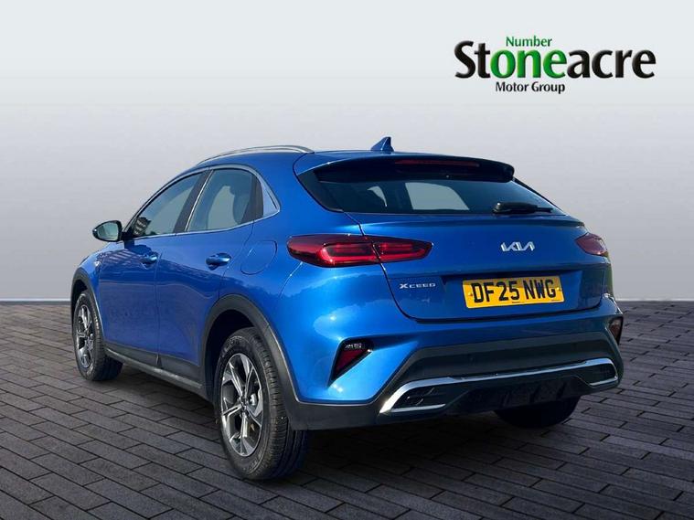 10.25" touchscreen satellite navigation, 4.2" supervision colour cluster display, Apple CarPlay and Android Auto, Bluetooth with Voice Recognition & Music Streaming, Cruise control, Driver attention warning, Emergency call service, Forward Collision-Avoidance Assist (FCA) 1.0 - City/Pedestrian/Cyclist, Intelligent speed limit assist, Lane Follow Assist 1.0, Lane keep assist, Motor driven power steering, Rear parking sensor, Reversing camera with dynamic guide lines, Speed limiter, Tailgate, Trip computer, Intelligent Stop and Go, 7 speakers, DAB Radio with MP3, Front USB port for media connection, Steering wheel mounted controls, All-round Electric Windows with Front Auto Up & Down Function, Automatic headlights, Black side sill mouldings with chrome inserts, Black wheel arch trim, Body colour bumpers, Body colour exterior door handles, Body colour rear roof spoiler, Body coloured door mirrors, Body coloured shark fin antenna, Electrically adjustable and heated door mirrors, Front and rear silver skid plates, Heated rear window, High beam assist, LED daytime running lights, LED Headlights, LED High-mounted Brake Light, LED rear fog light, LED rear lights, Matt black and satin chrome radiator grille, Rear side wing doors, Rear wiper, Silver roof rails, Silver window surround, Smaller XCeed badge on rear left hand tailgate, Tinted glass, Variable front intermittent wipers, Windscreen Washer Level Warning, 3 seat bench in 2nd row, 60/40 split folding rear seat, All-round height adjustable headrests, Centre console with storage box, Chrome interior door handles, Cloth door trim, Cupholders in centre console, Driver and passenger front seat pockets, Driver's seat height adjuster, Front and luggage area 12V power sockets, Front and rear cabin lights, Front and rear door storage, Front passenger 1 x USB-C charging port, Glovebox, Illuminated driver and front passenger sunvisors with vanity mirror, ISOFIX Child seat top tethers and anchor fixings outer rear seats, Leather steering wheel, Luggage area parcel shelf, Luggage compartment light, Luggage hooks, Manual air conditioning, Manual steering wheel adjustment, Premium cloth upholstery, Rear centre armrest with cupholders, Rear passenger 1 x USB-C charging port, Single front passenger seat, All round 3-point seatbelts, Anti-Lock braking system with emergency stop signalling, Dual horn, EBD + Brake Assist, Electronic stability control (ESC) and vehicle stability management (VSM), Front passenger airbag cut off switch, Front, side and curtain airbags, Height adjustable front seatbelts, Hill start assist control (HAC), Impact sensing auto door unlocking, Manual handbrake, Rear door child safety locks, Seatbelt reminder warning, Traction control, Tyre pressure warning system, Customisable automatic door locking, Customisable automatic door unlocking, Locking wheel nuts, Remote central door locking with fold away key, Smart key with motion sensor, Thatcham category 2 security alarm and immobiliser, Visible vehicle identification number, 16" alloy wheels, Tyre mobility kit,