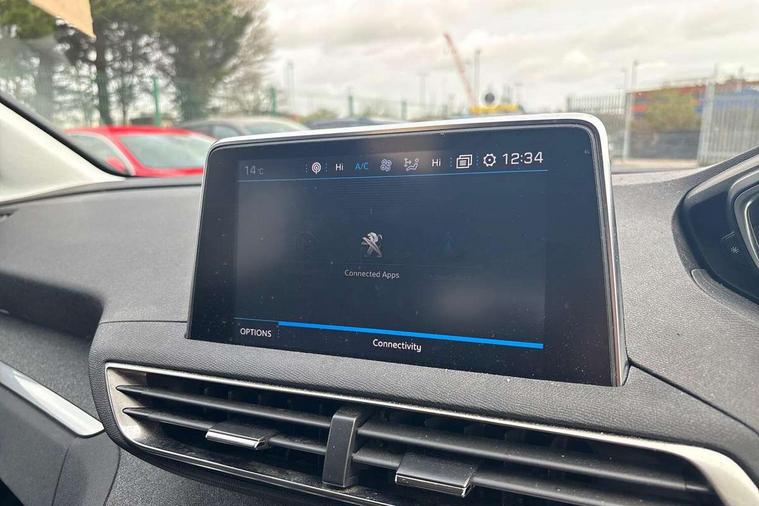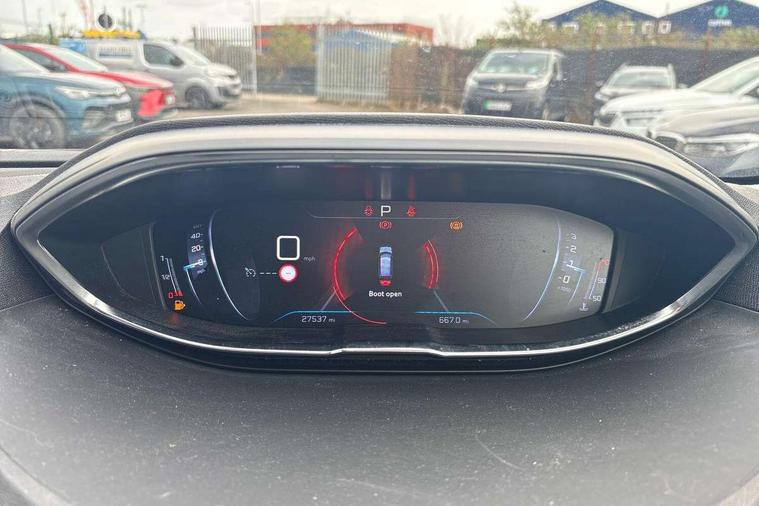 3D connected navigation + voice control, Auto start and stop system, Bluetooth telephone connection, Exterior temperature gauge with frost alarm, Headlight on warning buzzer, Lane departure warning system, Mirror screen with Apple CarPlay and Android auto, Multi function trip computer, Peugeot i-cockpit with 12.3" headup digital instrumental panel, 8.0" capacitive touch screen and compact sports steering wheel, PEUGEOT SOS and assistance, Speed limit recognition, Sports button, Dynamic stability control, DAB Digital radio, MP3 connection, Steering wheel audio controls, USB socket, 2 X Rear number plate lights, Aluminium roof rails, Automatic activation of hazard warning lights, Black front wing trim with chrome detail, Black rubber side window trim, Body colour door handles, Body coloured bumpers, Body coloured rear spoiler, Body protectors in black, Chrome front fog light surround, Chrome radiator grille and surround, Chrome rear bumper scuff plate, Dark tinted rear side and tailgate windows, Door mirror mounted LED courtesy approach lights, Electric front/rear windows with one touch/auto up/down, Electrically heated door mirrors, Front windscreen wiper with magic wash cleaning system, Gloss black B and C pillar and aerodynamic deflector trim, Gloss black rear cluster connecting strip, Gloss black windscreen surround, Heated rear windscreen with integrated antenna, LED daytime running lights, LED side indicator lights integrated into door mirrors, Lion grey front bumper scuff plate, Power folding door mirrors with indicator and auto dipping function in reverse gear, Rear LED Peugeot signature 'Claw Effect' lights, Rear windscreen wiper with auto activation when reversing, Stainless steel roof arches, Wheel arch protectors, 2 cupholders in front centre console, 2 individual folding 3rd row seats, 3 x 12V power sockets, 4 Grab handles retractable and damped, Automatic dual-zone climate control, Blue ambient lighting for connecting zone, Blue ambient lighting to front door panels, central storage and cupholders, Blue ambient lighting to head up instrument panel, Electric power steering with reach and rake adjustable steering column, Flat folding rear seats, Flocked glovebox interior, Fold flat front passenger seat with picnic table, Front central armrest with butterfly-wing opening and storage compartment, Front interior light with 2 reading spotlights and rear interior light with timer, Front passenger seat height adjust, Front passenger seat manual adjustment in longitudinal and back rest angle, Gear shift indicator, Headrests on 2nd/3rd row seats, Heating/air conditioning outlet in rear, Illuminated glovebox, Illuminated vanity mirror, Interior lighting, Isofix child seat fittings x 3 in the second row, Map pocket on front seat backs, Mistral leather steering wheel with stitch detail, Rear centre console with air vents, Rear reading lights x 2, Rear seat underfloor storage, Retractable parcel shelf, Roof lining - Salin light grey, Satin chrome digital instrument panel and touchscreen trim, Satin chrome front door panel recess trim, Satin chrome gear lever, Satin chrome interior door handles, Satin chrome scorpion's tail and toggle switch trim, Seatbelt unfastened on the move audible and visual alert for front and rear seats, Twin rear coat hooks, Safety pack - 5008, Safety plus pack - 5008, Visibility pack - 5008, 3 Isofix location points, ABS + EBD + EBA, Adaptive driver and front passenger airbags including passenger airbag deactivation function, Electronic parking brake, ESP and ASR traction control with deactivation switch, Five 3 point rear safety belts, Front and rear curtain airbags, Front optimised safety headrests and rear retractable headrests (x3), height adjustable, Front seatbelt unfastened audible+visual warnings, Front side airbags, Front three point retractable seatbelts height adjustable with pre tensioners and force limiters, Front ventilated disc brakes, Hill start assist, Rear disc brakes, Rear three-point retractable seatbelts (x3) with pre-tensioners and force limiters in the outer rear seats, Tyre pressure monitor, Automatic door lock/re-lock after 30 seconds, Child lock control of rear doors and windows, Remote control central locking with two plip keys, Rolling code transponder immobiliser, Thatcham cat 1 ultrasonic alarm, Brumeo fabric interior trim, Satin chrome dash trim,