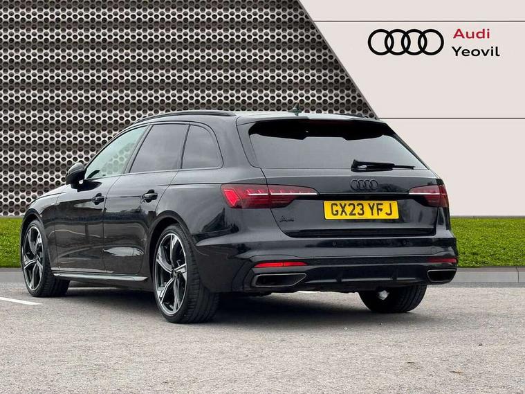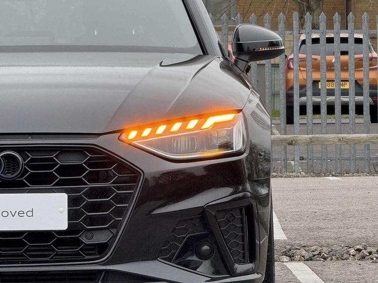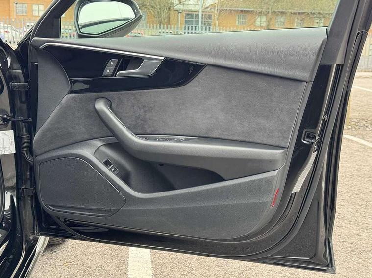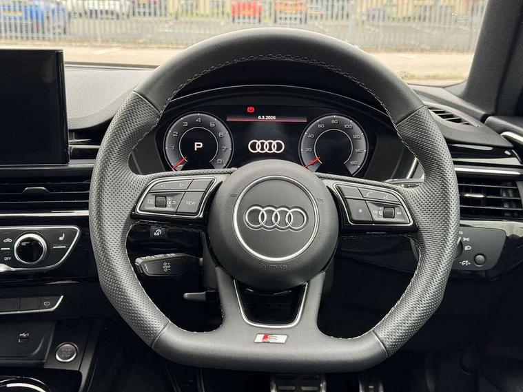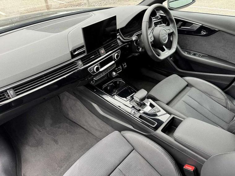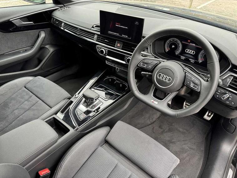 Audi connect safety and service (e-call), Audi connect with Amazon Alexa Integration, Audi drive select, Audi smartphone interface, Audi virtual cockpit, Automatic start-stop system with coasting functionality and efficiency programme, Bluetooth interface, Electromechanical power steering, Email, calendar and text messages displayed via MMI, MMI Navigation plus with MMI touch includes 10.1" high resolution colour MMI display, 3D map, Power operated tailgate, Voice control system, 54 litre fuel tank, Sports suspension lowered by 23mm, 2 USB charging ports, 8 passive loudspeakers, DAB digital radio reception, Audi beam uses LEDs to project the audi logo onto the ground as you exit your A4, Auto dimming rear view mirror, Black Audi rings and black badging (model name in black badging, no engine badging), Body colour door handles, Body colour front spoiler lip, Body colour side sill trim, Electrically folding auto dimming/adjustable/heated door mirrors with LED side indicators and kerb view function for passenger side, Exhaust tailpipes in high dark chrome, Front and rear bumpers with side skirts, Grained matt black side air inlets with matt aluminium silver inlay, High beam assistant, High gloss black B pillar trims and triangular rear door trim, LED headlights with LED rear lights + dynamic rear indicators + headlight adjustment and high beam, turning light + LED daytime running lights, LED third brake light, Privacy glass, Rain and light sensors, Rear diffuser in matt black with trim strip in matt aluminium silver, Rear side wing doors, Rear wiper, RS4 rear spoiler in body colour, S Line badges on the front wings, S Line roof edge spoiler, Variable intermittent front wash/wipe, Windscreen with acoustic glazing, 4 way electric lumbar support for driver and front passenger, 40/20/40 split folding 3 rear seat bench in 3 parts with rear centre armrest, Black cloth headlining, Black perforated leather gearknob, Contrast stitching on seats, steering wheel and gear lever gaiter, Deluxe 3 zone electronic climate control, Door sill trims with aluminium inlay, Electric load area cover, Front and rear head restraints, Front centre armrest, Heated front seats, Illuminated door sill trims with S logo, ISOFIX child seat mounting and top tether, Manual seat adjustment, Single front passenger seat, Stainless steel pedals and foot rest, Black styling pack - A4 Avant, LED Interior light pack - A4/S4, 3 rear seatbelts, 6 airbags - Driver, front passenger, curtain and side windows, Electronic Stabilisation Control (ESC) including ABS, ASR and EDL, Hill hold assist, Multi collision brake assist, Pop-up bonnet for pedestrian protection, Pre sense city, Rear door child safety locks, Seatbelt monitoring, Warning triangle and first aid kit, Anti theft alarm, Anti theft wheel bolts, Central locking, Keyless Go, Piano black finish inlay, 19" 5 arm flag design Audi sport diamond cut alloy wheels in gloss anthracite black, Tool kit, Tyre repair kit,