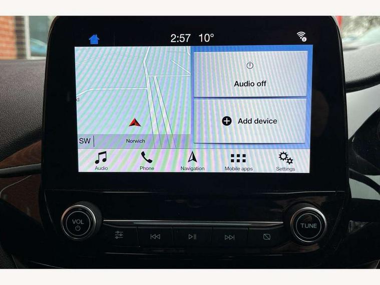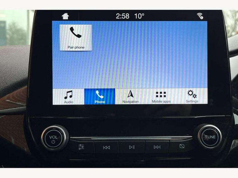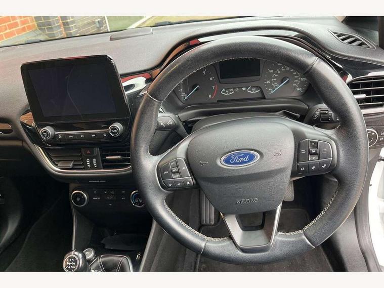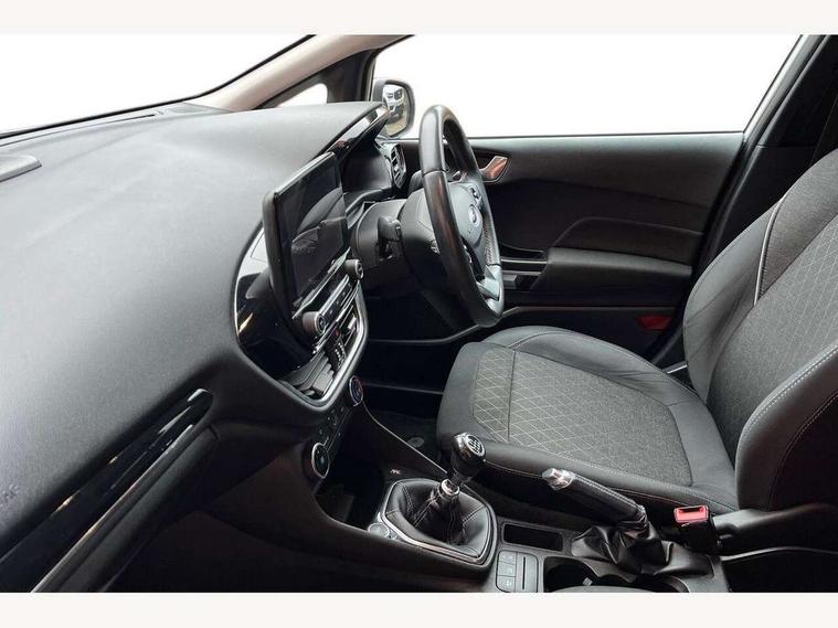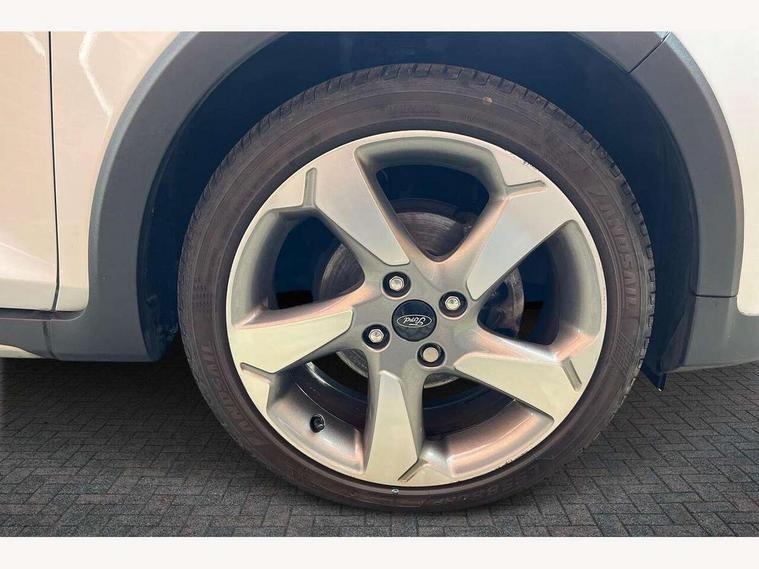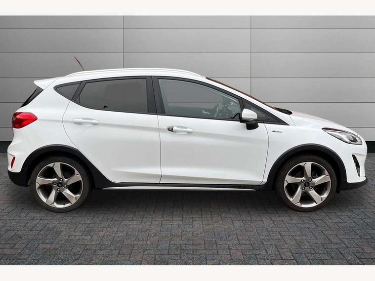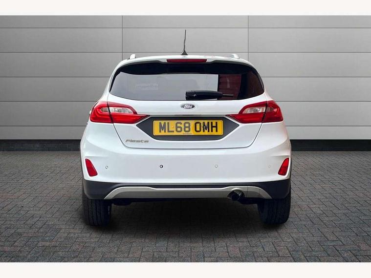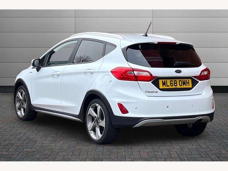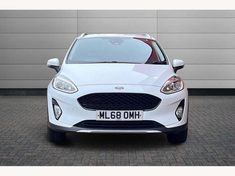 Bluetooth system, Drive mode selector, Electric power steering, Ford easy fuel, Trip computer, Rough road suspension with increased ride height adjust, Auxiliary input socket, Steering wheel mounted controls, USB connection, Active logo front door thershold plates, Automatic headlights, Body colour bumpers, Body colour door handles, Body colour electric adjustable heated door mirrors with integral indicators, Body colour rear spoiler, Chrome beltline trim, Chrome lower window surround, Cornering front fog lights, Electric front windows/one touch facility, Electric rear windows, LED Night signature to rear lights, LED rear lights, Quickclear heated windscreen, Rear privacy glass, Rear wiper, Rugged body styling kit with active front wing badges, Tinted glass, Upper front grille chrome surround, 12V Accessory socket in centre console, 3 spoke leather trimmed steering wheel with audio control, 60/40 split folding rear seat, Adjustable head restraints, Ambient lighting, Boot carpet, Chrome inner door handles, Cloth upholstery, Driver's lumbar support, Footwell illumination, Front floor mats, Front map reading lights, Front seat and rear pockets, Height adjustable driver's seat, Illuminated glovebox, Leather gear knob, Leather trimmed handbrake handle, Load area light, Luxury woven headliner, Manual air conditioning, Overhead console with sunglasses holder, Pollen filter, Rake/reach adjustable steering wheel, Rear centre head restraint, NCAP Pack - Fiesta, 3 point seatbelts on all rear seats, ABS+EBA, Curtain airbags, Driver and passenger airbags, Drivers knee airbag, Electronic stability control with hill start assist, Front passenger airbag deactivation, Front side airbags, Seatbelt warning, Tyre pressure monitoring system, MyKey system, Remote central locking & engine immobiliser, Thatcham Cat.1 alarm, 17" 5 spoke alloy wheels with rough metal machined finish,