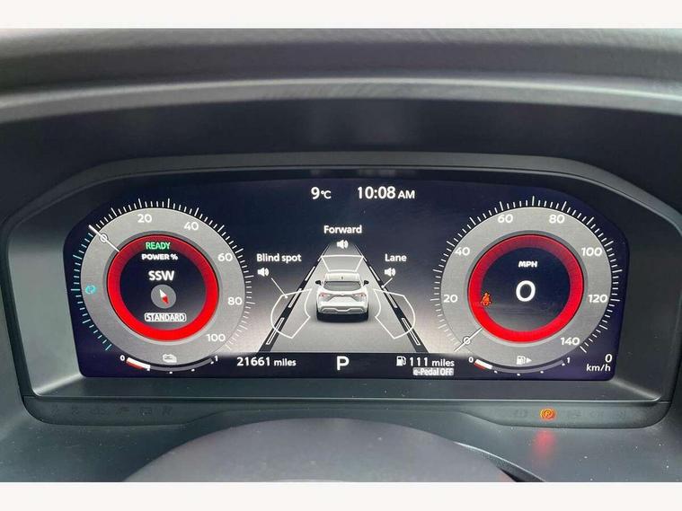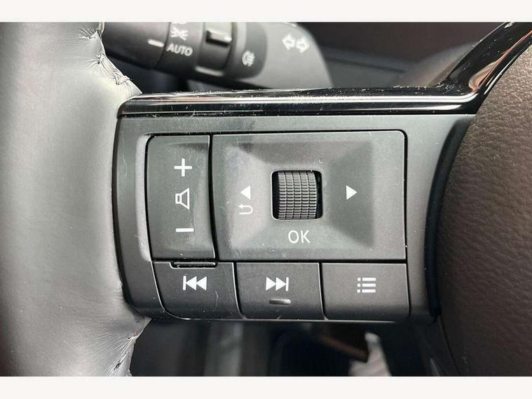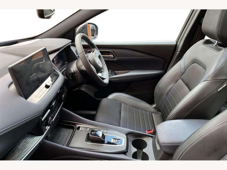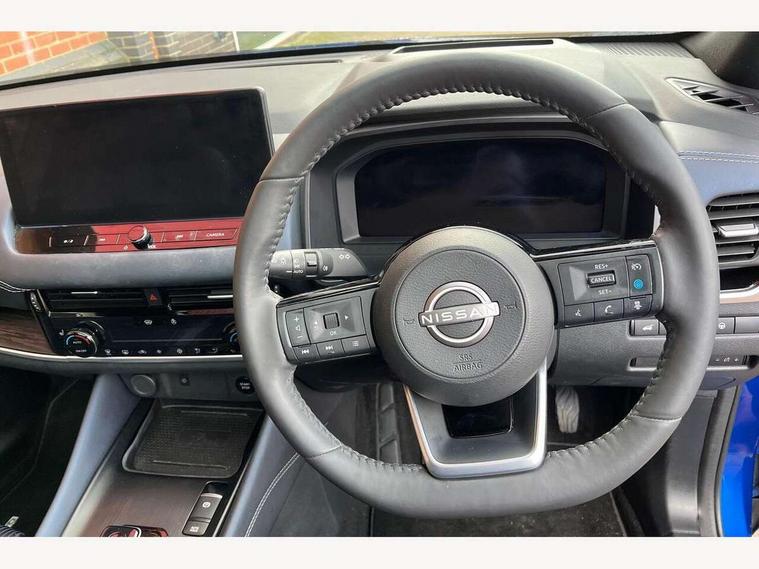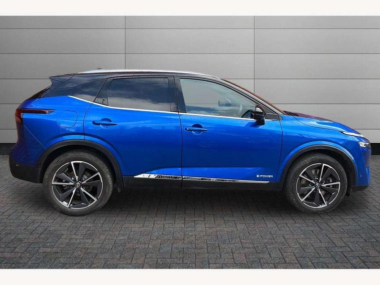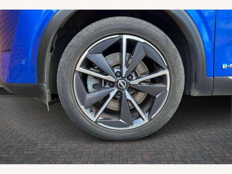 Advanced windscreen head up display, Blind spot warning, Drive modes (sport, normal, eco), e-Pedal step, Electric speed sensitive power steering, Emergency and breakdown call, Front and rear parking sensors, Full Digital 12.3" TFT Digital Combimeter, Google maps services - search, weather, 3D maps and Google street view, Hands free power tailgate, Idle stop/start system, Intelligent around view monitor, Intelligent Cruise control (ICC), Intelligent driver alert system, Intelligent forward collision warning, Intelligent lane intervention, Lane departure prevention, Lane departure warning system, Lane keep assist, Moving object detection, Nissan connect 12.3 inch touchscreen infotainment system, Nissan connect navigation, ProPILOT with Navi-Link, Push button starter, Rear cross traffic alert, Rear view camera, Remote control services - door locks, lights, horn and car locator, Telematics - notifications and connectivity services, TomTom live traffic services, Traffic sign recognition with legal speed adjustment, Trip computer, Virtual personal assistant and firmware over the air capability, Wireless Apple CarPlay and wired Android Auto, Wireless charging pad, 6 speakers, AM/FM audio system with DAB, Bluetooth audio streaming, Front USB connections (Type-A and Type-C), Rear USB charging only ports (Type-A and Type-C), Auto dimming rear view mirror, Auto rear wiper when reversing, Automatic hazard signal with emergency stop signal, Body colour mirror caps, Body coloured door handles, Bodyside mouldings, Chrome side window finisher, Door handle with button, e-POWER badging, Electric auto folding door mirrors, Electrically adjustable and heated door mirrors with LED turn indicator, Follow me home headlights, Front and rear LED turning signals, Headlights auto levelling system, Intelligent auto headlights, LED 3rd brake light, LED daytime running lights, LED headlights with adaptive driving beam, LED rear lights, One touch front and rear electric windows with remote opening and closing, Partially body coloured bumpers, Privacy glass, Rear bumper with graphite insert, Rear reversing light (bulb lighting), Rear roof spoiler, Rear side wing doors, Rear styling plate, Shark fin antenna, Splash free rain sensing wipers, Super UV and infrared cut glass, Thermaclear heated windscreen, Three blink turn signal, 12v power socket in dashboard and luggage, 2x Rear coat hooks, 3 bench rear seats in 2nd row, 3 rear headrests, 4 folding assist grip, 6 Luggage hooks - 4 on floor, 2 on side, 60/40 split folding rear seat bench, Ambient lighting around centre console, Ambient lighting in front doors, Centre console storage tray, Chrome interior door handles, Cloth/syntech leather monoform upholstery, Dark black/blueish PVC wrapping, Dark headlining, Driver and front passenger sunvisors with illuminated vanity mirrors, Driver seat back pocket, Dual zone automatic climate control with pollen filter, e-POWER shifter, Electrically adjustable driver seat, Electrically adjustable lumbar support for driver, Front and rear door storage, Front centre console and armrest, Front cupholders x 2, Front door with bottle holders, Glovebox with light, Hard trunk cover, Heated front seats, Heated steering wheel, Height adjustable driver's seat, Height adjustable front headrests, Height adjustable passenger seat, Leather steering wheel, Luggage board system, Luggage space lighting, Manual lumbar support on passenger seat, Manually adjustable passenger (slide recline + lifter), Multifunction steering wheel, Passenger seat back pocket, Rear armrest with 2 cupholders, Rear door bottle holders, Single front passenger seat, Soft PVC kneepad, Steering wheel switches, Tilt/telescopic adjustable steering wheel, Two rear isofix child seat anchorage points with top tether, Welcome light and doors with console tray ambient lighting, Glass roof pack with roof rails - Qashqai, 3x3 point rear seatbelt pretensioners + load limiters, ABS with EBD and brake assist, Active brake limited slip, Auto hold function, Child locks on rear doors, Curtain and front side, far side airbags, Driver and passenger airbags, Driver, passenger and 2nd row rear seat belt reminder, Electronic parking brake, Front seatbelt pretensioners + load limiters, Height adjustable front seatbelts, Hill start assist, Intelligent blind spot intervention, Intelligent front emergency braking with pedestrian, cyclist recognition and junction assist, Intelligent rear automatic braking, Tyre pressure monitoring system, Vehicle dynamic control, Capless fuel filler, Engine immobiliser, Intelligent Key, Remote central door locking with deadlocking, Thatcham Cat.1 alarm, Interior instrumental panel C finisher, 19" Diamond cut alloy wheels, Tyre puncture repair kit,