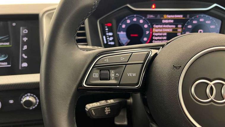 10.25" Digital instrument cluster display classis style instrument dials + speed, odometer, time, outside temperature, telephone menu + fuel level warning, Audi connect safety emergency and service including E-call, Audi drive select - power steering assistance + engine, Audi smartphone interface with connect compatible smartphone via USB directly MMI display + Nav, music, third party apps controlled via MMI controller, Automatic start/stop system, Bluetooth interface, Cruise control, Driver's information system, Electromechanical power steering, Emergency services call system, Lane departure warning system, Service interval indicator, Speed limiter, Voice control system, Washer fluid level indicator, Dynamic suspension, 1 x SDXC card reader, 2 x USB type C connection points, DAB Digital radio, MMI radio plus with 8.8" colour MMI display screen and MMI touch, Auto dimming rear view mirror, Body coloured bumpers, Body coloured door mirrors, Electric front and rear windows, Electrically adjustable, heated, folding door mirrors with integrated LED side indicator, Front side air inlets in grained matt black and C frame in titanium black, Heat insulating glass windscreen and side windows, Heated rear windscreen, High level LED brake light, LED headlights with LED rear lights + dynamic rear indicators + headlight adjustment and high beam, turning light + LED daytime running lights, Radiator grille and rear diffuser in matt titanium black, Radiator protective grille frame in matt aluminium silver, Rain and light sensors, Rear fog lights, Rear side wing doors, Rear wing door, Rear wiper, Side front spoiler lips in grained matt black, 12V socket in centre console with two cup holders, 3 rear seats with headrests, 3 seat bench in 2nd row, 40:60 Split folding rear seat or folded fully, Door sill trims with aluminium inlay, Driver and passenger seat with manual height adjust with forward and backwards adjustment, Front head restraints, Front passenger seat, Front/rear floor mats, Height and reach adjustable steering wheel, ISOFIX child seat mounting for front passenger and outer rear seats including top tether attachment point of outer rear seats, Leather gear knob with aluminium trim, Leatherette handbrake grip, Luggage compartment light with front and rear reading lights, Manually adjustable lumbar support in front seats, Novum cloth upholstery with front sport seats, Titanium grey cloth headlining, Luggage compartment pack - A1, 3x3 point rear seatbelts, Audi pre-sense front with pedestrain and cyclist recognition, Brake assist function, Driver and front passenger airbag with front side and head airbags, Electronic Stability Control including ABS, EBD, ASR and EDL, Front passenger airbag deactivation switch, Hill hold assist, Manual rear child locks, Seatbelt height adjustment for front seats, Seatbelt monitoring, Tyre pressure warning light, Warning triangle and first aid kit, Anti theft alarm, Anti theft wheel bolts and loose wheel warning, Immobiliser, Remote central locking with 2 foldaway keys, Aluminium trim for control switches, air vents and digital instrument cluster, Silver grey accent areas including air vents, door handle recesses and centre console in diamond paint finish, Slate grey inlays polygon structure in fine paint finish,