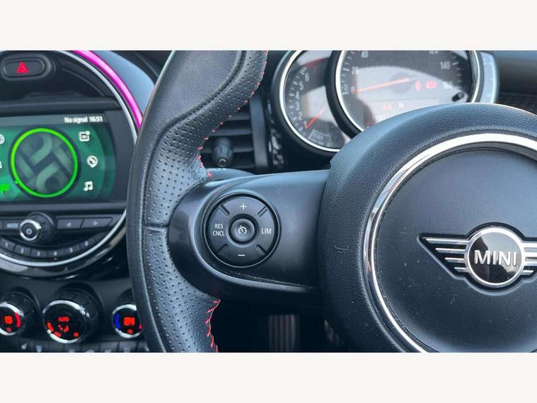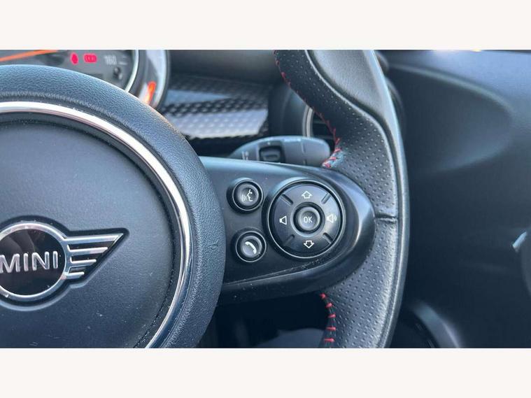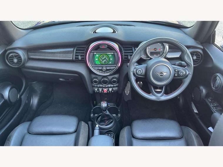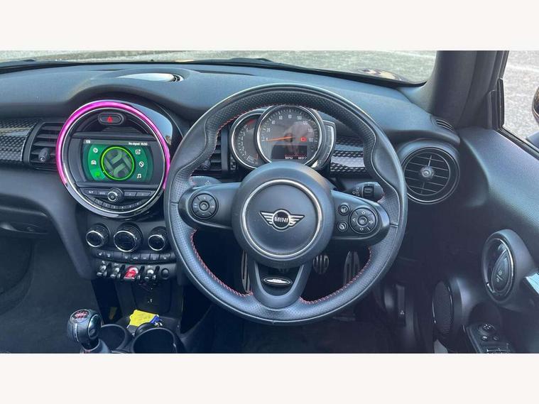 Automatic start/stop function with brake energy recuperation, Compatible mobile phone bluetooth with audio streaming, Electro-mechanical speed dependant steering assistance, Gear change indicator, Instrument cluster, Mini E-call, MINI TeleServices, On board computer, Rear park distance control, Service interval indicator, Double Vanos system, Fully variable valve control, High precision injection, Performance Control, 6.5" touchscreen with LED ring, FM tuner and DAB digital radio, Automatic headlight activation switch, Bonnet scoop, Chrome border honeycomb structure radiator grille with S badge, Chrome plated fuel cap, Dynamic brake lights, Electric windows, Fully electric black softtop with integrated sunroof functionality, Heated rear window, Heated windscreen washer jets, John Cooper Works - aerodynamic kit (front and rear apron, spoiler), front and rear sport bumpers and part-painted side sills with door sill finishers, LED headlight with closed ring and daytime driving lights, Metal door sill strips with Cooper S imprint, Model logo Cooper S on right of tailgate, Rain sensor window wipers, Rear fog lights, Rear LED lights with union jack design, Side scuttle panel with integrated indicator, Sun/heat protection glass, Two central exhaust tailpipes with chrome finisher, White indicator lenses, 12V Accessory socket in centre console, 4 lashing eyes in luggage compartment, 50/50 split folding rear seats, Chrome interior highlights, Cupholders, Easy Load boot handles, Front and rear isofix with front passenger airbag deactivation, Front seatback storage pockets, Glove compartment, Height and length steering column adjustment, Interior lighting with 12 basic colours selectable via toggle switch in roof, John Cooper Works perforated leather steering wheel with contrast stitching in chilli red and John Cooper Works logo, Leather gearshift lever and handbrake gaiters, Leatherette integrated headrest, adjustable thigh support with john cooper works logo, LED reading lights, vanity mirror lights, front foot well light and spotlight on front seats, Manual air conditioning, Mechanical seat adjustment, driver seat height adjust, forward/back and front seats backrest, Mini logo projection on floor from drivers exterior mirror, Multifunction steering wheel, Rear head restraints, Storage compartments in doors, Sunvisors with vanity mirrors, 3 point seatbelts on all four seats, 6 Airbags - front, side and seat belt tensioners, Active rollover protection, Anti-lock braking system (ABS), DSC - Dynamic Stability Control, Front and rear disc brakes, Hill start assist, Two tone horn, Tyre pressure monitoring system, Alarm system with tilt sensor, monitoring doors, bonnet interior and tailgate, Electronic vehicle immobiliser, Keyless Go, Tool kit,