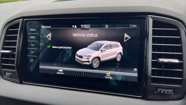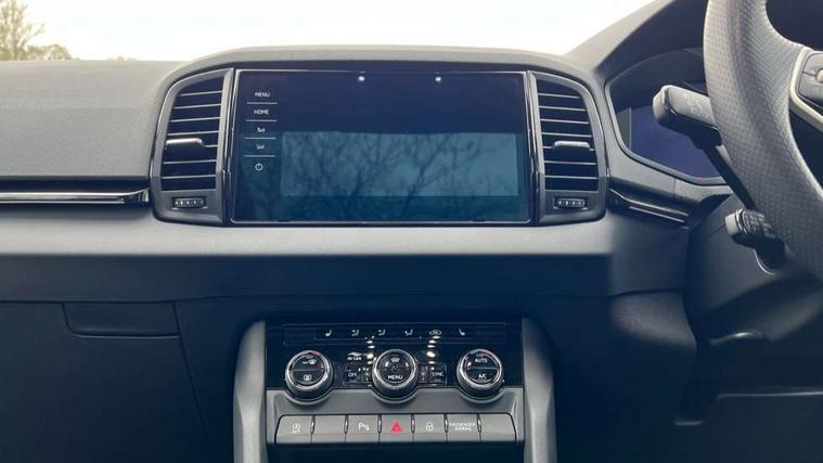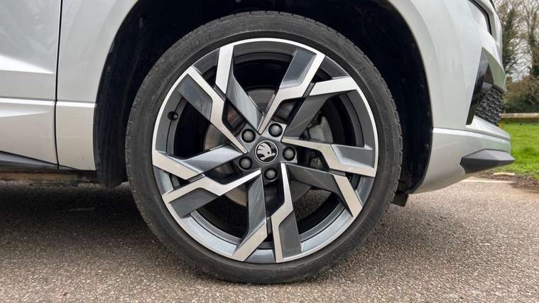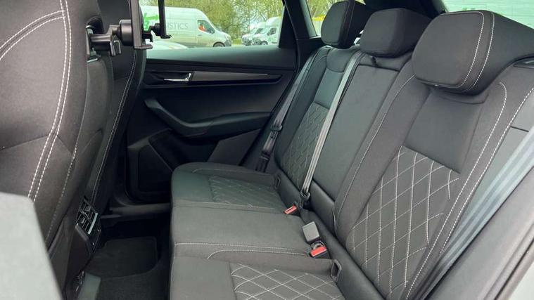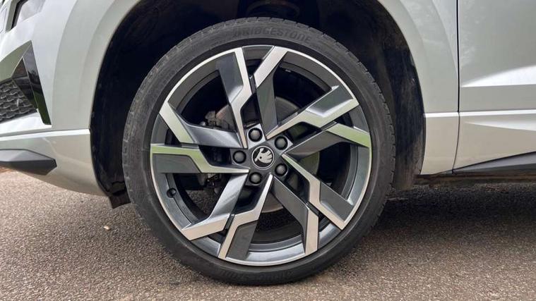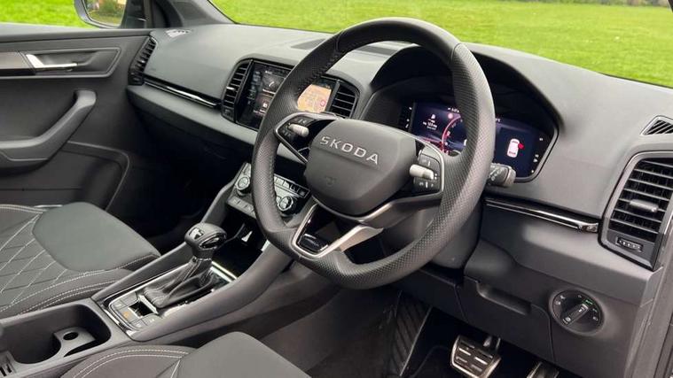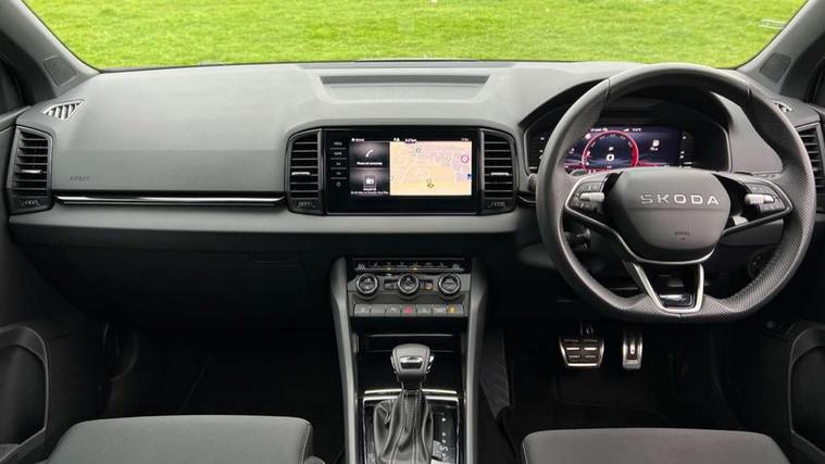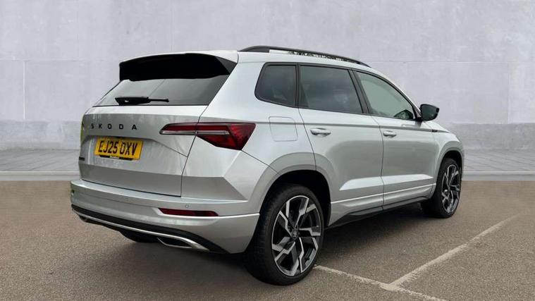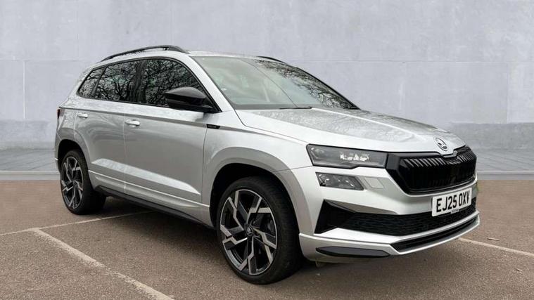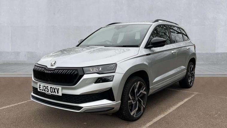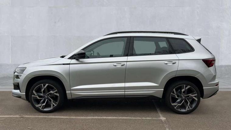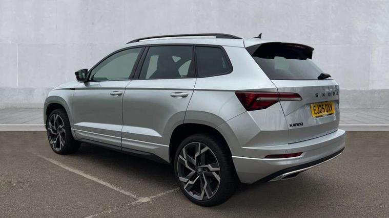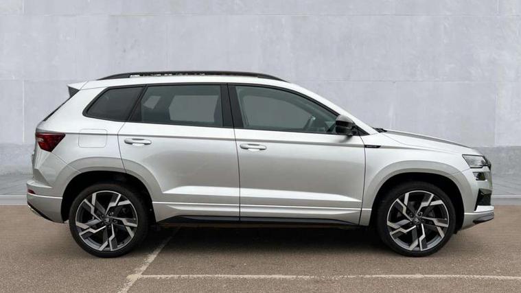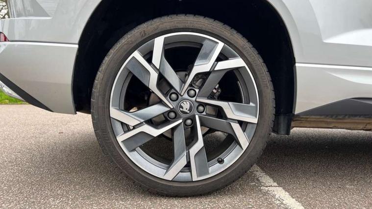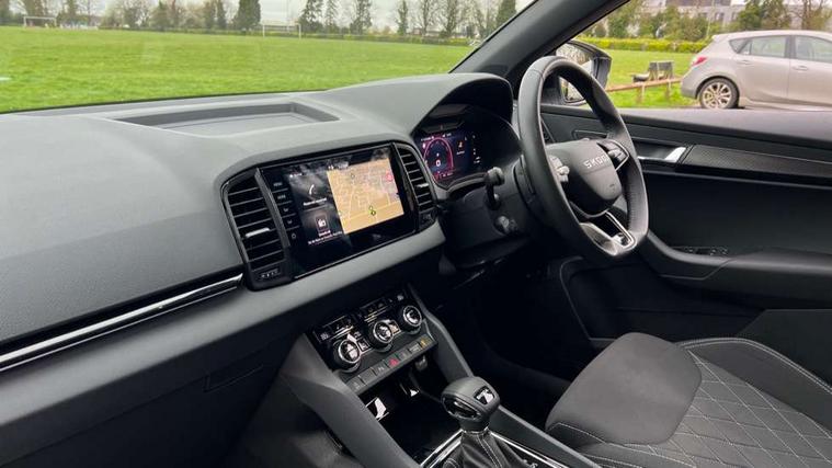 Advanced driver attention and drowsiness monitor, Emergency services call system, Outside temperature gauge, Sensor for driver assistance systems, Service interval indicator, SmartLink wireless for Apple and wired for Android, Start/stop system with regenerative braking, Traffic sign recognition, USB C Port x 2 in front centre console, Virtual Cockpit - 10.25" digital display, Virtual pedal with electrically operated boot door, Wireless smartphone charging, DAB radio with Bluetooth, USB connection, Acoustic glass, Aero front windscreen wipers with intermittent function, Auto dimming rear view mirror with light and rain sensors, Black door mirrors, Black electric window control buttons, Black radiator grille, Black roof rails, Body colour door handles, Electric front and rear windows with child proof lock, Extended rear roof spoiler, Front door steps with SportLine logo, Heated rear windscreen, LED daytime running lights, LED rear lights with high functionality welcome effect and dynamic indicators, Light assistant (coming/leaving home/tunnel light), Panoramic sliding sunroof, Plastic scuff plates in door apertures, Privacy glass, Protective door side sills in body colour, Rear diffuser, Rear side wing doors, Rear window wiper with washer system and intermittent control, Safety reflectors on front doors, Skoda lettering on tailgate in black, Sportline badge on front fender, Sports front and rear bumpers, Third brake light, Unique dark chrome design logo on alloy wheels, 1.5 litre bottle holders in driver and front passenger door panels, 12V socket in boot, 12v socket in front centre armrest with storage compartment and rear air vents, 2 x Tablet holder, 3 rear height adjustable headrests, 3 seat bench in 2nd row, 3 spoke sports leather heated multifunction steering wheel with DSG paddles, 4 foldable roof handles with rear coat hooks, Black floor carpet, Cargo elements in boot, Chrome inner door handles, Foldable hooks in the boot, Front head restraints, Height adjustable front three point seats belts with tensioners, Height/reach adjust steering wheel, Ice scraper, Illuminated glovebox, Illuminated luggage compartment, Isofix child seat preparation for front passenger seat, Isofix child seat preparation outer rear, Manual lumbar support for front seats, Pen holder, Pollen filter, Rear backrest release from boot, Rear boot cover, Rear package tray, Rear reading lights, Rear seats fixed folding and divided 60:40, Rubbish bin door, Safety vest holder, Single front passenger seat, Skoda lettering on steering wheel, Sportline decorative inserts, Storage box in upper central dashboard closed, Sunvisors with illuminated vanity mirrors, Textile floor mats, Ticket holder, Titan black interior ceiling, Umbrella under passenger seat, Under passenger seat storage compartment, Columbus pack - Karoq, LED Interior lighting pack with Skoda welcome logo - Karoq, Light Pack - Karoq, Non Smokers pack, Performance pack - Karoq, Winter plus pack with heated front and rear seats - Karoq, Automatic door unlocking in case of crash, Automatic fuel cut off in case of crash, Driver airbag, Electronic parking brake with auto hold function, Emergency rear braking signal, ESC (incl. ABS+MSR+ASR+EDS+HBA+DSR+RBS+MKB), Front side airbags, Head airbags, Hill hold control, Knee airbags, Passenger airbag with switch-off function, Pedestrian monitor, Seatbelt reminder signalisation and pretensioner for all seats, Three point seatbelts rear, Two tone horn, Tyre pressure monitor, Alarm with interior monitoring, back up horn and tilt sensor with safe function, Electronic engine immobiliser, Keyless entry and start/stop, Remote central locking with 2 remote folding keys, Black air vent surround, Black centre console, carbon door decor, Satin black dashboard, Satin black door trim, 19" Sagittarius anthracite alloy wheels, Anti-theft wheel bolts protection, Breakdown and tool kit,