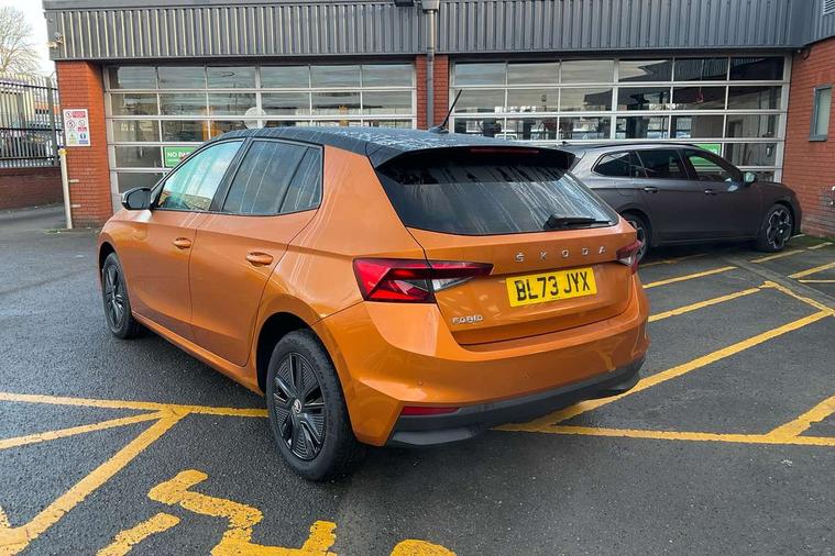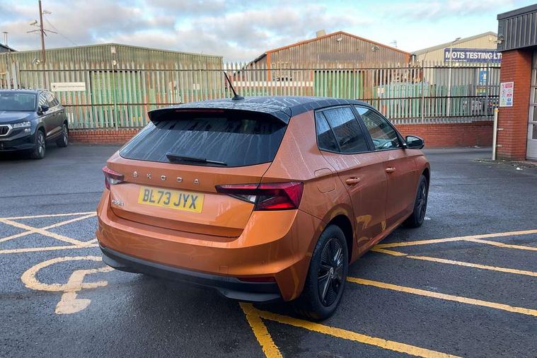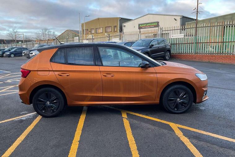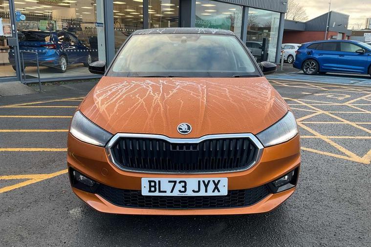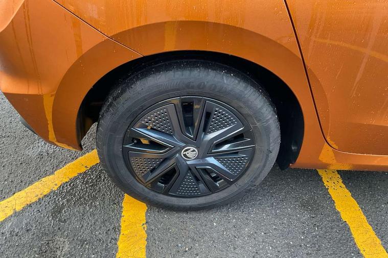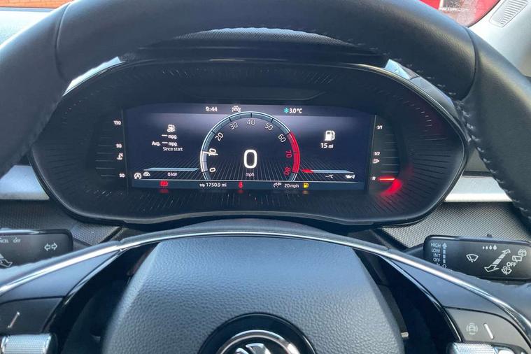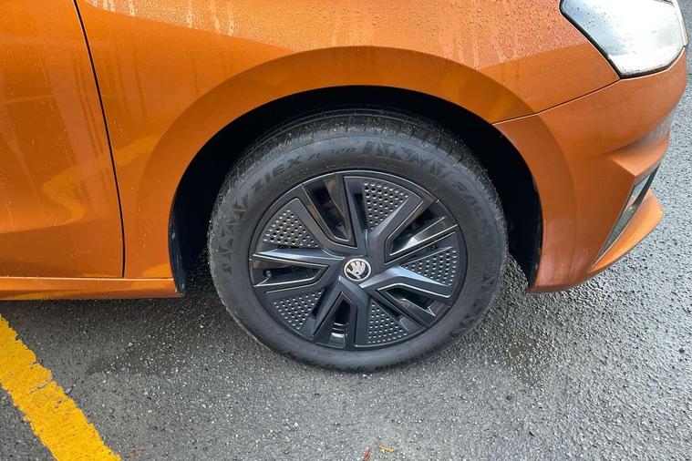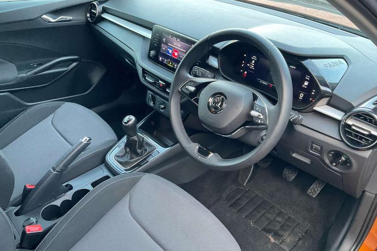 Bluetooth connection, Driver alert system - DAS, Electromechanical power steering, Exterior temperature gauge, Lane assist including road edge detection, Service interval indicator, Virtual cockpit with 10.25" colour display, 2x USB-C in the front (for data transmission and charging), 6 Speakers (4 in front and 2 in rear), Auxiliary socket for external MP3 player, Bolero radio with 8" colour display, DAB digital radio reception, Basic LED Headlights, Body coloured bumpers, Dimming rear view mirror with black frame, Door mirror integrated indicators, Electrically adjustable and heated door mirrors, Electrically adjustable front windows with function auto up/down, Front fog lights, Front window wiper intermittent control, Headlight range control - Automatic, Ice scraper in fuel cap, LED daytime running lights with coming and leaving home feature, Mechanical adjustable rear windows, Privacy glass, Rain sensor, Rear LED fog light, Rear side wing doors, Rear window wiper with washing nozzles, Roof mounted spoiler, SKODA tailgate lettering in chrome, Third brake light, 2 reading lights in front and 2 reading lights in rear, 3 rear headrests, Backrest split and folding, Central console with fixed cup holder and storage box, Chrome handbrake release button, Fabric upholstery, Gearshift knob/handle in leather, Grain satin black interior door handles, Hand brake lever handle in leather, Height adjustable drivers seat, Height adjustable front headrests, Height adjustable steering wheel, ISOFIX and TopTether anchorage points to the outer rear seats, ISOFIX and TopTether on the front passenger seat, Luggage compartment lighting, Pollen filter, Rear seat bench unsplit, Single front passenger seat, Storm grey headlining, Sun visors with mirror and airbag label on passenger side, Ticket holder, Umbrella in drivers door, 3-point height adjustable front seats belts with pretensioner and force limiter, Automatic warning lights in case of crash, Driver and passengers airbag with switch off function, e-Call+, ESC including ABS, MSR, ASR, EDS, HBA and XDS, Front and rear seat belt warning, FRONT ASSIST (AEB City and AEB Inter Urban), Front side airbags, Head airbags, One tone horn, Pedestrian protection, Three rear 3-points safety seat belts with pretensioner and force limiter including stop function for outer rear seat belts, Tyre pressure monitoring system, Anti-theft alarm system including immobiliser, interior monitoring, backup horn, and towing protection, Central locking with radio remote control, interior controls, SAFE function and 2 foldable keys, KESSY - Keyless engine start/stop, Anodized cross line upper decorative trim, Colour Edition air vents, Grain satin black central console cover, Grain satin black lower decorative trim, Satin black door and side trim panel in front, Anti-theft wheel bolts protection, Super-low rolling resistance tyres,