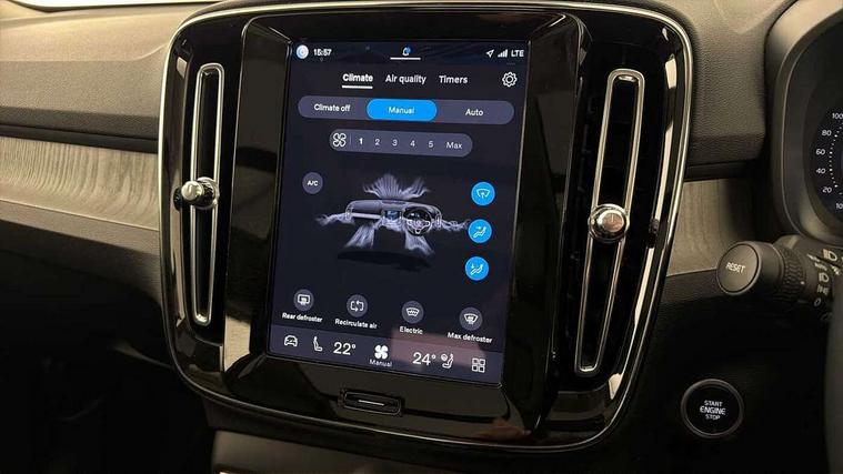 12.3" Progressive Driver Display, 360 degree surround view parking camera with side proximity sensors, 9" centre console portrait touch screen, Adjustable steering wheel force, Android auto (Wired), Apple carplay (wired), Bluetooth handsfree system, Driver alert control, Driver assistance (pilot assist and adaptive cruise control), Driver awareness - Blind spot information system with steer assist, cross traffic alert with autobrake and rear collision warning and mitigation, E-call, Front park assist, Google automotive services - Enabled entertainment apps, navigation with google maps, voice recognition with google assistant, Hands free power tailgate, Intelligent speed assistance, Lane keeping aid, Oncoming Lane Mitigation, Rear park assist, Speed sensitive steering, Volvo cars services with app - Driving journal, emergency and breakdown call, engine remote start, remote door locking/unlocking and vehicle dashboard, Wireless/Inductive Mobile Phone Charging, Automatic transmission with start/stop and manual change functions, Dynamic chassis, DAB Digital radio, Premium Sound by Harman Kardon, Dolby Pro Logic II Surround Sound, Dirac Unison, 12 speakers/600W and subwoofer, Steering wheel mounted remote controls, Active bending pixel LED headlights with adaptive shadow technology, Active high beam incorporating daytime running lights, Adaptive brake lights with high level LED brake lights, Auto dimming feature for exterior door mirrors, Auto dimming interior mirror, Automatic headlamp levelling, Dark tinted windows - rear side windows and rear screen, Front aluminium tread plates, Front and rear electric windows, Headlight cleaning system, High gloss black front and rear skid plate, High gloss black front bumper deco, High gloss black mesh front grille with high gloss black surround, High gloss black window trim, Home safe and approach lighting, Integrated roof rails in high gloss black, LED front fog lights with cornering function, Power glass tilt and slide panoramic sunroof with sun curtain, Puddle lights, Rain sensor with automatic windscreen wiper activation, Rear side wing doors, Rear wiper, Roof antenna, Roof spoiler, Visible VIN plate, 12V socket in front tunnel console and luggage compartment, 2-Zone electronic climate control with CleanZone air quality system and pollen filter, 3 seat bench in 2nd row, 3 Spoke tailored steering wheel with chrome trim, 60/40 versatile split folding rear seat, Centre console cupholders and storage, Flexible load floor and grocery bag holder, Floor mats, Front cabin courtesy lights, Front door pocket, front cupholder, ambient front door, rear reading, rear courtesy, instrument panel and tailgate lighting, Front footwell illumination, Front headrests, Front reading lights, Front seat cushion extensions, Front side step illumination (under door), Glovebox bag hook, Heated front seats, Height/reach adjustable steering column, High gloss centre tunnel deco, Illuminated glovebox, Illuminated luggage compartment, Illuminated vanity mirrors + ticket holder, Integrated waste bin, Isofix attachments on outer rear seats, Load cover, Load protection net, Multi directional lumbar support for driver and passenger seat, Power driver seat with memory + exterior mirrors memory, Power folding rear headrests, Power passenger seat, Rear armrest with cupholders, Single front passenger seat, Underfloor cargo storage, Climate pack without heated front seats - XC40, 3x3 point rear seatbelts, City safety with steering support with Pedestrian + cyclist + front collision warning with full auto brake and rear auto brake, Driver and passenger airbags, Drivers knee airbag, Electronic parking brake with auto hold, First aid kit, Front and outer rear seatbelt reminder and pretensioners, Front seats SIPS airbags, Hill descent control, Hill start assist, Inflatable curtain, Passenger airbag cut-off device, Power child locks on rear doors, Road sign information display, Run off Road Protection, SIPS (Side Impact Protection System), Slippery road and hazard light alert, Stability and Traction Control with Spin control, Engine Drag Control and Corner Traction Control, Tyre pressure monitoring system, Vehicle deceleration control with Anti-lock Brake System, Electronic Brake Distribution and Emergency Brake Assist, Warning triangle, WHIPS whiplash protection system - front, 2 x Key integrated remote control central locking including with deadlocking system and auto open/close windows and sunroof, Anti-theft alarm including immobiliser/volume sensor + level sensor, Keyless drive includes keyless entry and keyless start, Locking wheel nuts,