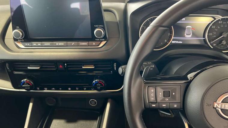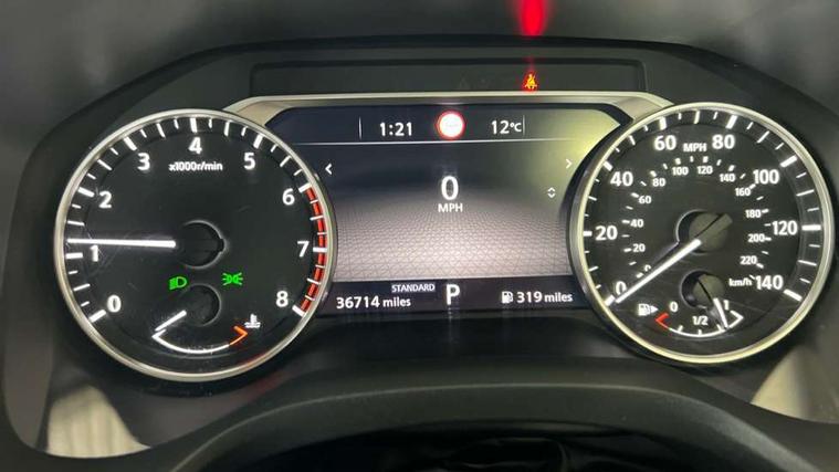 7" High definition full colour TFT screen combimeter, Android auto/Apple CarPlay (Wired), Blind spot warning, Drive modes (sport, normal, eco), Electric speed sensitive power steering, Emergency and breakdown call, Idle stop/start system, Intelligent Cruise control (ICC), Intelligent driver alert system, Intelligent forward collision warning, Intelligent lane intervention, Lane departure prevention, Lane departure warning system, Maximum speed limiter, Nissan connect 8" touchscreen infotainment system, Push button starter, Rear cross traffic alert, Rear parking sensors, Rear view camera, Traffic sign recognition with legal speed adjustment, Trip computer, 6 speakers, AM/FM audio system with DAB, Bluetooth audio streaming, Front USB connections (Type-A and Type-C), Auto dimming rear view mirror, Auto rear wiper when reversing, Automatic hazard signal with emergency stop signal, Body colour mirror caps, Body coloured door handles, Bodyside mouldings, Chrome side window finisher, Door handle with button, Electric auto folding door mirrors, Electrically adjustable and heated door mirrors with LED turn indicator, Follow me home headlights, High beam assist, Intelligent auto headlights, LED 3rd brake light, LED daytime running lights, LED Headlights, LED rear lights, One touch front and rear electric windows with remote opening and closing, Partially body coloured bumpers, Rear reversing light (bulb lighting), Rear roof spoiler, Rear side wing doors, Shark fin antenna, Splash free rain sensing wipers, Three blink turn signal, 12v power socket in dashboard and luggage, 2x Rear coat hooks, 3 bench rear seats in 2nd row, 3 rear headrests, 4 folding assist grip, 6-way manually adjustable driver's seat, 60/40 split folding rear seat bench, Centre console storage tray, Chrome interior door handles, Cloth monoform upholstery, Driver and front passenger sunvisors with illuminated vanity mirrors, Dual zone automatic climate control with pollen filter, Electrically adjustable lumbar support for driver, Front and rear door storage, Front centre console and armrest, Front cupholders x 2, Front door with bottle holders, Glovebox with light, Hard trunk cover, Height adjustable driver's seat, Height adjustable front headrests, Height adjustable passenger seat, Luggage space lighting, Manually adjustable passenger (slide recline + lifter), Multifunction steering wheel, Passenger seat back pocket, Rear armrest with 2 cupholders, Rear door bottle holders, Single front passenger seat, Steering wheel gearshift paddles, Steering wheel switches, Sunglasses holder, Tilt/telescopic adjustable steering wheel, Two rear isofix child seat anchorage points with top tether, 3x3 point rear seatbelt pretensioners + load limiters, ABS with EBD and brake assist, Active brake limited slip, Auto hold function, Child locks on rear doors, Curtain and front side, far side airbags, Driver and passenger airbags, Driver, passenger and 2nd row rear seat belt reminder, Electronic parking brake, Front seatbelt pretensioners + load limiters, Height adjustable front seatbelts, Hill start assist, Intelligent blind spot intervention, Intelligent front emergency braking with pedestrian, cyclist recognition and junction assist, Intelligent rear automatic braking, Tyre pressure monitoring system, Vehicle dynamic control, Capless fuel filler, Engine immobiliser, Intelligent Key, Remote central door locking with deadlocking, Thatcham Cat.1 alarm, Interior instrumental panel A finisher, 17" Alloy wheels, Tyre puncture repair kit,