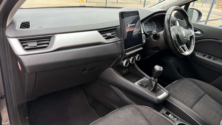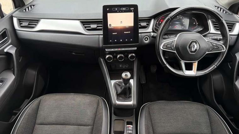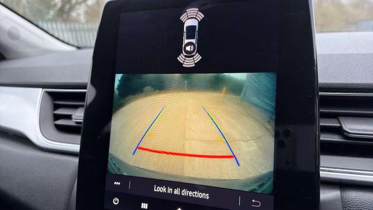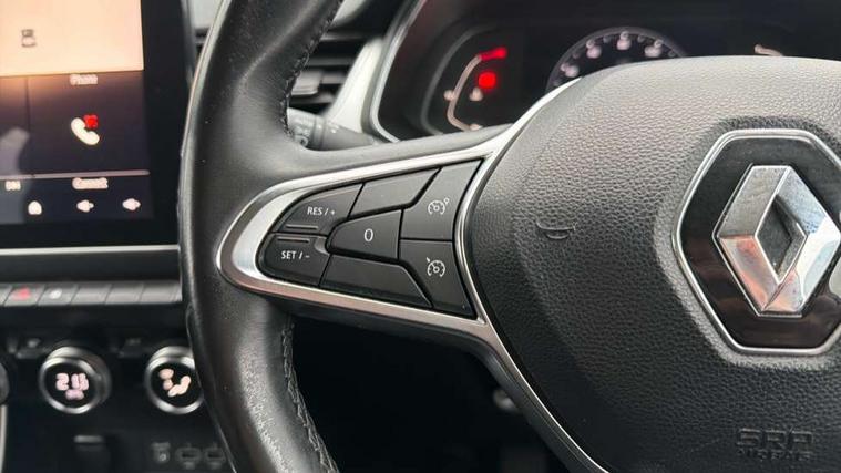 Blind spot warning, Cruise control + speed limiter, eCall emergency call system, Eco mode, Front and rear parking sensors with rear view camera, Gear change indicator, Lane departure warning system, Lane keep assist, Multisense system - Ambient lighting and Driving mode selector, Renault automatic emergency assist, Traffic sign recognition, Trip computer, Variable assistance power steering, Wireless Mobile Phone Charger, EasyLink Nav 9.3" touchscreen, 4x20W amp, FM DAB, sound auditorium, 2xUSB, 1xJack, Bluetooth, smartphone integration plus, Apple carplay/Android auto, Auto dimming rear view mirror, Automatic front wipers with rain sensors, Automatic headlights, Automatic high beam - AHB, Body colour door handles, Body coloured bumpers, Body coloured door mirrors, Electric adjustable/heated/folding door mirrors, Electric front windows + one touch + anti-pinch, Electric rear windows, Extra tinted glass in rear windows and tailgate, Full C-shape LED front and rear signature lighting with daytime running lights at the front and at the rear, Gloss black side door protection with chrome effect, LED front fog lights, Rear fog lights, Rear wiper, Roof bars, Shark fin antenna, Variable speed on front windscreen wipers, 12V Accessory socket, 3 rear headrests, 5.2L front glovebox, 60/40 split folding rear seat bench, Automatic climate control with one touch demist function, Centre console storage tray, Front head restraints, Heating system with pollen filter, Height adjustable driver's seat, Height/reach adjust steering wheel, ISOFIX child seat fixing points on rear outermost seats, Leather steering wheel, Middle console with armrest and storage, Rear air vents, 3 rear seatbelts, ABS+EBA, AEBS, Distance warning alert, Driver and front passenger, side, head and curtain airbags, Driver height adjustable seat belt, Electric parking brake with auto hold function, Electronic stability control, Front and rear no seatbelt warning sound, Front dash warning indicator in case of heavy braking, Front driver and passenger side airbag deactivation, Hill start assist, Rear door and window child locking function for rear door, Tyre pressure warning light, Anti drill door locks and locking fuel cap, Deadlocking system, Hands free keycard with push button and start/stop function, RAID (Renault Anti-Intruder Device) automatic door locking, Remote central locking with thatcham approved immobiliser, Black soft touch dashboard with black gloss air vent surrounds,