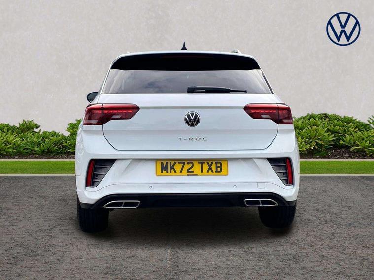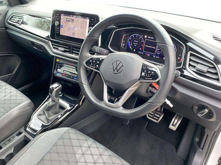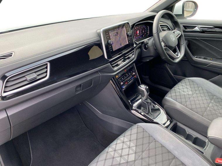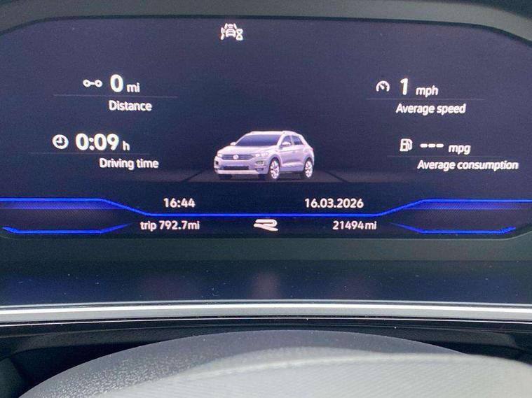 10.25" Digital cockpit pro, Bluetooth mobile phone interface, Driver alert system with fatigue detection, Driver tips and journey analysis, Emergency call service, Lane keeping system Lane Assist, Modified key software - reduce switch off time for key status change to Long no motion, Online services, Park assist including front and rear parking sensors, Service interval indicator, Tailgate/trunk lid release from outside, Think blue trainer driver tips and journey analysis, Warning sound and light for front seatbelts unfastened, Wireless app connect, Battery regeneration during braking, Start/stop function with battery regeneration, Diversity antenna for FM reception, Front and rear 6 speakers, Music playback - MP3, WMA and AAC files, Premium USB cable in choice of either Apple or Android smartphone compatibility, SD card slot, Simultaneous pairing of 2 compatible mobile devices, Title and cover art display, We Connect and We Connect Plus functionality, 3rd brake light, Auto dimming interior rear view mirror, Automatic hazard lights activation under emergency braking, Automatic headlight control with LED separate daytime running lights with coming/leaving home function, Extended roof spoiler, Exterior mirrors aspherical on driver side, convex on front passenger side, External USB type C socket and charging sockets, Front windscreen wiper with intermittent wipe and 4 position delay, Heated rear window, LED Plus headlamps, LED rear combination lamps, LED rear number plate lights, LED tail lamp rear comination lamps, Power windows with comfort operation and circuit breaker, R-Line design body coloured bumpers, Rain sensor, Rear exhaust tailpipe, Rear fog light on one side and reversing lights on both sides, Rear side wing doors, Rear wash/wipe with intermittent wipe setting, Remote electrically foldable door mirrors, puddle lights and reverse activated passenger's door mirror, 12V power socket in centre console, 3 rear head restraints, 3 seat bench in 2nd row, 4 load lashing points in luggage compartment, Air care climatronic air conditoning system with active combination filter and 2-zone temperature control, Black roof lining, Chrome plated radiator grille inserts, air vent surrounds and light switch surrounds, Door and side trim panel with leatherette insert, Drawer under drivers seat, Front + rear carpet mats, Front centre armrest, Front cupholders x 2, Front footwell illumination, Front reading light, Front scuff plates with R logo, Instrument lighting, white adjustable panel illumination, Interior ambient lighting and surround lighting, Interior light delay, Isofix child seat preparation, Leather gearshift handle, Load-through provision with cup holder when folded down ('Unsplit rear seat bench, split folding backrest, with centre armrest), Luggage compartment lighting, Single front passenger seat, Stainless steel pedals, Storage compartment in left and right luggage area, Storage compartment in rear doors, Storage compartments in driver and front passenger doors, Sunvisors with illuminated vanity mirrors, Variable boot floor, height adjustable and removable, Driver assistance pack without proactive passenger protection - T-Roc, 3 point height adj front seatbelts + pretensioners, 3 point seatbelts in outer rear with ECE label, ABS, Child locks on rear doors, Driver and front passenger airbag with front passenger airbag deactivation, Driver and front passenger safety-optimised head restraints, Drivers seatbelt reminder, Electronic parking brake, Electronic Stability Control (ESC) inc EDL (Electronic Differential Lock) and ASR (Traction Control), Front and rear passengers curtain airbag system including front side airbags, Front assist with city emergency braking and pedestrian monitoring, Front seat side impact airbags, Hill start assist, Predictive pedestrian protection, Rear disc brakes, Single tone horn, Tyre pressure loss indicator, Volkswagen roadside assistance, Alarm with interior protection, Anti-theft alarm system with interior monitoring, backup horn, and towing protection, Remote central locking with SAFELOCK, radio remote control with 2 remote control folding keys, Trims for alloy wheels,