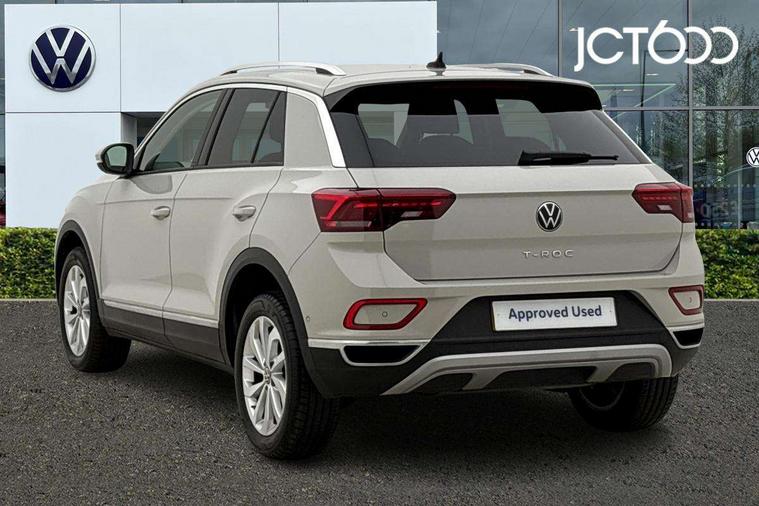 10.25" Digital cockpit pro, Bluetooth mobile phone interface, Driver alert system with fatigue detection, Driver tips and journey analysis, Emergency call service, Lane keeping system Lane Assist, Modified key software - reduce switch off time for key status change to Long no motion, Online services, Park assist including front and rear parking sensors, Service interval indicator, Tailgate/trunk lid release from outside, Think blue trainer driver tips and journey analysis, Warning sound and light for front seatbelts unfastened, Wireless app connect, Battery regeneration during braking, Start/stop function with battery regeneration, Diversity antenna for FM reception, Music playback - MP3, WMA and AAC files, Premium USB cable in choice of either Apple or Android smartphone compatibility, SD card slot, Simultaneous pairing of 2 compatible mobile devices, Title and cover art display, We Connect and We Connect Plus functionality, 3rd brake light, Auto dimming interior rear view mirror, Automatic hazard lights activation under emergency braking, Automatic headlight control with LED separate daytime running lights with coming/leaving home function, Body colour sports bumpers with silver metallic underbody fascia, Dynamic headlight range control with self adjusting whilst driving, Extended roof spoiler, Exterior mirrors aspherical on driver side, convex on front passenger side, External USB type C socket and charging sockets, Front windscreen wiper with intermittent wipe and 4 position delay, Heated rear window, LED rear combination lamps, LED rear number plate lights, LED tail lamp rear comination lamps, Light mode for poor weather, rain, fog or snow, Power windows with comfort operation and circuit breaker, Rain sensor, Rear exhaust tailpipe, Rear fog light on one side and reversing lights on both sides, Rear side wing doors, Rear wash/wipe with intermittent wipe setting, Remote electrically foldable door mirrors, puddle lights and reverse activated passenger's door mirror, 12V power socket in centre console, 3 rear head restraints, 3 seat bench in 2nd row, 4 load lashing points in luggage compartment, Air care climatronic air conditoning system with active combination filter and 2-zone temperature control, Chrome plated radiator grille inserts, air vent surrounds and light switch surrounds, Door and side trim panel with leatherette insert, Drawer under drivers seat, Front + rear carpet mats, Front centre armrest, Front comfort sports seats, Front cupholders x 2, Front footwell illumination, Instrument lighting, white adjustable panel illumination, Interior ambient lighting and surround lighting, Interior light delay, Isofix child seat preparation, Leather gearshift handle, LED interior light with switch off delay/dimmer and 2 front/rear LED reading lights, Load-through provision with cup holder when folded down ('Unsplit rear seat bench, split folding backrest, with centre armrest), Luggage compartment lighting, Non-folding front passenger seat backrest, Single front passenger seat, Storage compartment in left and right luggage area, Storage compartment in rear doors, Storage compartments in driver and front passenger doors, Sunvisors with illuminated vanity mirrors, Variable boot floor, height adjustable and removable, Driver assistance pack without proactive passenger protection - T-Roc, 3 point height adj front seatbelts + pretensioners, 3 point seatbelts in outer rear with ECE label, ABS, Child locks on rear doors, Driver and front passenger airbag with front passenger airbag deactivation, Driver and front passenger safety-optimised head restraints, Drivers seatbelt reminder, Electronic parking brake, Electronic Stability Control (ESC) inc EDL (Electronic Differential Lock) and ASR (Traction Control), Front and rear passengers curtain airbag system including front side airbags, Front assist with city emergency braking and pedestrian monitoring, Front seat side impact airbags, Predictive pedestrian protection, Rear disc brakes, Single tone horn, Tyre pressure loss indicator, Volkswagen roadside assistance, Anti-theft alarm system with interior monitoring, backup horn, and towing protection, Remote central locking with SAFELOCK, radio remote control with 2 remote control folding keys, Trims for alloy wheels,