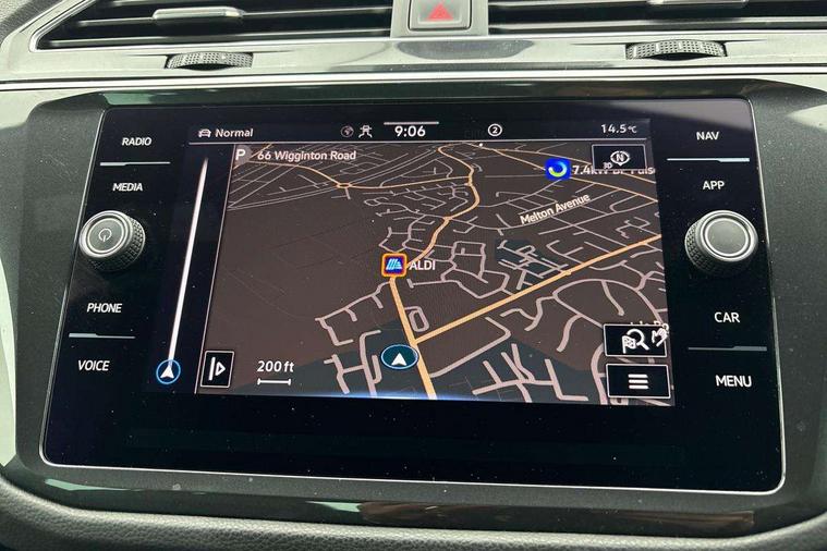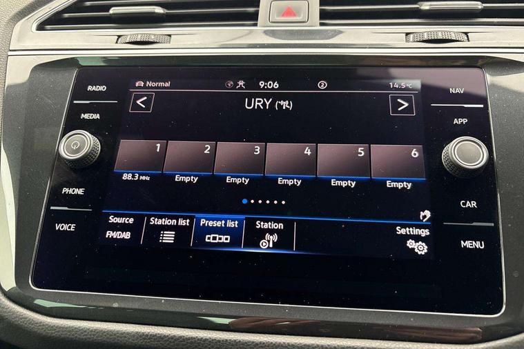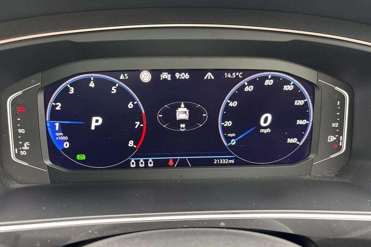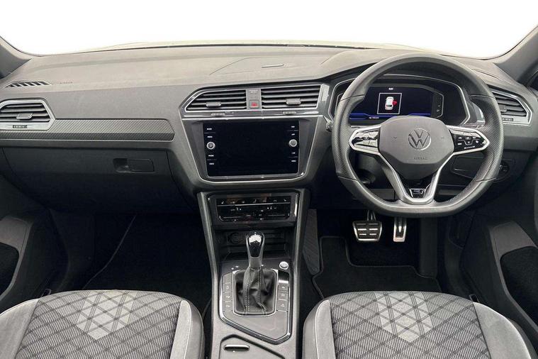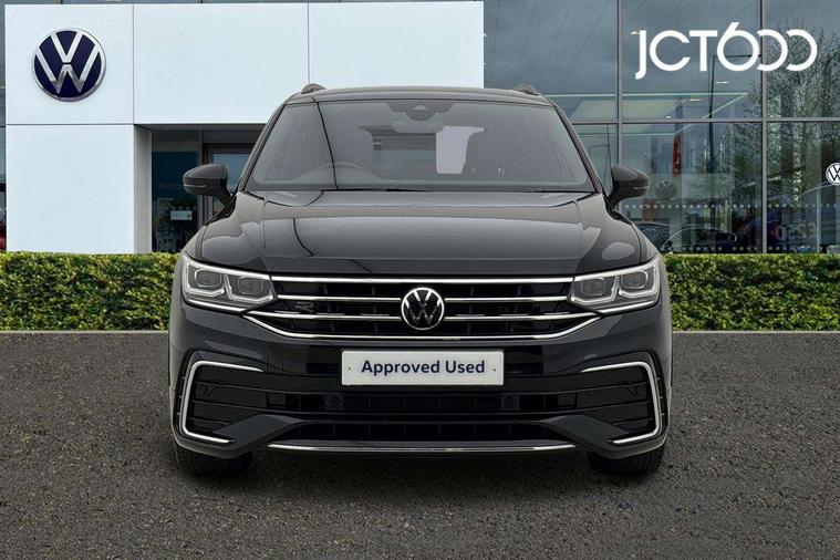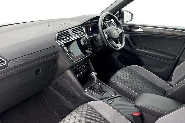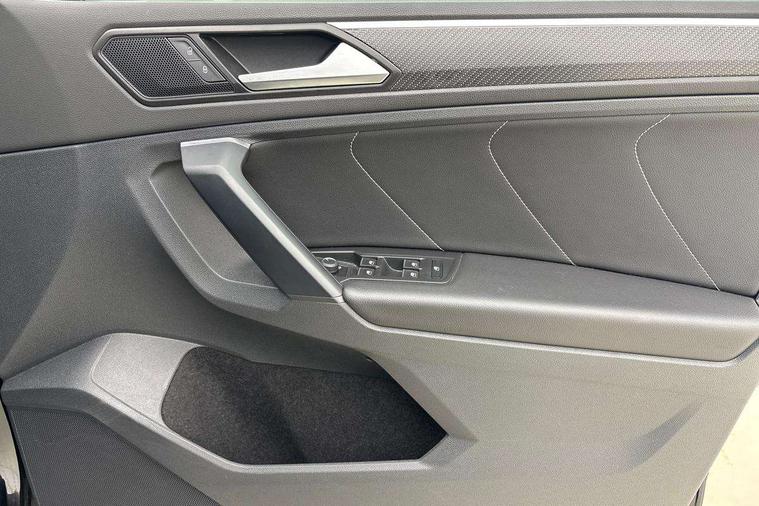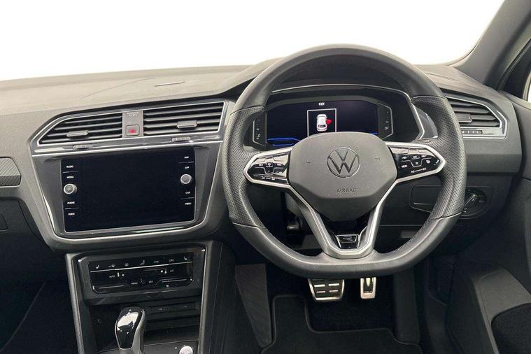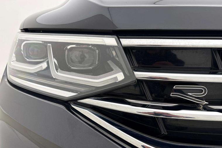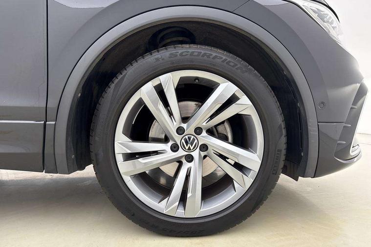 Adaptive cruise control ACC stop and go including speed limiter, App-Connect incl. App-Connect Wireless for Apple CarPlay and Android Auto, Bluetooth phone integration system, Comfort drive travel assist, Digital cockpit pro, Driver alert system, Driver profile selection, Dynamic road sign display, eCall emergency call system, Electromechanical speed sensitive power steering, Emergency assist, Front and rear parking distance sensors, Instrument cluster mph speedometer Great Britain, Lane keeping system Lane Assist, Lights on warning, Multifunction front facing camera, Outside temperature display, Premium multifunction display with multi colour display, Preparation for subsequent activation Navigation feature Discover Media includes Streaming and Internet, Remote control boot opening, Rev counter, Service interval indicator, Speed limit display, Start/stop system with regenerative braking, Tailgate/trunk lid unlocking from outside, Trip computer, Warning sound and light for doors and tailgate open, Battery regeneration during braking, Sports suspension, 8 Speakers, Digital radio reception DAB+, Diversity antenna for FM reception, Radio, Auto dimming interior rear view mirror, Automatic headlight control system, Body colored bumpers in R-Line style, Body colored exterior mirror housings, Body colour door handles, Chrome moldings on the side windows, Coming/leaving home lighting function, Dynamic headlight range control, Front and rear electric windows, Heated rear window, High level 3rd brake light, Laminated safety glass windshield, heat and sound insulating, LED headlamps with LED separate daytime running light and dynamic cornering light, LED rear combination lamps, LED rear number plate lights, License plate carrier in front and rear, Poor weather light and cornering light, Power adjustable, folding and heated door mirrors with surround lighting, front passenger exterior mirror lowering function, Privacy glass for rear side windows and rear window, R Line body kit, R Line side sills, Rain sensor, Rear exhaust tailpipe, Rear fog lamp, Rear side wing doors, Rear spoiler in R style, Rear windscreen washer and wiper with interval delay, Side and rear windows in heat insulating glass, Trailer Stability Programme, Unique R Line badging, Windscreen wipers/ intermittent wipe + 4 position delay, 12V outlet in center console rear and in luggage compartment, 12V outlet in front and tray, 2 LED front reading lights, 2 LED rear reading lights, 3 bench rear seats in 2nd row, 3 rear headrests, Air Care Climatronic 3 zone automatic climate control with enhanced air filter and controls in the rear, Art Velours greyson sports cloth upholstery, Backrest release for left front seat, Black headlining, Brushed stainless steel pedals and footrest, Carpet mats in front and rear with decorative stitching in Gray, Climate control unit rear with touch function, Door and side trim panel in foam film, insert in leatherette, Driver + front passenger lumbar support, Front footwell illumination, Front scuff plates in aluminum with R-Line logo, Front seats head restraints (x-adjustment), Height adjustable front seats, Height/reach adjust steering wheel, Isofix Preparation 2 Rear child seats, Leather gear knob, Rear bench seat asymetrically split folding, longitudinally movable and folding with load-through hatch and center armrest, Remote unlocking for rear seat backrest, Single front passenger seat, Sun visors with illuminated vanity mirrors, Top front comfort seats, Winter pack - Tiguan, 3 point seat belt for centre rear seats, 3 point seat belts with seat belt pretensioners for the outer rear seats, Curtain airbags for front and rear passengers, Driver/Front Passenger airbags, Drivers knee airbag, Electronic parking brake with auto hold, Electronic Stability Control with driver steering recommendation, ABS, ASR, EDL, EDTC and trailer stabilization, Front assist with autonomous emergency braking (for Adaptive Cruise Control ACC up to 130 mph), Front disc brakes, Front passenger airbag deactivation, Front side airbags, Height adjustable front 3 point seatbelts + pretensioners, Manual child proof rear door locks, Pedestrian monitoring system, Proactive passenger protection system in combination with front assist, Rear disc brakes, Two tone horn, Tyre pressure loss indicator, Warning sound and light for front seat belts if unfastened, Warning triangle, Anti theft alarm system with interior monitoring, backup horn and towing protection, Anti theft wheel bolts, Electronic engine immobiliser, Keyless locking and starting system keyless access with safelock, Chrome elements on the mirror switch power window switches and door pulls, Decorative inserts Carbon Gray for dashboard and front door trim panels, Interior door handle in matte chrome, 19" Valencia alloy wheels with AirStop tyres, Tool kit, Tyre mobility kit Includes 12V compressor and tyre sealant,