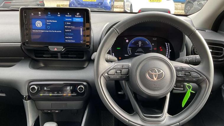 7" Digital Combimeter, Adaptive cruise control, Adjustable speed limit with speed warning, Bluetooth connectivity, Colour binocular inspired displays with digital speedometer, E-call, Electric power steering, Hybrid energy display, Lane trace assist, Multi information display switches on steering wheel, Pre-collision system (PCS), Reversing camera, Smartphone integration with Apple CarPlay and Android auto, Tailgate, Voice recognition, Vehicle Stability Control (VSC), 4 speakers, 9" Multimedia touch display, Toyota Touch 3 system with DAB radio, USB connection, Acoustic windscreen glass, Auto high beam assist, Auto windscreen wipers, Automatic headlights, Body coloured door mirrors, Electric adjustable heated door mirrors, Follow me home headlights, Front auto power windows with anti jam protection, LED daytime running lights, LED front fog lights, LED front light guide, LED Headlights, LED High mounted stop lamp, LED Indicators, LED rear light guide, Manual headlight levelling, Painted chequered front grille, Rain sensor, Rear auto power windows with anti jam protection, Rear privacy glass, Rear roof spoiler, Rear side wing doors, Rear wiper, Shark fin antenna, Turning signal integrated indicators in door mirrors, Variable front intermittent wipers, 3 adjustable rear headrests, 3 seat bench in 2nd row, 3 spoke leather steering wheel, 60/40 split folding rear seat, Active headrests, Adjustable boot height, Auto air conditioning, Coat hooks in rear grab handles, Cup holders (2 front & door), Data Communication Module (DCM) connected services, Fabric upholstery, Front armrest, Glovebox, Grey roof lining, Height adjustable driver's seat, Isofix seat fixing, Leather gearshift, Pollen filter, Shopping bag hooks, Single front passenger seat, Tilt/telescopic steering column, 3 point seatbelts on all rear seats, ABS+EBD+Brake assist, Electronic parking brake, Emergency brake light system (EBS), Front passenger airbag on/off switch, Front seatbelt reminder, Hill start assist control (HAC), Rear child proof door locks, Rear seat belt reminder, Supplemental Restraint System (SRS) 8 airbags: Driver & passenger's airbags, dual side curtain airbags, side impact airbags, front centre airbag, Toyota Safety Sense 3 with over the air updates, Tyre pressure warning system, 2x Master key, Alarm/immobiliser, Remote powered central double locking doors, Soft touch instrument panel, Space saver spare wheel,