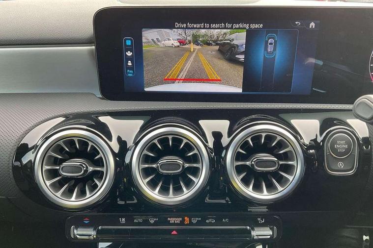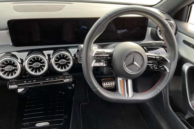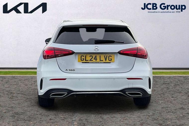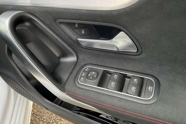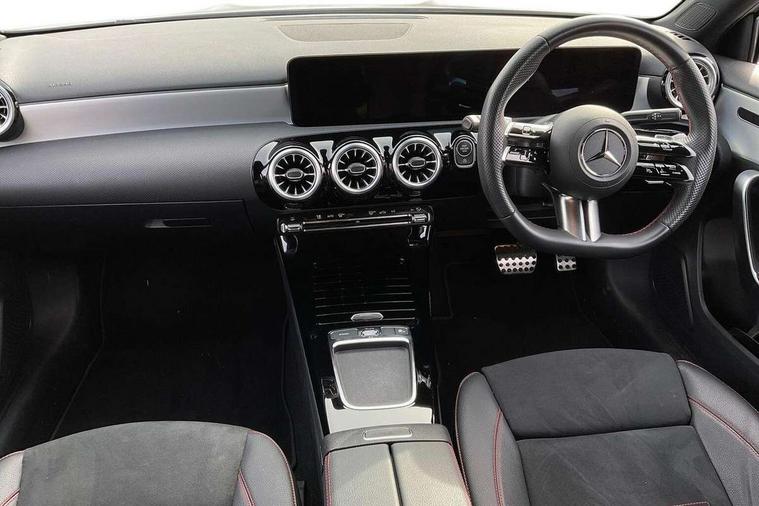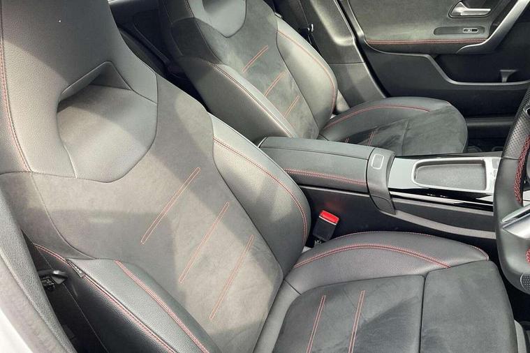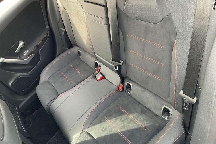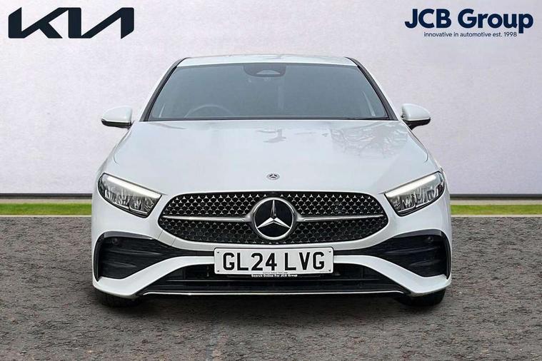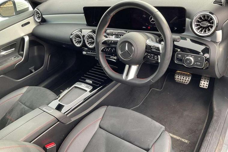 10.25 inch touchscreen central media display, 10.25" Digital instrument cluster display screen, Attention assist, Brake pad wear indicator warning light, Car wash mode, Cruise control + speed limiter, Direct steering, Direction indicators with lane change function, Dual bluetooth interfaces, DYNAMIC SELECT with a choice of driving modes (ECO, Comfort, Sport and Individual), Easy pack tailgate hands-free access, ECO start/stop function, Engine start/stop button, Fluid level warning indicator for fuel, oil, coolant and washer fluid, Fluorescent jacket for driver, Hard-disk navigation, Hey Mercedes Voice activation, Lamp failure indicator, Lane keeping system, Mercedes me connect including emergency call system, accident recovery, breakdown and maintenance management, Mercedes me remote services, Outside temperature gauge, Owners manual in English, Pre-installation of private car share, Preinstallation for Mercedes Benz link, Remote boot closing, Service indicator (ASSYST), Smartphone integration with Apple CarPlay and Android auto, Speed limit assist, Speed sensitive power steering, Tailgate, Trip computer in multifunction display with current consumption indicator, Wireless charging, Lowered comfort suspension, DAB Digital radio, MBUX multimedia system, Mercedes Benz sound system (100 W) with 6 speakers, 4 Electric Front and Rear windows, Adaptive brake lights, AMG body styling - AMG front apron with front splitter and AMG rear apron and visible exhaust tailpipe trim elements, Body colour bumpers, Body colour door handles with chrome inserts, Body colour side skirt, Body coloured door mirrors, Chrome beltline strips, Diamond radiator grille with pins in fine star pattern, Electric adjustable and heated door mirrors with integrated LED side indicators, Exhaust system with 2 visible tailpipe trim elements and rear apron, Headlamp assist automatic headlamp activation, Heat insulating dark tinted rear and rear side windows, Heated glass rear windscreen + timer control, LED High level third brake light, LED High Performance headlamps including integral LED daytime running lamps and adaptive highbeam assist, LED tail lamp, Privacy glass, Radio aerial, Rain sensing windscreen wipers with two sensitivity settings, Rear fog lights, Rear side wing doors, Rear windscreen wiper, Window line trim strip in chrome, 3 seat bench in 2nd row, 3 Spoke flat bottom leather multi function steering wheel with perforated leather in grip area, 4 way lumbar support, 40:20:40 split folding rear seats, Air conditioning - One zone THERMATIC automatic climate control with automatically controlled air distribution, AMG floor mats, Automatic child seat recognition sensor, Black air vents with surround in silver chrome, Black roof lining, Brushed stainless steel sports pedals with rubber studs, Front centre armrest with stowage, Front door sills with Mercedes Benz lettering, Front seat backs luggage nets, Galvanished gear shift paddles on steering wheel, Heated front seats, Height/reach adjustable steering column, Interior lighting - 64 colour Ambient lighting, Interior mirror with reading lamps in black and frameless, Rear armrest with 2 cupholders, Seat occupancy sensor for front passenger seat, Single front passenger seat, Sports seats with integrated headrests, Stowage compartment in centre console with retractable cover, Sunvisors with illuminated vanity mirrors, Twin front cupholders, Light and sight pack - A Class, Mirror package - A Class, Parking pack - A Class, Seat comfort pack - A Class, USB pack plus - A Class, 3 rear 3 point seatbelts, ABS with Brake Assist, Active bonnet, Active brake assist includes forward collision warning system with autonomous braking, Adaptive brake assist with hold function and hill start assist, Black seatbelts, Bonnet with power domes, Childproof locks manually operated for rear doors and electrically operated for rear power windows, Crash responsive emergency lighting, Driver and passenger head and side airbags, Drivers knee airbag, Dual stage driver/passenger airbags, Electronic parking brake, ESP curve dynamic assist, ESP with ASR, Front and rear seatbelt reminder, ISOFIX and top tether child seat fixing points in two outer rear seats, Tyre pressure monitoring system, Warning triangle and first aid kit, Window airbags, Alarm system/interior protection/immobiliser, Guard 360 degree vehicle protection, Keyless entry lock/unlock, Keyless Go, Remote central locking and crash sensor with emergency opening function, Light longitudinal grain aluminium trim, 18" AMG 5 twin spoke light alloy wheels, aerodynamically optimised, painted in termolite grey with high sheen finish, Summer tyres, Tirefit sealant kit,