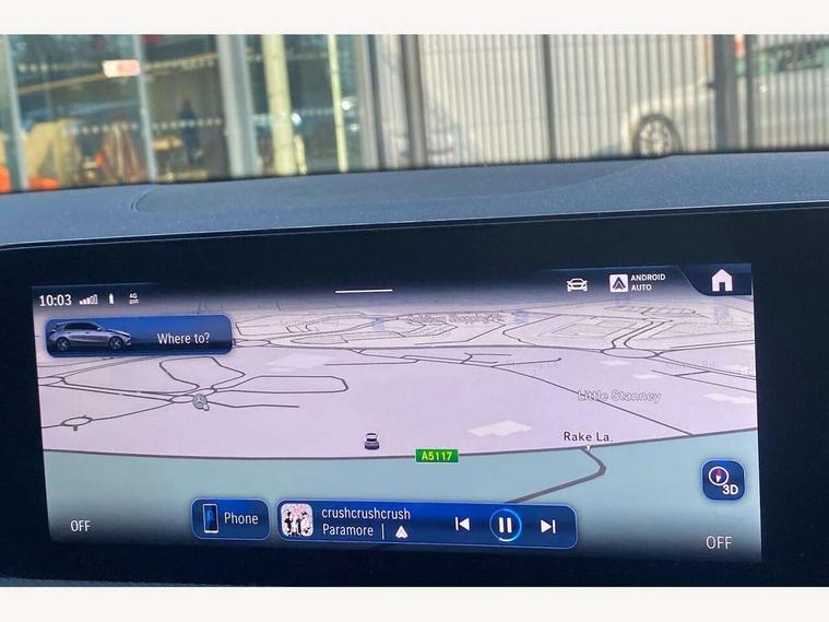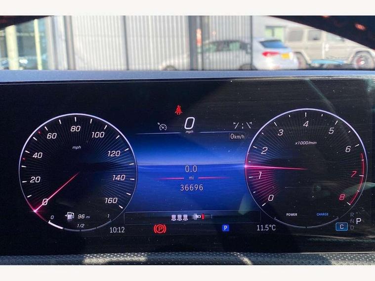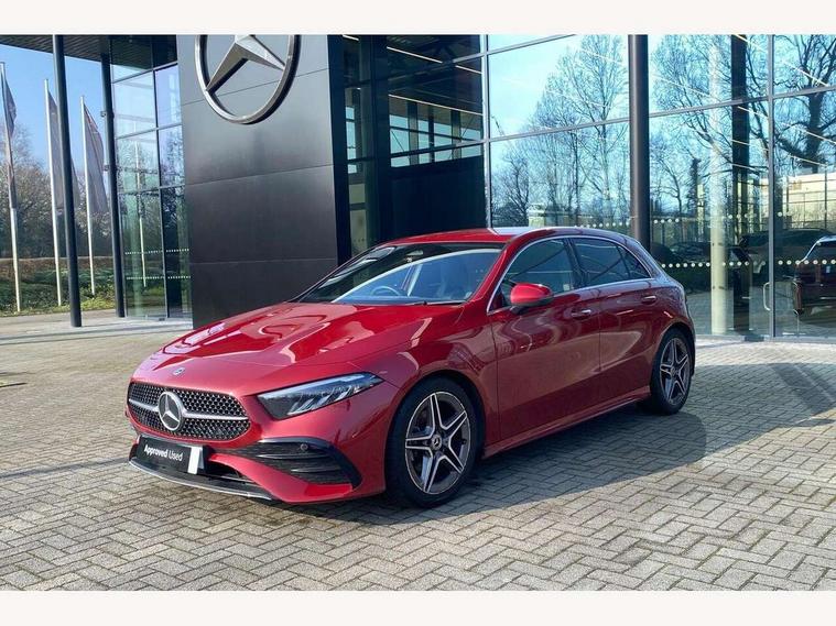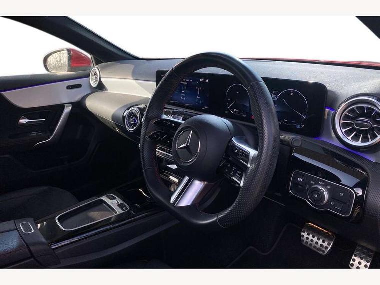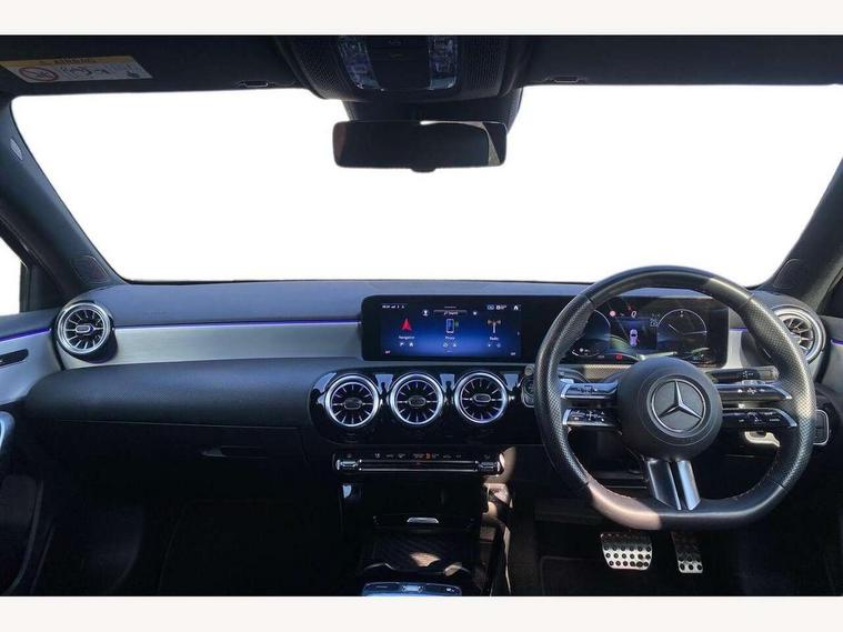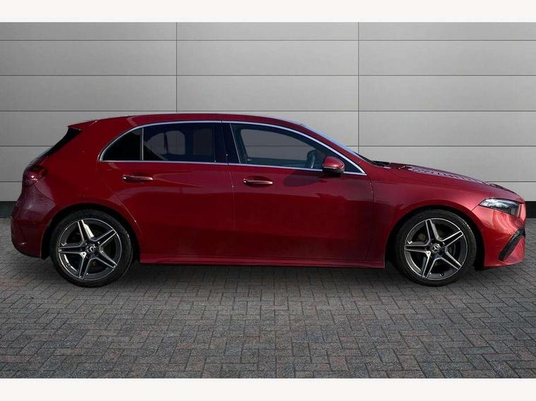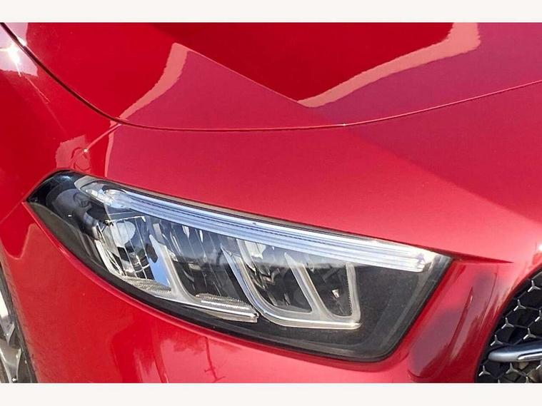 10.25 inch touchscreen central media display, 10.25" Digital instrument cluster display screen, Attention assist, Brake pad wear indicator warning light, Car wash mode, Cruise control + speed limiter, Direct steering, Direction indicators with lane change function, Dual bluetooth interfaces, DYNAMIC SELECT with a choice of driving modes (ECO, Comfort, Sport and Individual), Easy pack tailgate hands-free access, ECO start/stop function, Engine start/stop button, Fingerprint scanner, Fluid level warning indicator for fuel, oil, coolant and washer fluid, Hard-disk navigation, Hey Mercedes Voice activation, Lamp failure indicator, Lane keeping system, Mercedes me connect including emergency call system, accident recovery, breakdown and maintenance management, Mercedes me remote services, Outside temperature gauge, Owners manual in English, Pre-installation of private car share, Preinstallation for Mercedes Benz link, Remote boot closing, Service indicator (ASSYST), Smartphone integration with Apple CarPlay and Android auto, Speed limit assist, Speed sensitive power steering, Trip computer in multifunction display with current consumption indicator, Wireless charging, Lowered comfort suspension, DAB Digital radio, MBUX multimedia system, Mercedes Benz sound system (100 W) with 6 speakers, 4 Electric Front and Rear windows, Adaptive brake lights, AMG body styling - AMG front apron with front splitter and AMG rear apron and visible exhaust tailpipe trim elements, Body colour bumpers, Body colour door handles with chrome inserts, Body colour side skirt, Body coloured door mirrors, Chrome beltline strips, Diamond radiator grille with pins in fine star pattern, Electric adjustable and heated door mirrors with integrated LED side indicators, Exhaust system with 2 visible tailpipe trim elements and rear apron, Headlamp assist automatic headlamp activation, Heat insulating dark tinted rear and rear side windows, Heated glass rear windscreen + timer control, LED High level third brake light, LED High Performance headlamps including integral LED daytime running lamps and adaptive highbeam assist, LED tail lamp, Privacy glass, Radio aerial, Rain sensing windscreen wipers with two sensitivity settings, Rear fog lights, Rear side wing doors, Rear windscreen wiper, Window line trim strip in black, 3 seat bench in 2nd row, 3 Spoke flat bottom leather multi function steering wheel with perforated leather in grip area, 4 way lumbar support, 40:20:40 split folding rear seats, Air conditioning - One zone THERMATIC automatic climate control with automatically controlled air distribution, Automatic child seat recognition sensor, Black air vents with surround in silver chrome, Black roof lining, Brushed stainless steel sports pedals with rubber studs, Floor mats with AMG lettering, Front centre armrest with stowage, Front door sills with Mercedes Benz lettering, Front seat backs luggage nets, Galvanished gear shift paddles on steering wheel, Heated front seats, Height/reach adjustable steering column, Interior lighting - 64 colour Ambient lighting, Interior mirror with reading lamps in black and frameless, Rear armrest with 2 cupholders, Seat occupancy sensor for front passenger seat, Single front passenger seat, Sports seats with integrated headrests, Stowage compartment in centre console with retractable cover, Sunvisors with illuminated vanity mirrors, Twin front cupholders, Light and sight pack - A Class, Mirror package - A Class, Parking pack - A Class, Seat comfort pack - A Class, USB pack plus - A Class, 3 rear 3 point seatbelts, ABS with Brake Assist, Active bonnet, Active brake assist includes forward collision warning system with autonomous braking, Adaptive brake assist with hold function and hill start assist, Black seatbelts, Bonnet with power domes, Childproof locks manually operated for rear doors and electrically operated for rear power windows, Crash responsive emergency lighting, Driver and passenger head and side airbags, Drivers knee airbag, Dual stage driver/passenger airbags, Electronic parking brake, ESP curve dynamic assist, ESP with ASR, Front and rear seatbelt reminder, ISOFIX and top tether child seat fixing points in two outer rear seats, Tyre pressure monitoring system, Warning triangle and first aid kit, Window airbags, Alarm system/interior protection/immobiliser, Guard 360 degree vehicle protection, Keyless entry lock/unlock, Keyless Go, Remote central locking and crash sensor with emergency opening function, Light longitudinal grain aluminium trim, 18" AMG 5 twin spoke light alloy wheels, aerodynamically optimised, painted in termolite grey with high sheen finish, Summer tyres, Tirefit sealant kit,