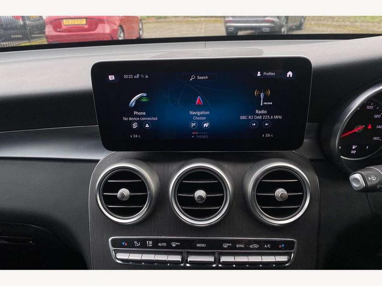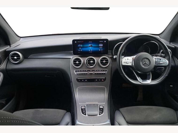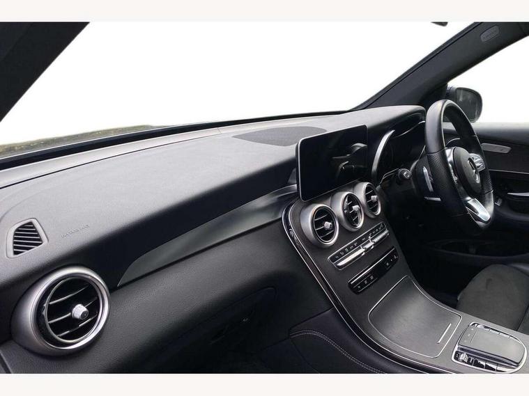 Active parking assist with parktronic system, Attention assist, Bluetooth interface for hands free telephone, Collision prevention assist plus, DYNAMIC SELECT with a choice of driving modes (ECO, Comfort, Sport, Sport+ and Individual), Easy pack automatic powered tailgate, ECO start/stop function, Hard disk navigation, Hey Mercedes Voice activation, Instrument cluster with 5.5-inch TFT multi-function display, MBUX Interior assistant, MBUX multimedia system with DAB digital radio and touchpad including satellite navigation, Mercedes connect me with remote online services, Multi function trip computer, Outside temperature display, rear seatbelt status indicator, Remote boot release, Reversing camera, Service indicator (ASSYST), 4MATIC permanent four wheel drive, 66 litre fuel tank, 9G TRONIC plus automatic transmission with steering column gear selector, DIRECT SELECT steering wheel gearshift paddles, Petrol Particulate Filter (PPF), Sports suspension tuned for improved handling and driving dynamics, 5 speakers, DAB Digital radio, Frontbass loudspeakers, Media display 10.25-inch touchscreen display, Pre installation for Mercedes Benz Link, USB ports x 2 in centre console, Adaptive brake lights, Aluminium roof rails, AMG bodystyling AMG front apron with sporty air intakes and chrome trim element, AMG diffuser-look rear apron with insert in black, Body colour door mirrors, Body coloured bumpers, Electric windows one touch open/close, Electrically adjustable and heated door mirrors, Front and rear exterior chrome trim, Headlamp assist automatic headlamp activation, LED high performance headlamps with integrated LED daytime running lights, LED tail lamp, Privacy glass with dark glass from B pillar backwards, Radiator diamond grille, Rain sensor windscreen wipers, Range adjustable headlights, Rear wiper, Tinted glass all round with single layer safety glass, Two chrome plated tailpipe trim elements, 2 way rear head restraints, 3-spoke multifunction AMG steering wheel in black nappa leather with flattened bottom section, chrome inserts and perforated leather in grip area, 40:20:40 split folding rear seats, AMG floor mats with edging and embroidered AMG lettering, AMG sports seats, Artico leather with Dinamica microfibre upholstery, Automatic child seat recognition sensor, Black roof lining, Dividing net - rear, Double cup holder in centre console, Easy-pack load compartment cover, Front armrest with storage box, Front door sills with Mercedes benz lettering, Front head restraints, Front seats with electric adjust (backrest, height and seat cushion inclination) with 4 way electric lumbar support and manual cushion depth adjust, Heated front seats, Height/reach adjustable steering column, Illuminated and lockable glove compartment, Rear top tether child seat ISOFIX attachment, Sports pedals with stainless steel surfaces and rubber studs, Steering wheel with touch control buttons, THERMATIC automatic climate control, Interior lighting pack - GLC, Mirror pack - GLC, Storage pack - GLC, 3 rear 3 point seatbelts, Active bonnet, Adaptive brake system with HOLD function and brake drying in the wet, ASR, Black seat belts, Brake calipers with Mercedes-Benz lettering + perforated brake discs, Child proof door locks, Dual-stage airbags - driver and front passenger, driver knee bag and window bags for driver, front passenger and rear passengers, Electronic parking brake, Electronic stability programme (ESP) with curve dynamic assist and cross wind assist, Front and rear seatbelt reminder, Front passenger seat occupancy sensor, Hill hold function, Tyre pressure monitoring system, Warning triangle and first aid kit, Alarm system/interior protection/immobiliser, Automatic door locking, KEYLESS-GO starting function, Remote central locking, Open pore grey oak wood trim, 19" AMG 5 twin spoke alloy wheels painted tremolite grey with high sheen finish and tirefit,