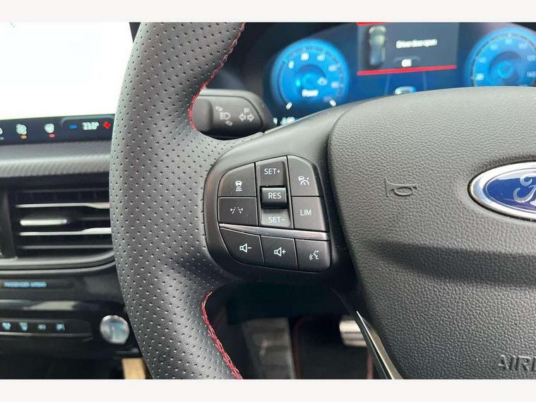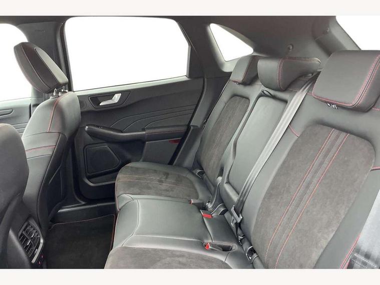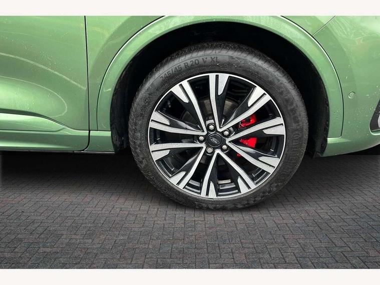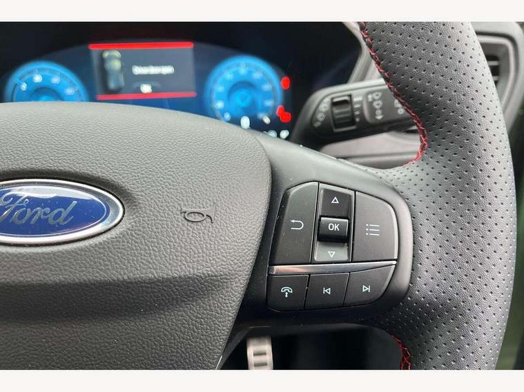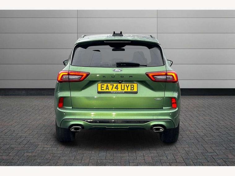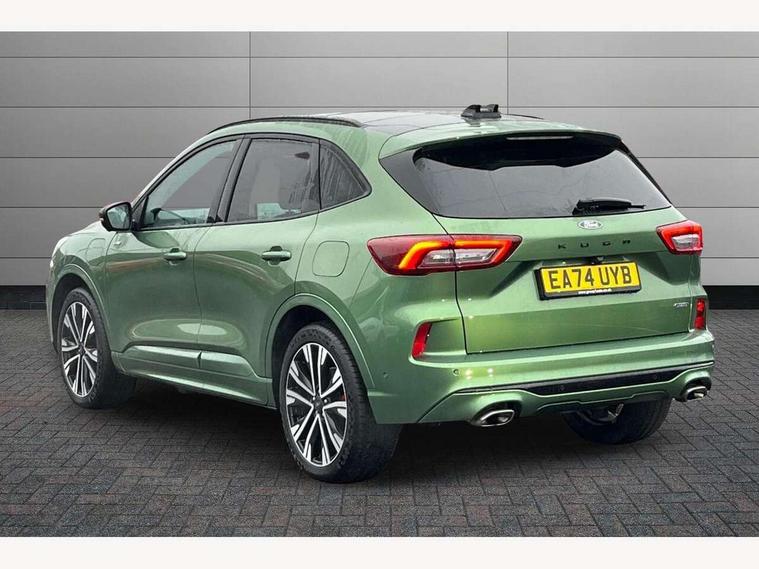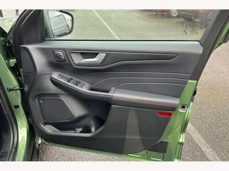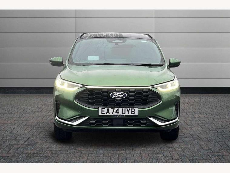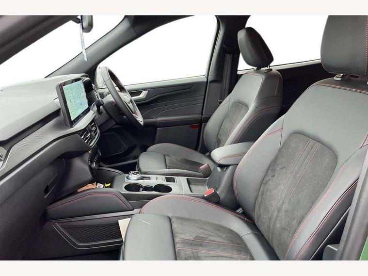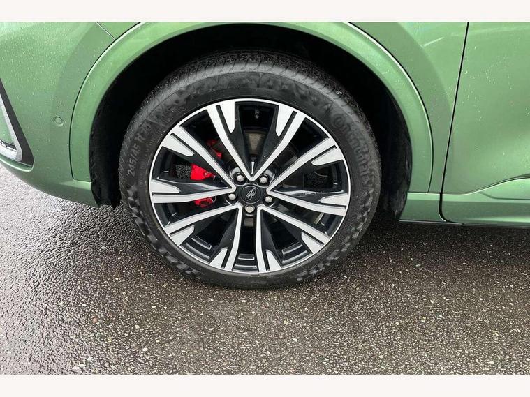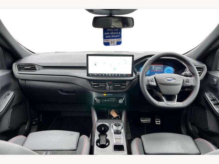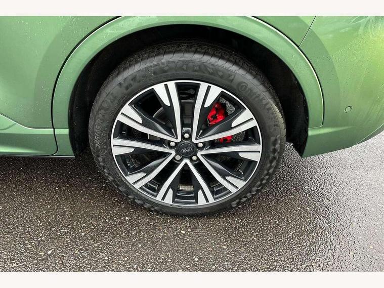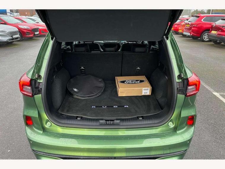 12.3" digital colour instrument cluster, 360 degree camera, e-Call (emergency call), Ford easy fuel, Ford SYNC 4 Navigation with 13" touchscreen, DAB radio, emergency assistance, Andriod Auto/Apple CarPlay, 5G modem & Ford Pass connect, Front and rear parking sensors, Hands free power tailgate, Lane centering assist, Lane keeping aid with lane departure warning, Power assist steering, Selectable drive modes, Service interval indicator, 3-Pin Home charge cable (230V/16A Domestic socket), Sports suspension, Twist beam rear suspension, B&O premium audio system with 10 speakers, subwoofer and 2 USB ports, Auto headlamps with high and low beam, Black roof rails, Body colour bumpers, Front LED fog lamps, Large rear spoiler, LED daytime running lights, LED rear lights, Pop out door edge protectors, Power front/rear windows with global close, Power heated folding door mirrors with puddle lights, memory function and camera, Power opening panoramic roof, Quickclear heated windscreen, Rain sensing wipers, Rear privacy glass, Rear side wing doors, Rear wiper, ST-Line body styling kit, Third brake light, 12 way ergonomic power adjust driver's seat with memory (AGR certified), 12 way ergonomic power adjust passenger seat (AGR certified), 2nd row sliding seats, Electronic automatic temperature control (EATC), Front and rear head restraints, Partial premium touch sensico upholstery, Rear centre head restraint, Single front passenger seat, Sports seats, Driver assistance pack with intelligent adaptive cruise control - Kuga FHEV/PHEV, Winter pack - Kuga, 3x3 point rear seatbelts, Airbags - front driver/passenger, front and rear curtain, Drivers knee airbag, Dynamic brake support, Electronic stability control (ESC) and ABS, Evasive steering assist, Ford MyKey Gen 2 safety system, Manual child proof rear door locks, Pre collision assist with autonomous emergency braking, Rear seat Occupancy alert, Red brake calipers, Tyre pressure monitoring system, Engine immobiliser, Keyless entry and Ford power start button (Keyless start), Locking wheel nuts, Remote powered central double locking doors, Thatcham category 1 alarm,